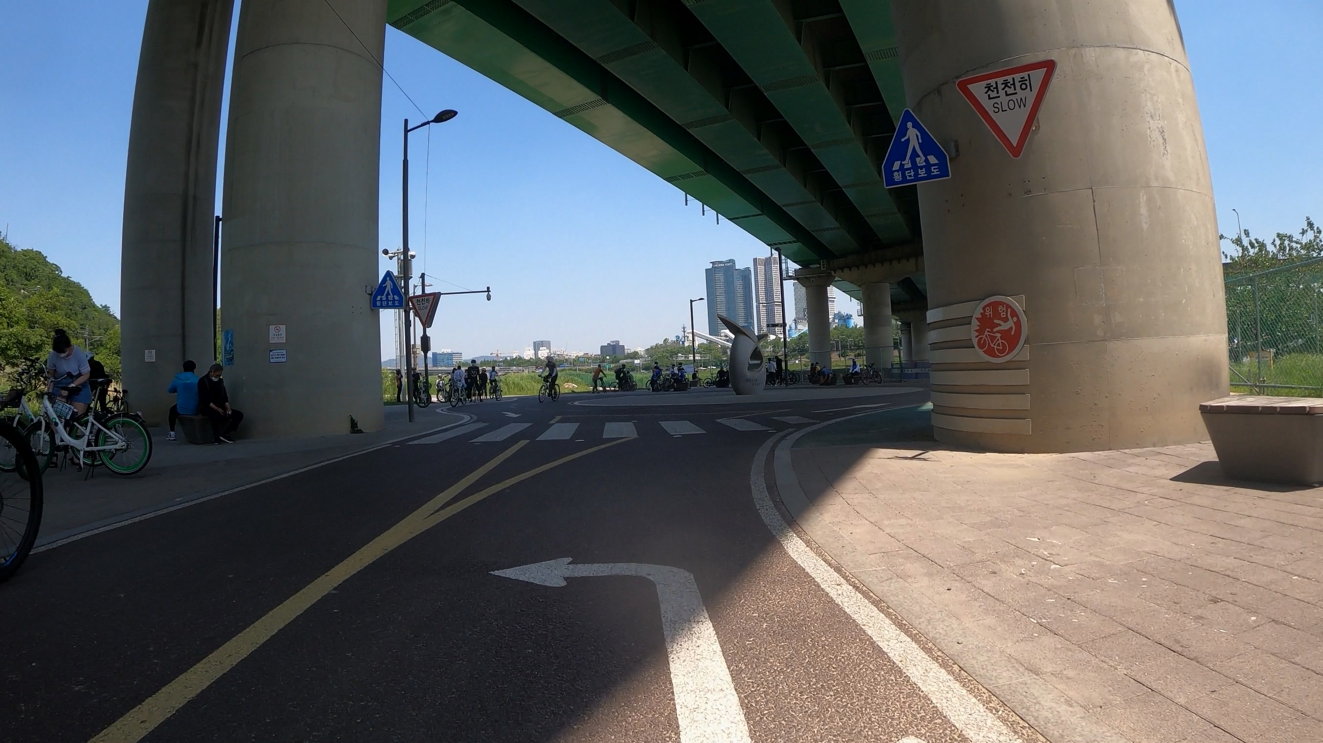 이 때부터 오늘은 날이 아니었구나. 한강에 사람이 엄청나게 많겠구나. 하는 불안이 엄습해오기 시작했다. 사실 죽어라 페달을 밟아서 달리는 편은 아니었지만 사람이 많으면 그만큼 달리기 힘들어지니 체력 관리가 중요한 국토종주 일정 상 체력을 조금 낭비하게 될 것 같은 걱정도 들었었다.