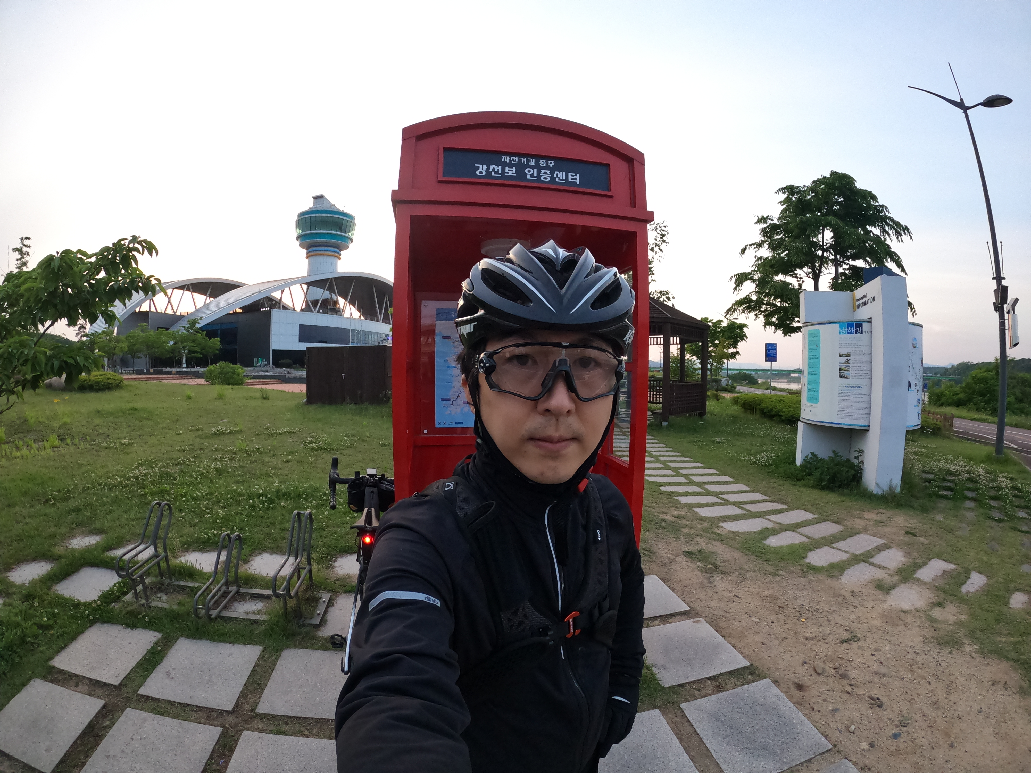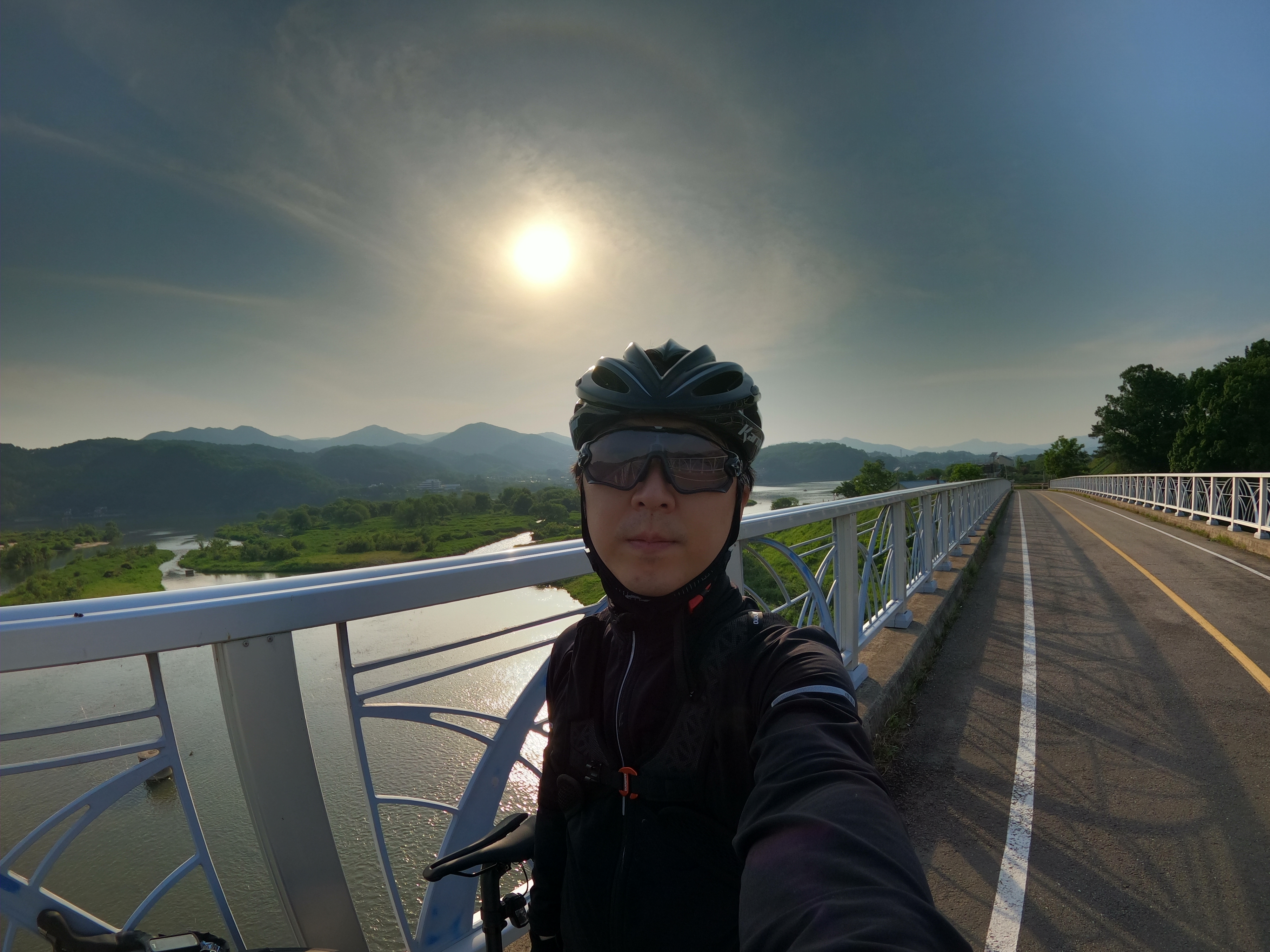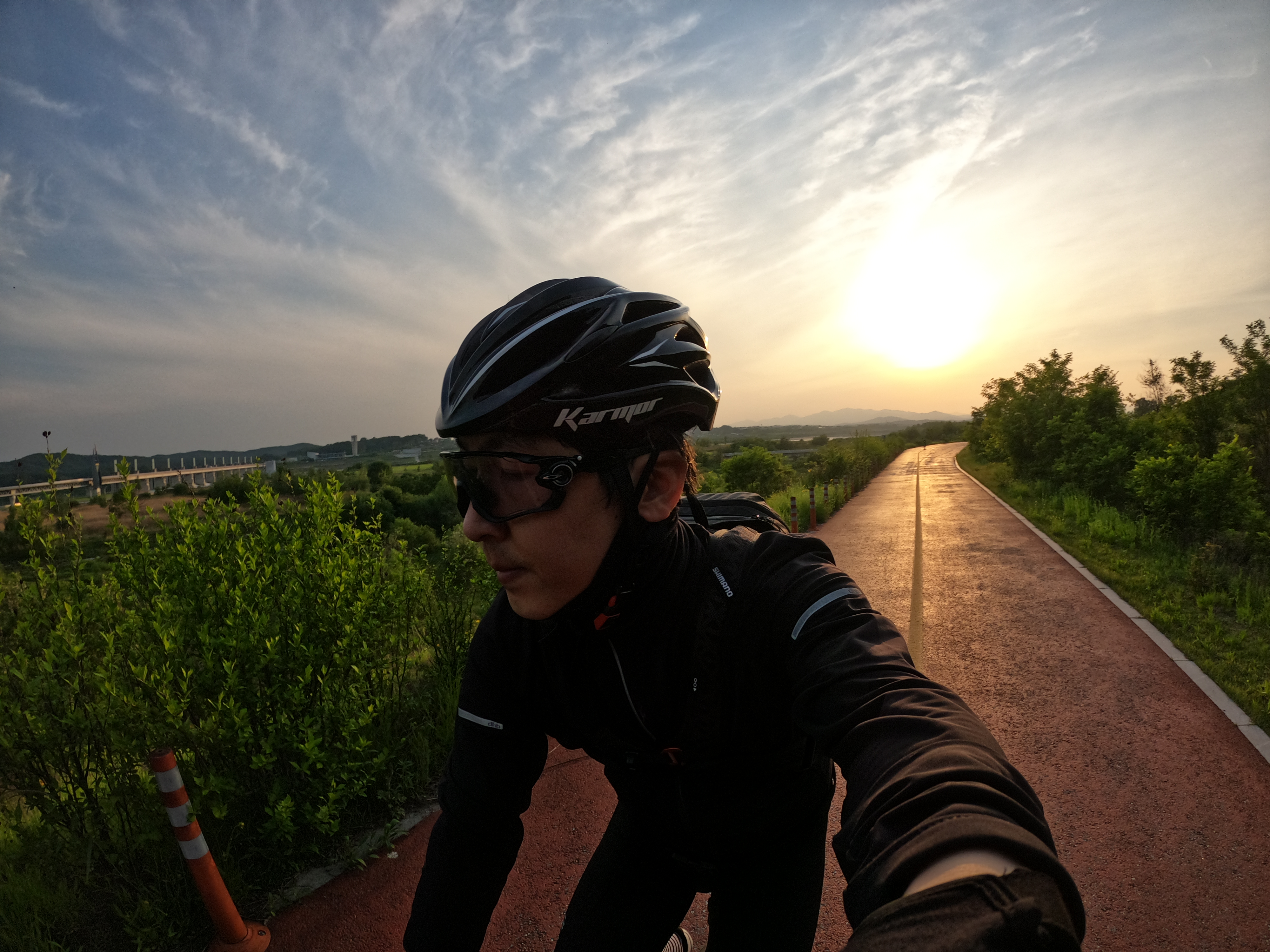 이제 금방이라도 해가 질 것 같아서 강천보에서 간단히 물만 채우고 바로 다시 출발했다. 시간이 생각보다 늦어서 그런지 사진 속 내 모습의 표정도 급하다. ㅋㅋ