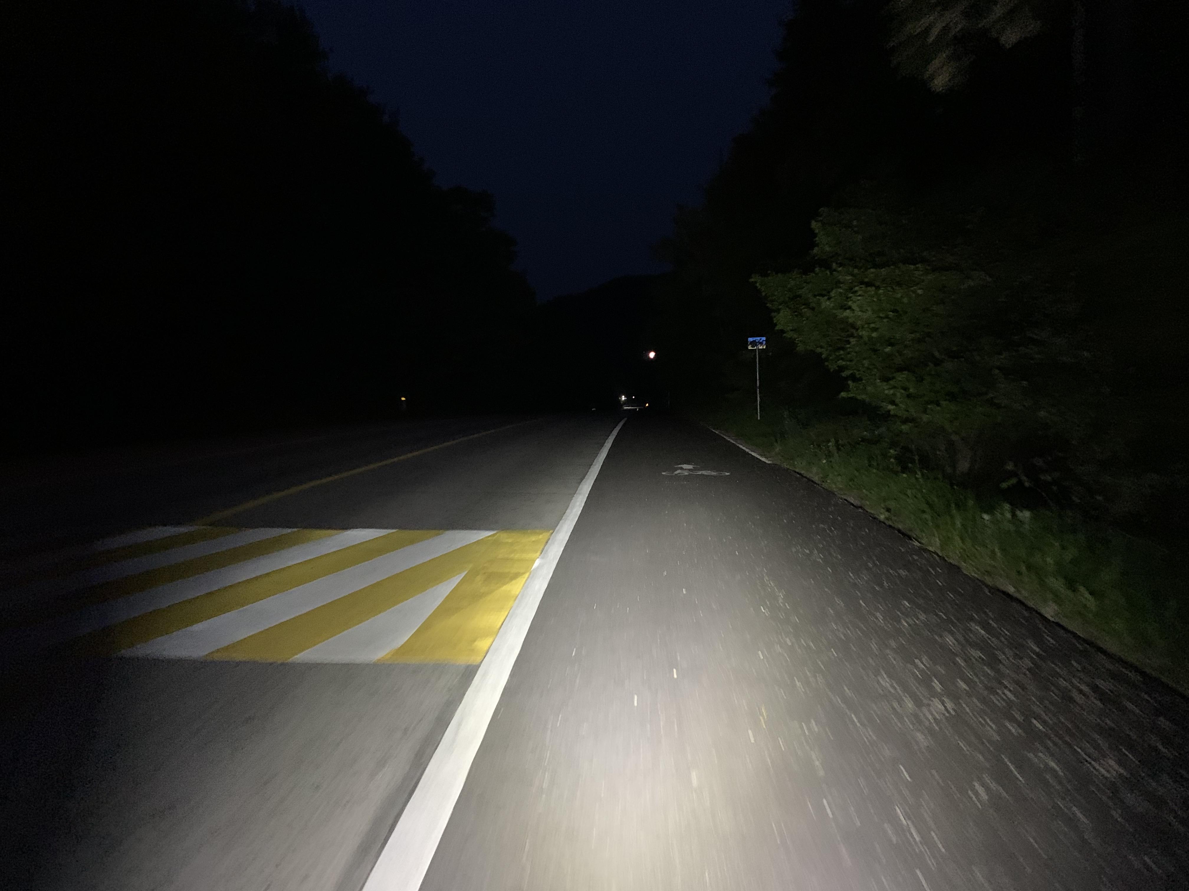 정말 저 산길을 달릴 때는 죽는 줄 알았다. 완전 시커먼데 전조등에만 의존해서 가던 그 상황... 나의 1300 루멘 전조등을 풀파워로 사용해 본 건 이번이 처음인 것 같다.