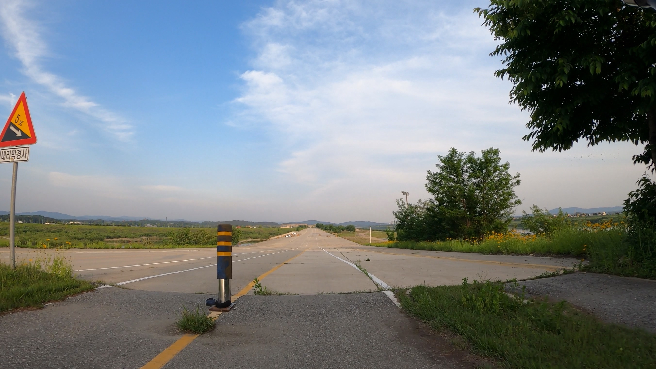 이포보에서 여주보까지는 여주보에 도착 하기 바로 직전에 낮은 오르막이 있는 것을 제외하고는 거의 99% 평지 코스에 가깝다. 달리다보면 아래와 같은 활주로도 나오는데 이 부분만 길이 살짝 안 좋은 걸 제외하면 포장도 굉장히 잘 되어 있는 아주 좋은 코스다. 중간중간 캠핑장을 지나오는데 주말의 경우 사람이 많을 수도 있으므로 조심하도록 하자.