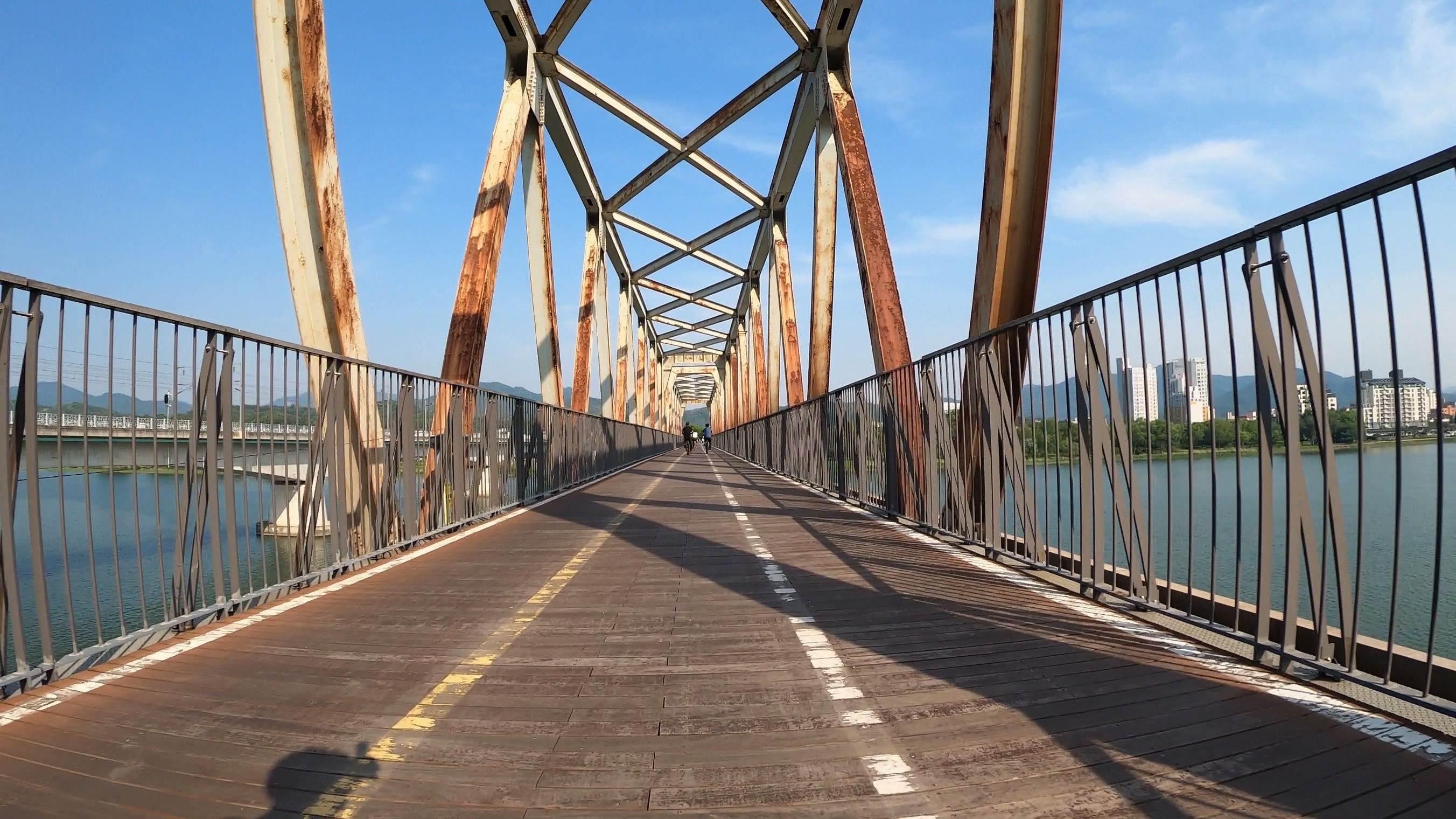 뚝섬전망문화콤플렉스 인증센터에서 광나루공원 인증센터를 가려면 잠실철교를 건너야 한다. 잠실철교도 야간 라이딩을 할 때마다 항상 거쳐가는 곳인데 이렇게 국토종주 중에 다리를 건너니 또 색다른 느낌이 들었달까?
