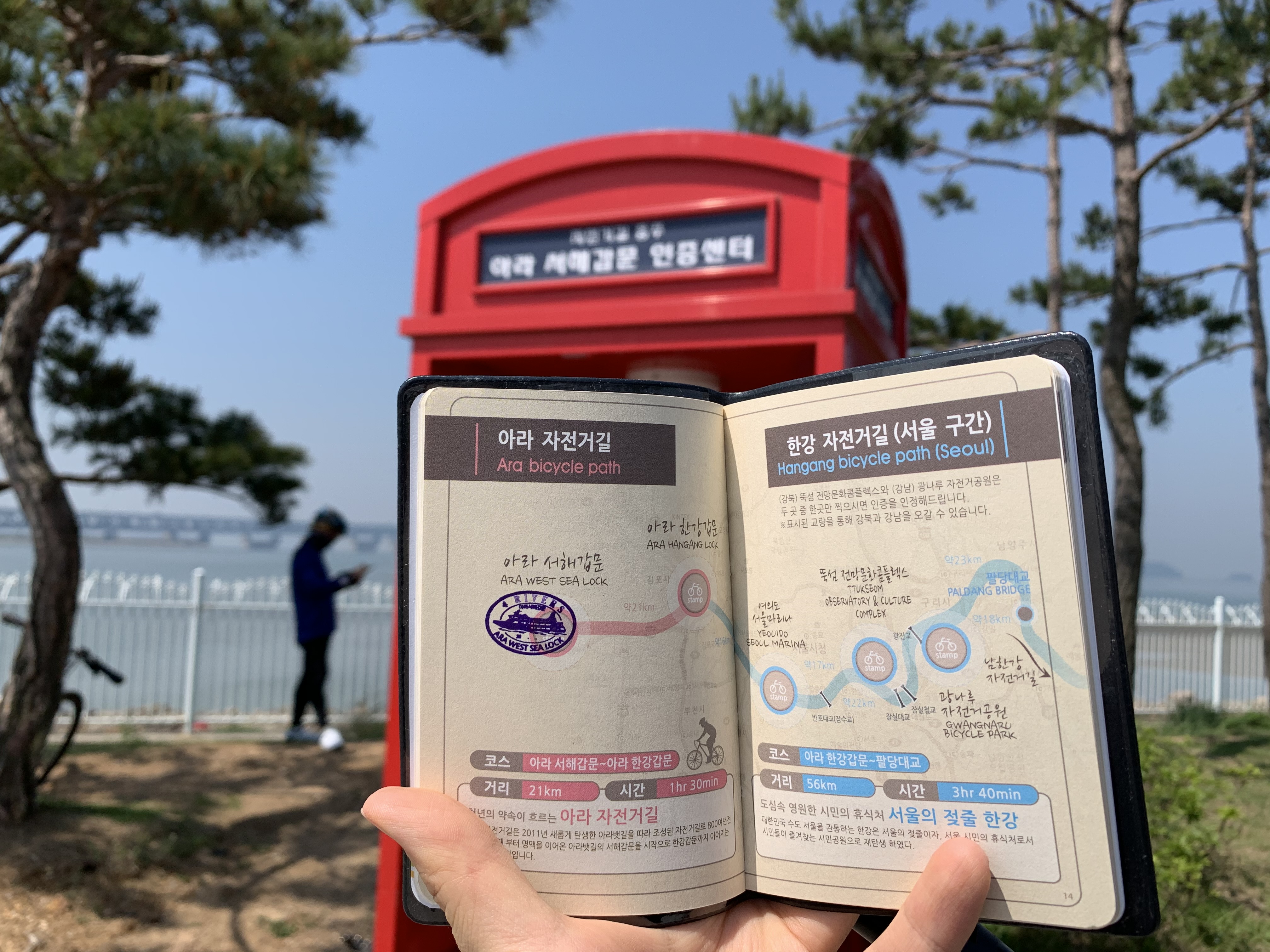 열심히 인증센터 주변에서 사진도 찍고 영상도 찍고 하다가 지나가던 분께 부탁해서 내 사진도 한 장 남겨보고 깔끔하게 인증도장도 꿍 남기고 본격적으로 출발해본다. 모든 인증센터의 도장이 여기 아라서해갑문 인증센터마냥 깔끔하게 찍히면 얼마나 좋을까?