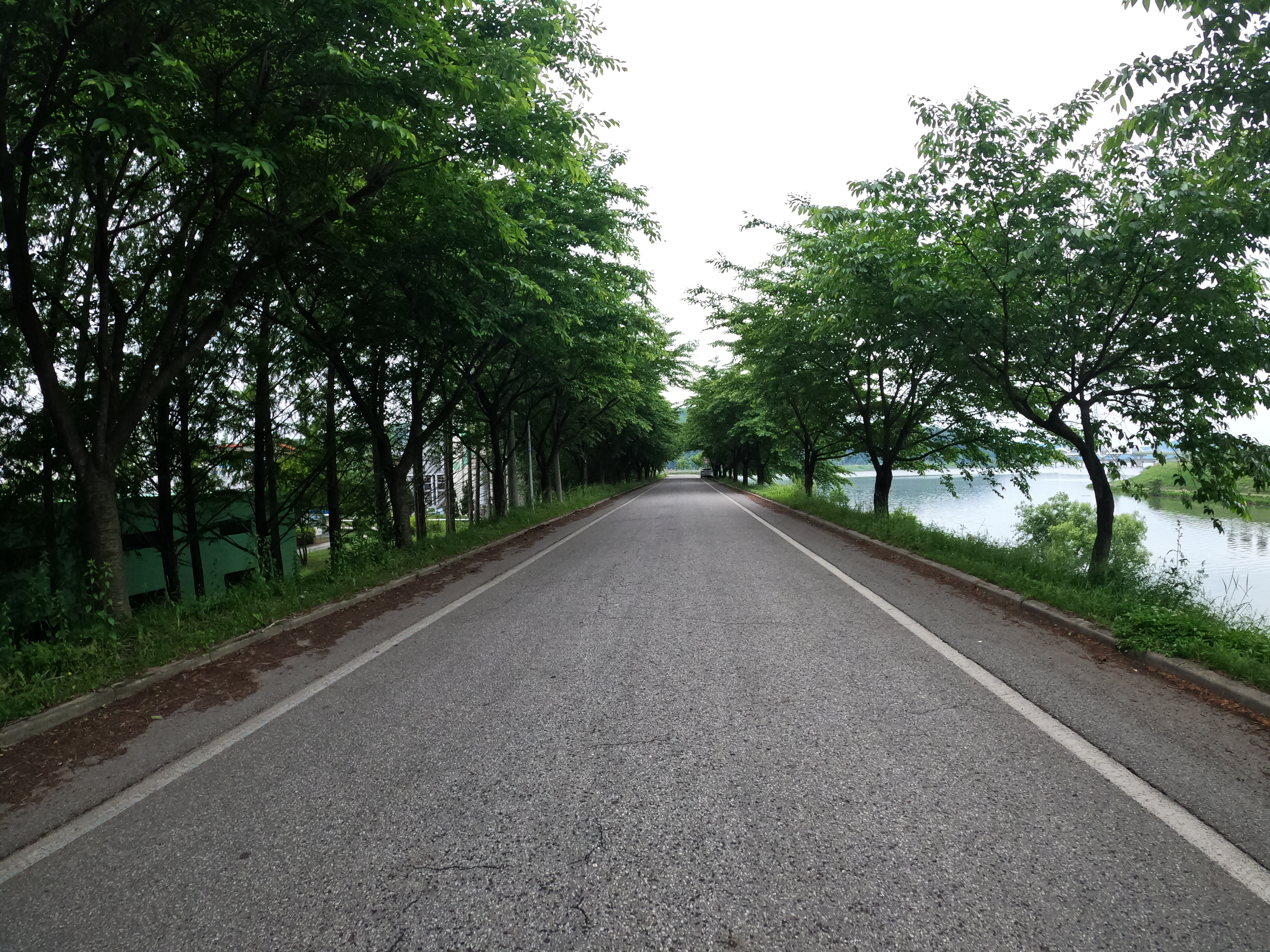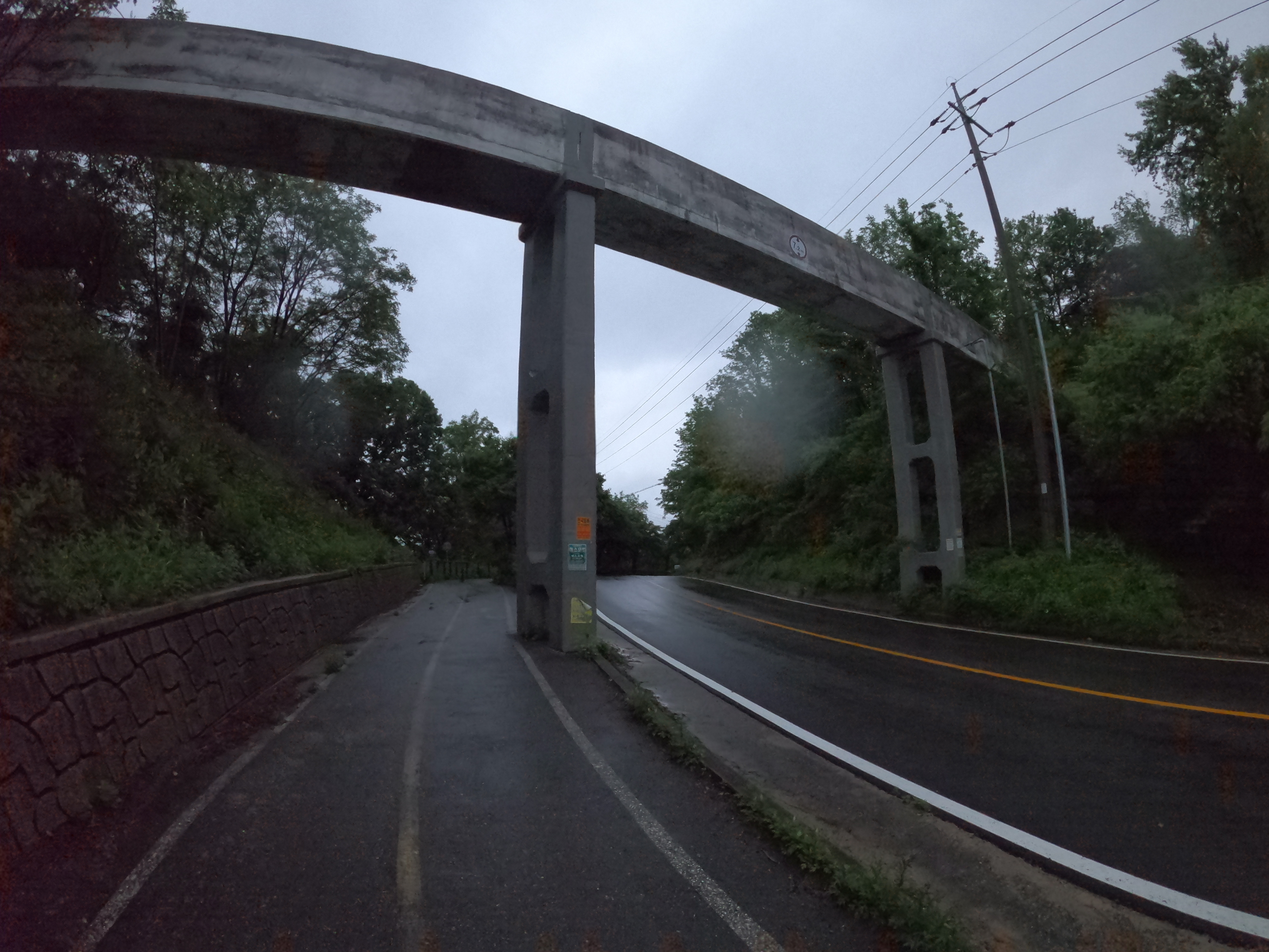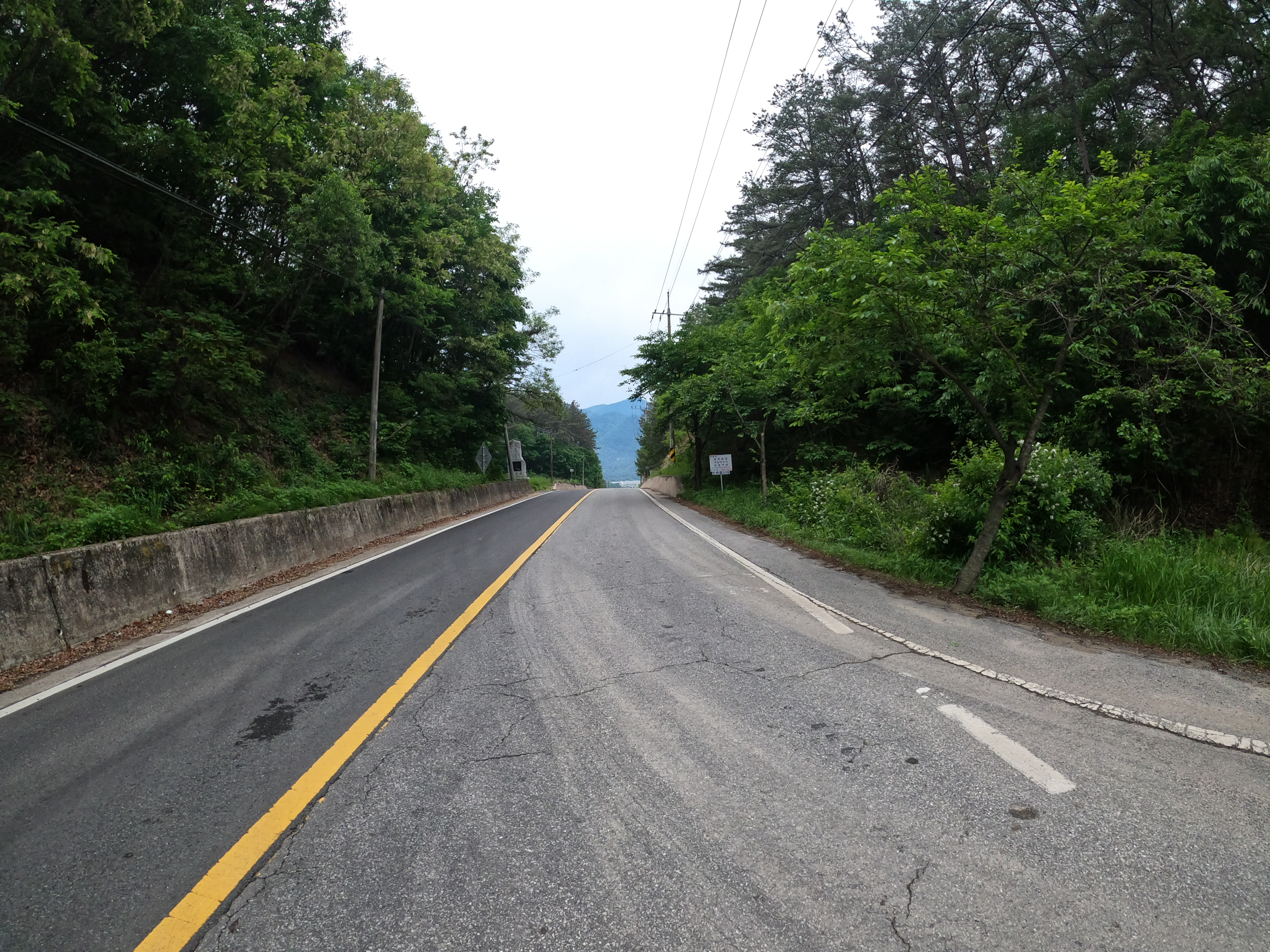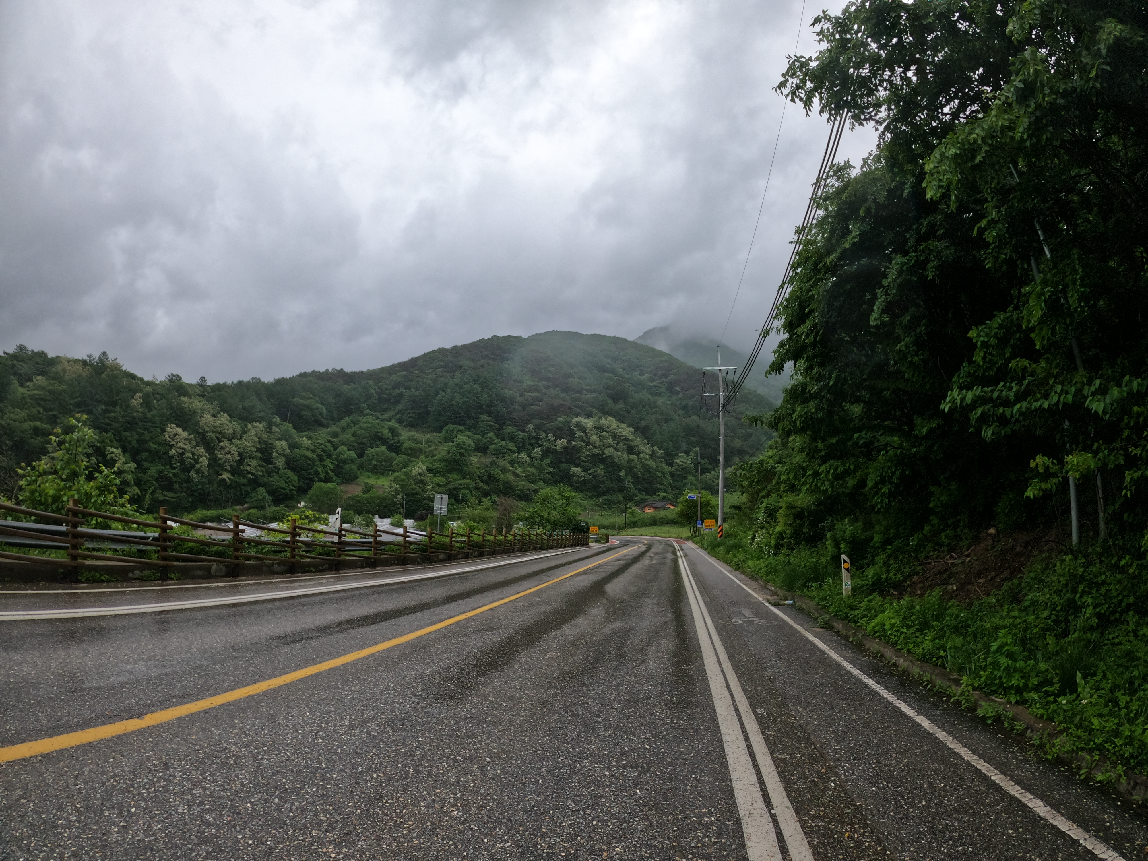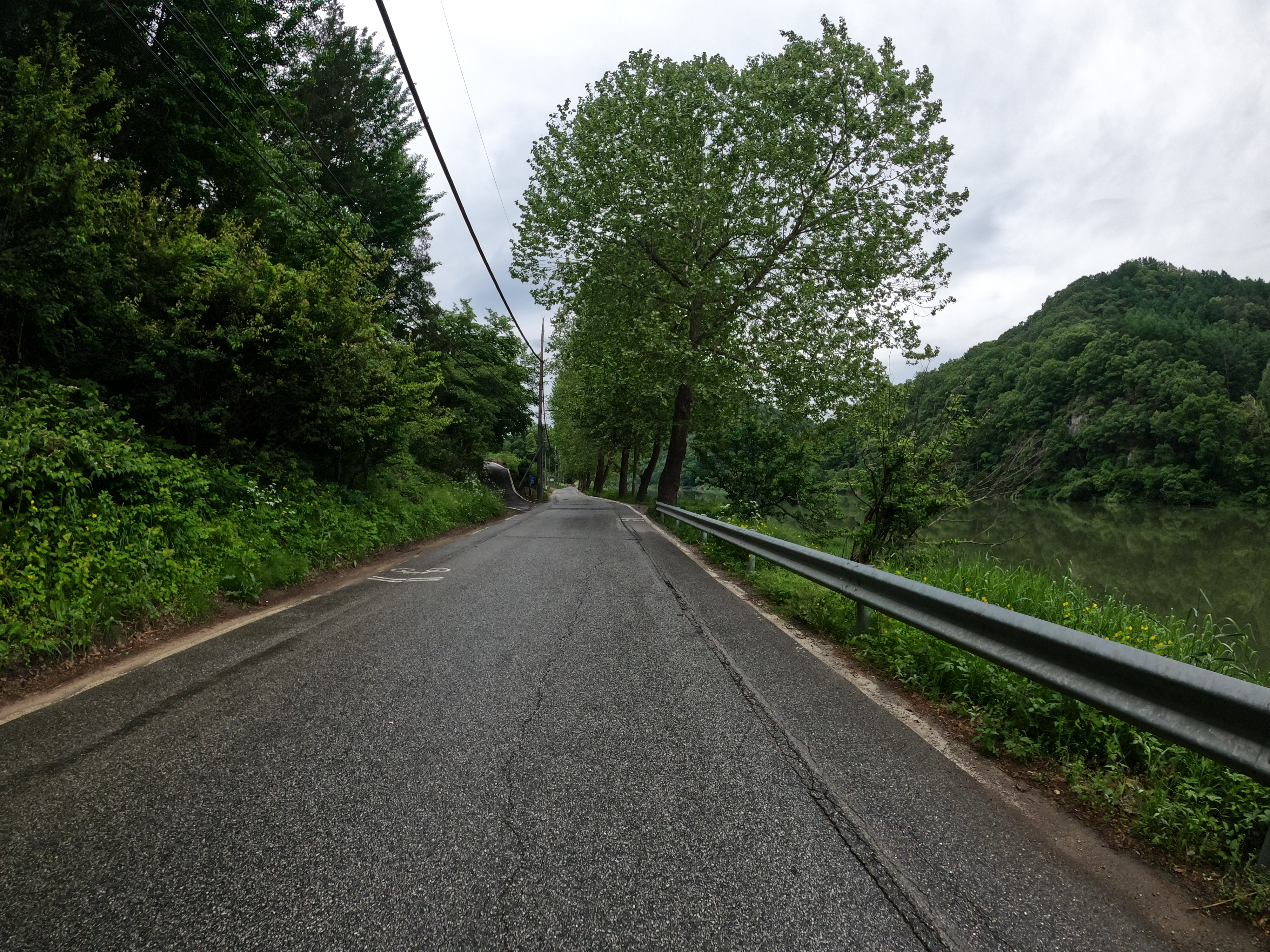 이런 피톤치드가 넘치는 길을 달릴 때는 정말 기분이 좋다. 바란 바는 아니지만, 비가 와서 그런지 더욱 운치 있는 길이 되어 있었다. 물론 자전거를 타면서 비를 맞는 건 별로 그렇게 유쾌한 일은 아니지만 이렇게 멀리 여행을 나왔으니 한 두번쯤은 비를 맞아도 크게 불만은 없다.