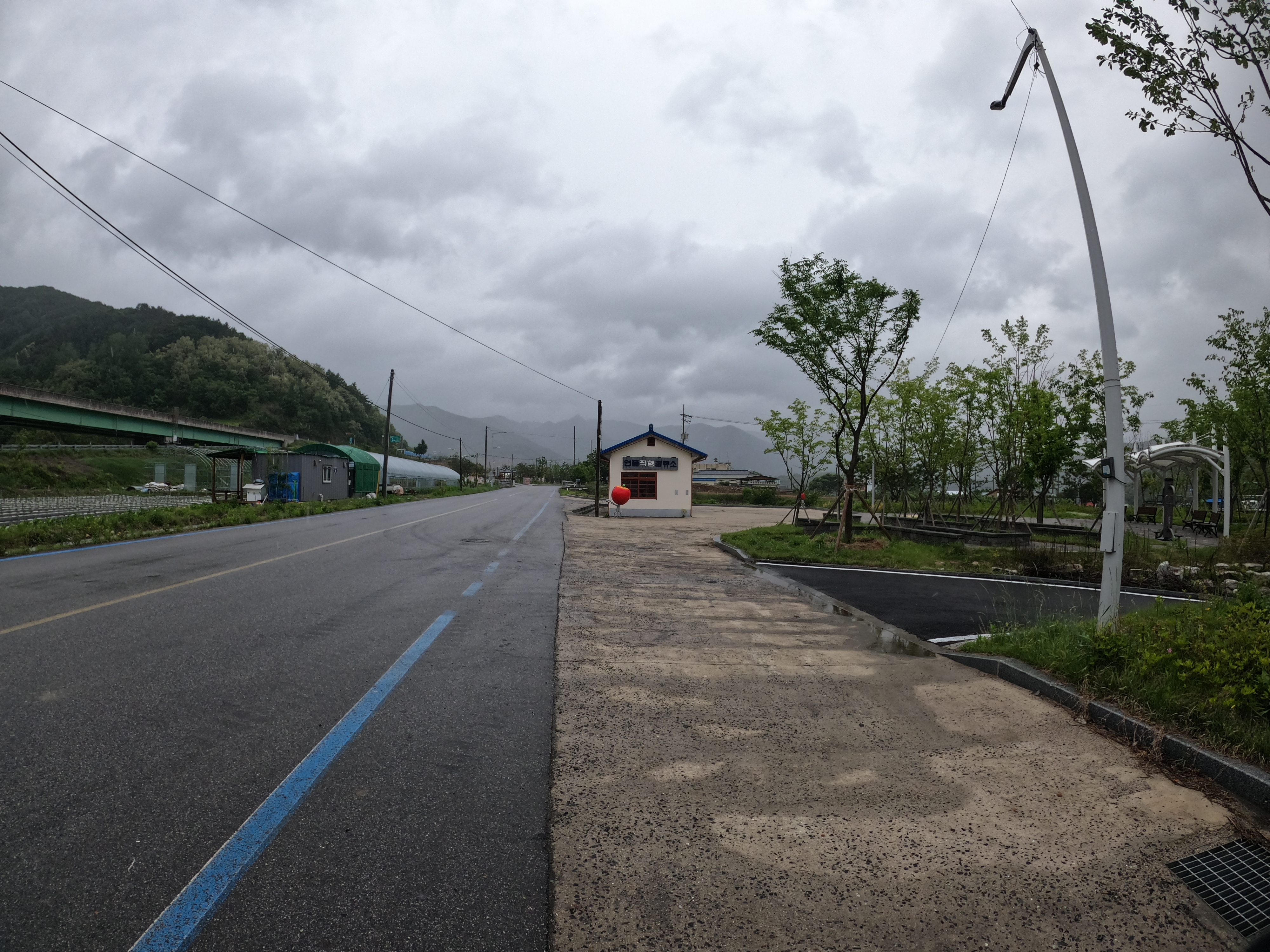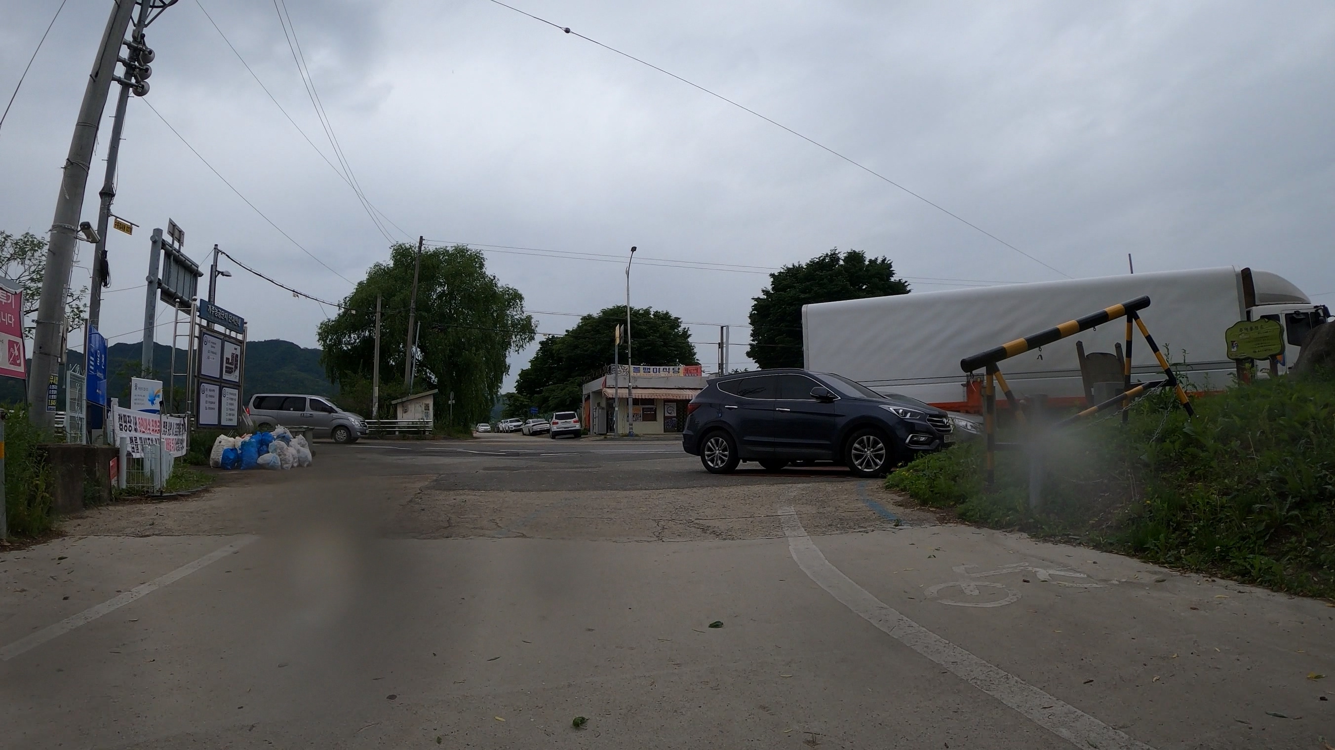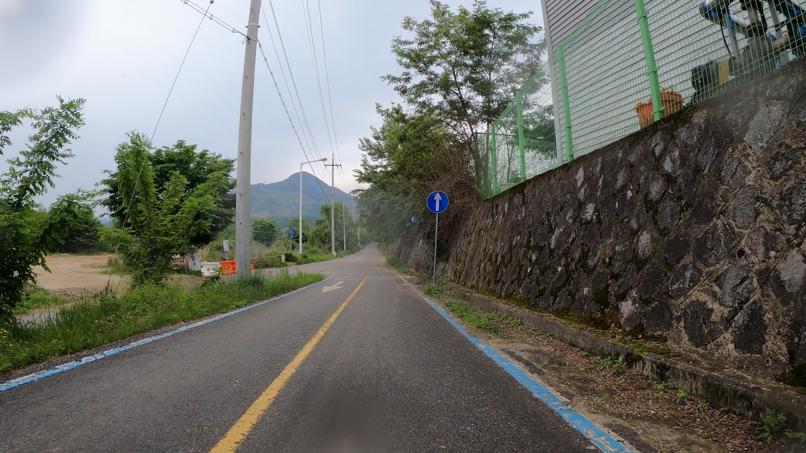 여기서 좌회전을 해서 들어가는 이 농로 구간이 약간 길 상태가 좋지 않은데 조금만 참고 가면 다시 포장 상태가 좋아지니 너무 걱정하지 말도록 하자. 이 때까지는 하늘이 꾸리꾸리하기는 했지만 비는 오지 않았다. 그래서 기상청이 웬일로 열일했네~ 라고 생각했지만...