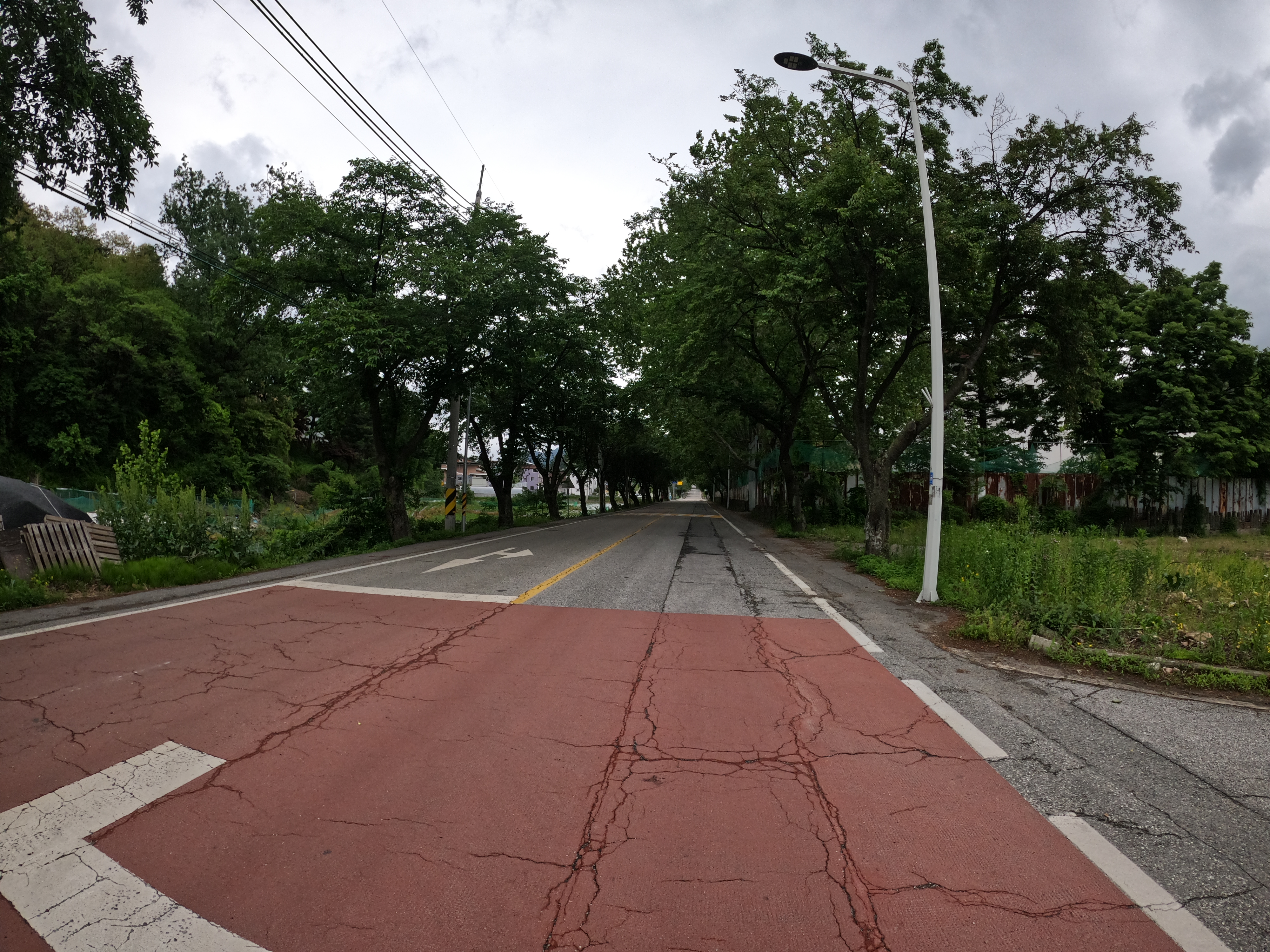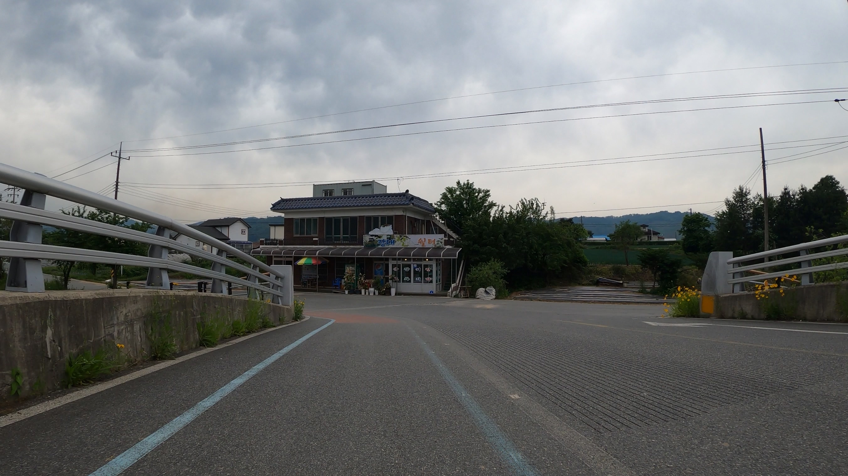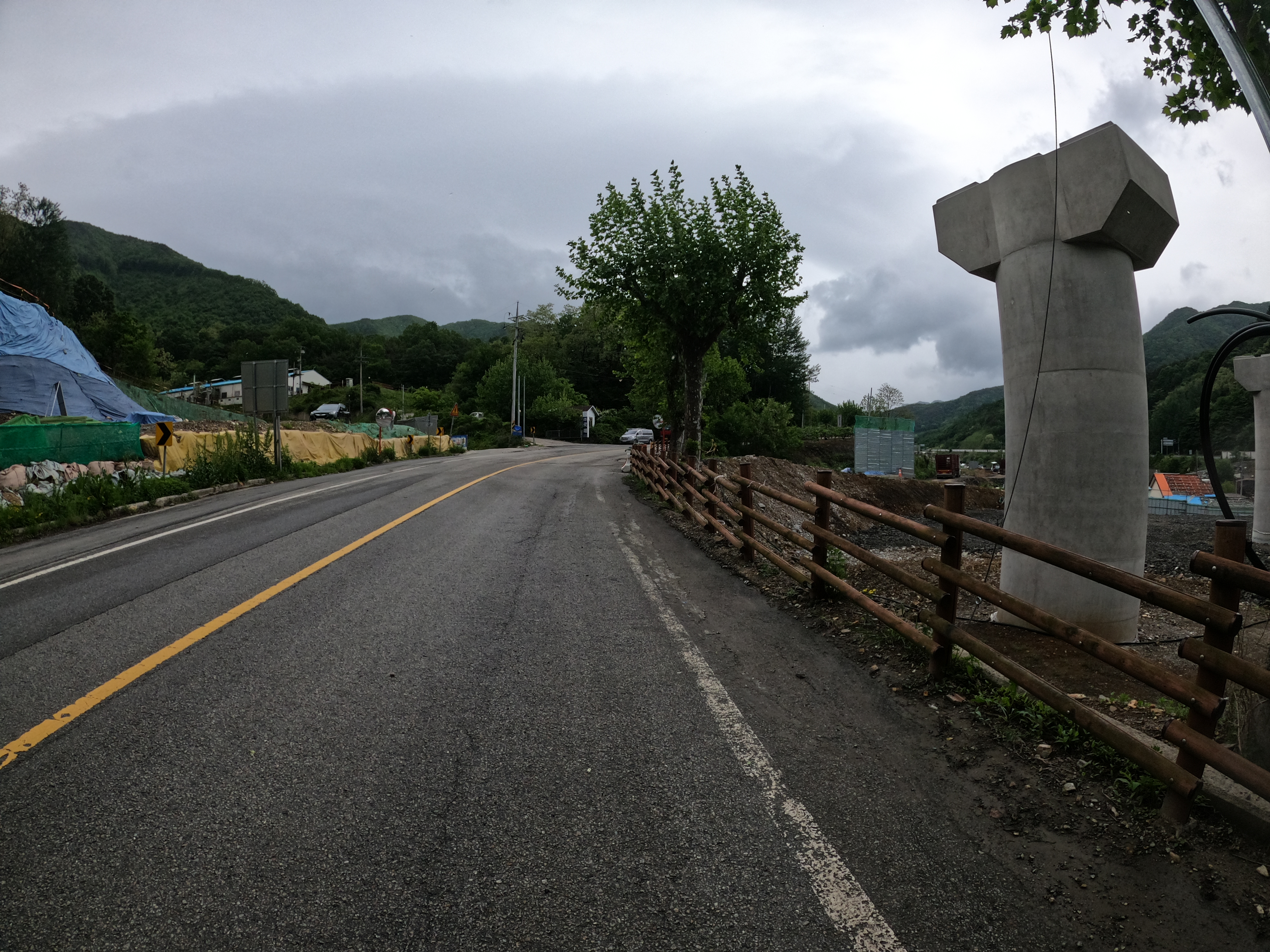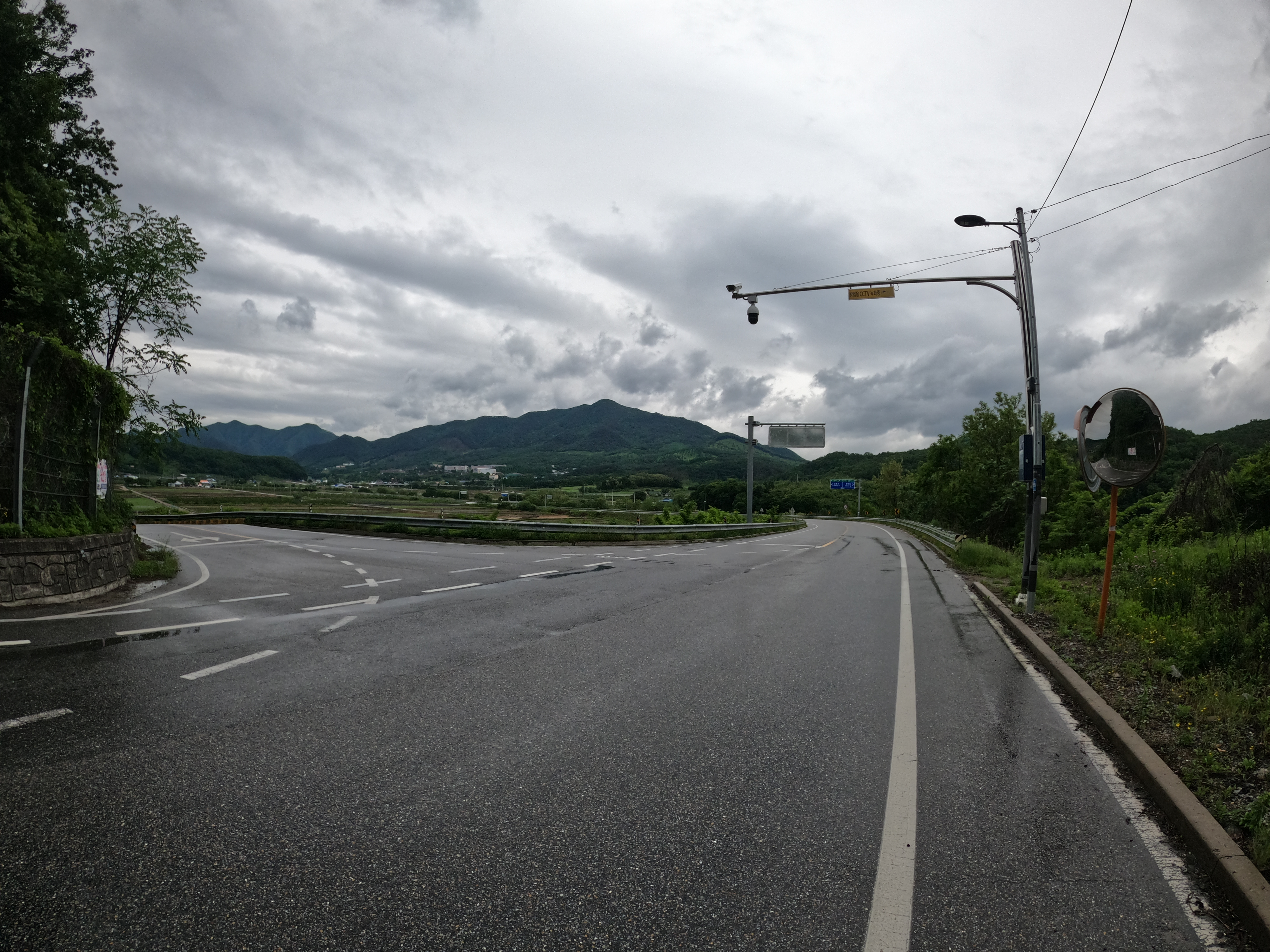 여기서 좌회전을 해서 들어가는 이 농로 구간이 약간 길 상태가 좋지 않은데 조금만 참고 가면 다시 포장 상태가 좋아지니 너무 걱정하지 말도록 하자. 이 때까지는 하늘이 꾸리꾸리하기는 했지만 비는 오지 않았다. 그래서 기상청이 웬일로 열일했네~ 라고 생각했지만...