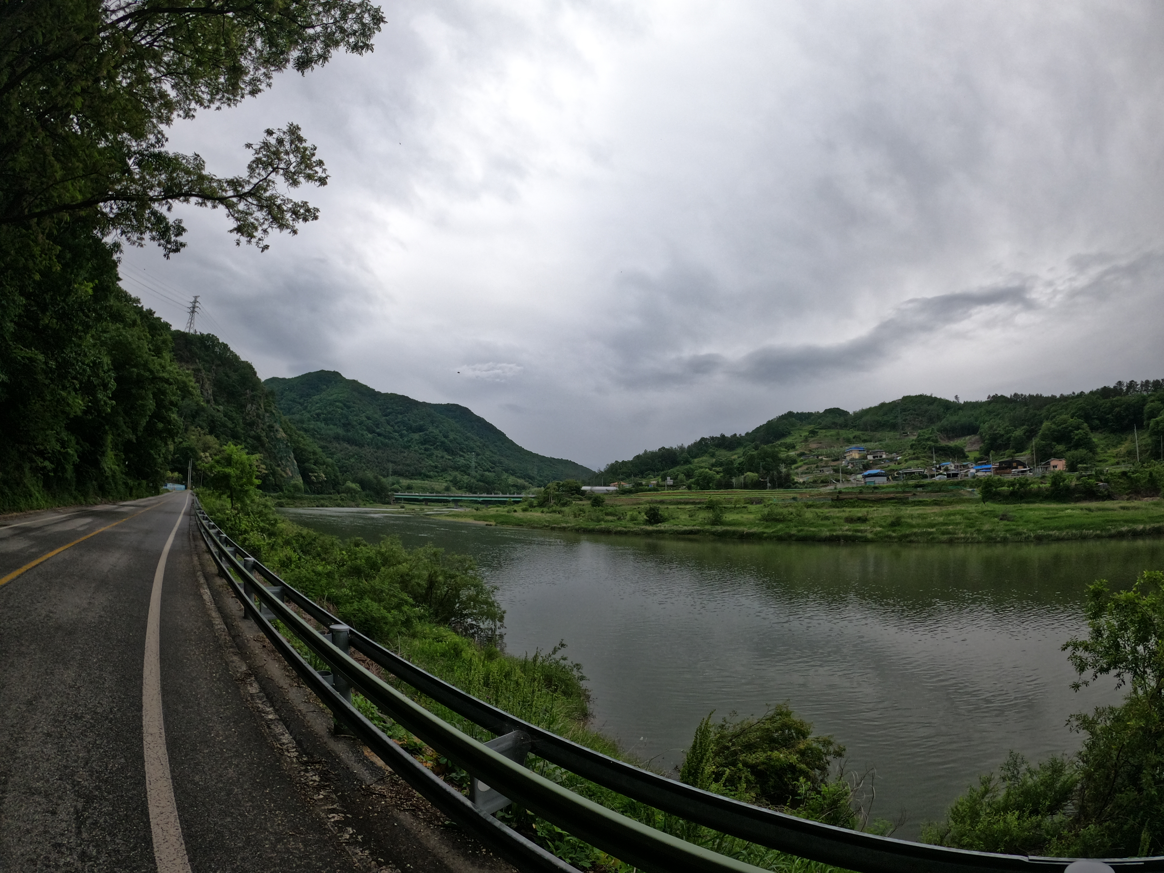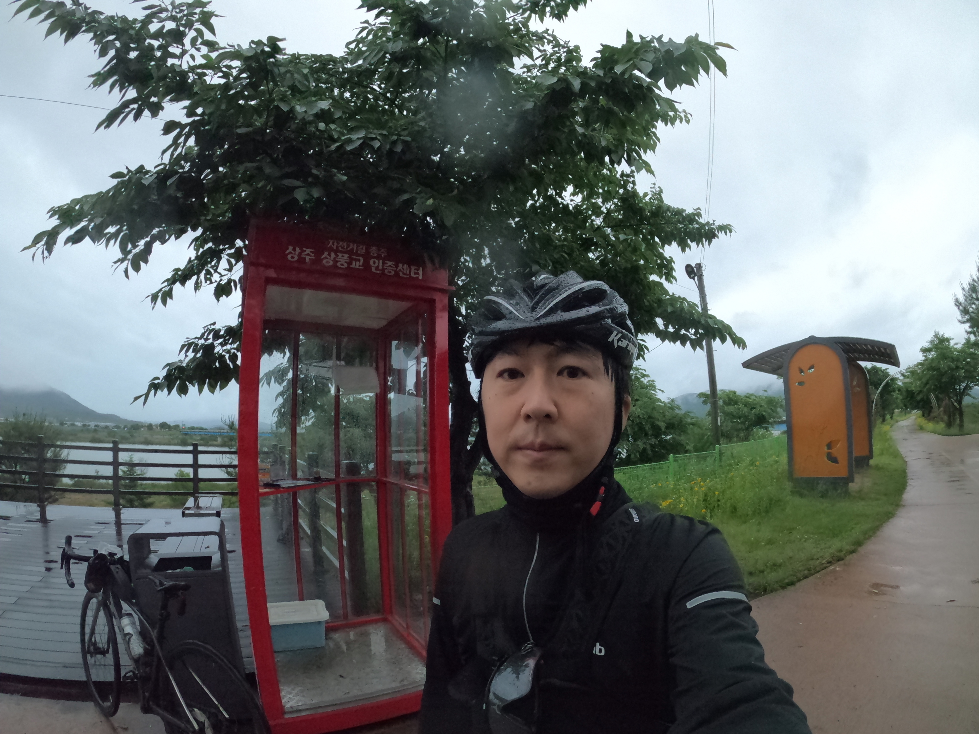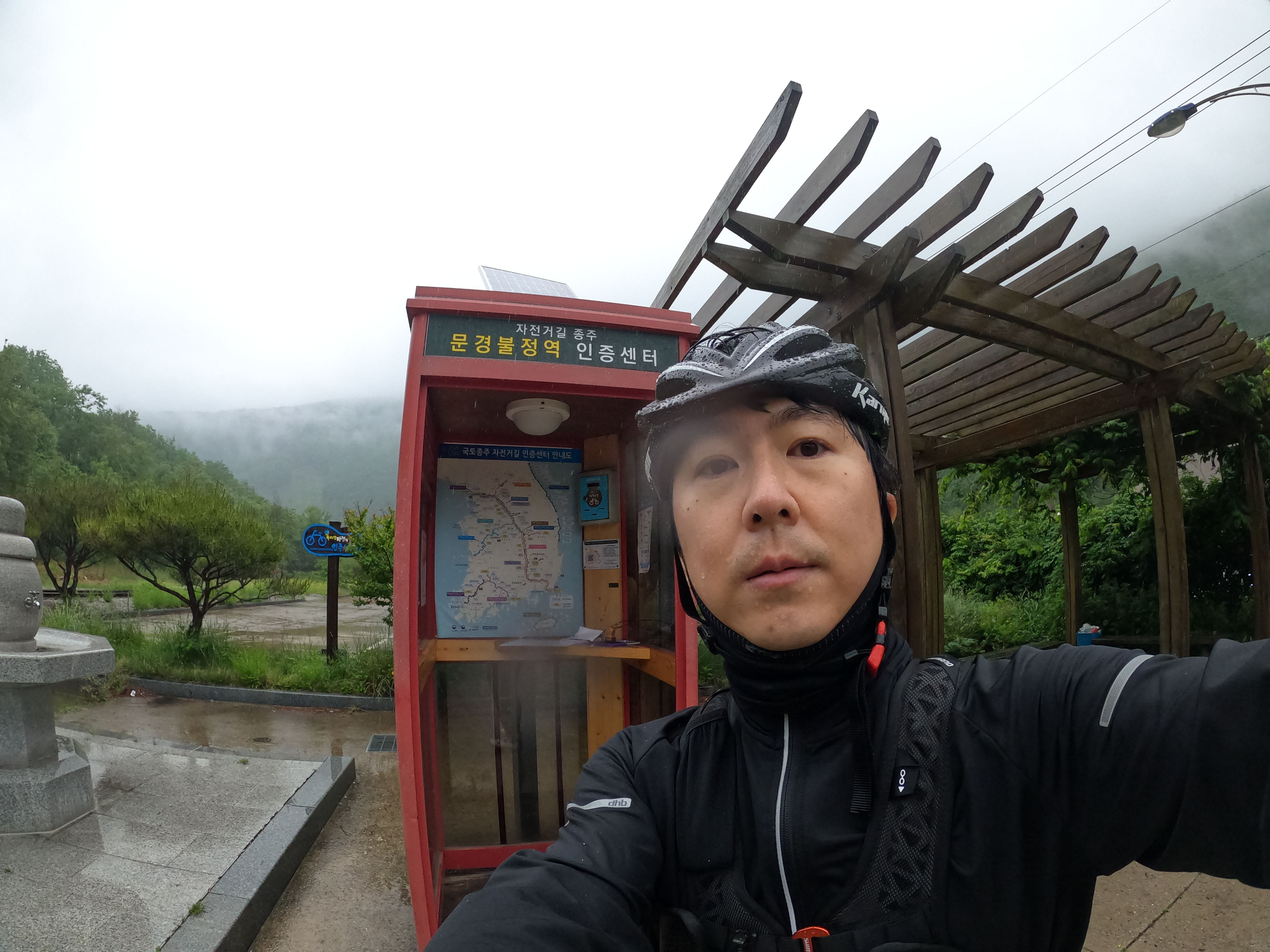 하여튼 인사를 하고 먼저 앞으로 가서 한창 달리다가 뒤를 돌아봤더니 두 분이 내 뒤에서 열심히 따라오고 계셔서 그 때부터는 3인 팩라이딩으로 열심히 달리기 시작했다. 팩라이딩이라고는 해도 내가 말선이었지만 누군가 따라오고 있으니 조금 더 힘이 나는 그런 효과가 있었달까? 두 분은 문경불정역 인증센터에 도착하기 전의 게스트하우스에 숙소를 잡으셨다고 해서 거기까지 동행하기로 했다. 그리고 이 때부터 꽤 많은 양의 비가 내렸다.