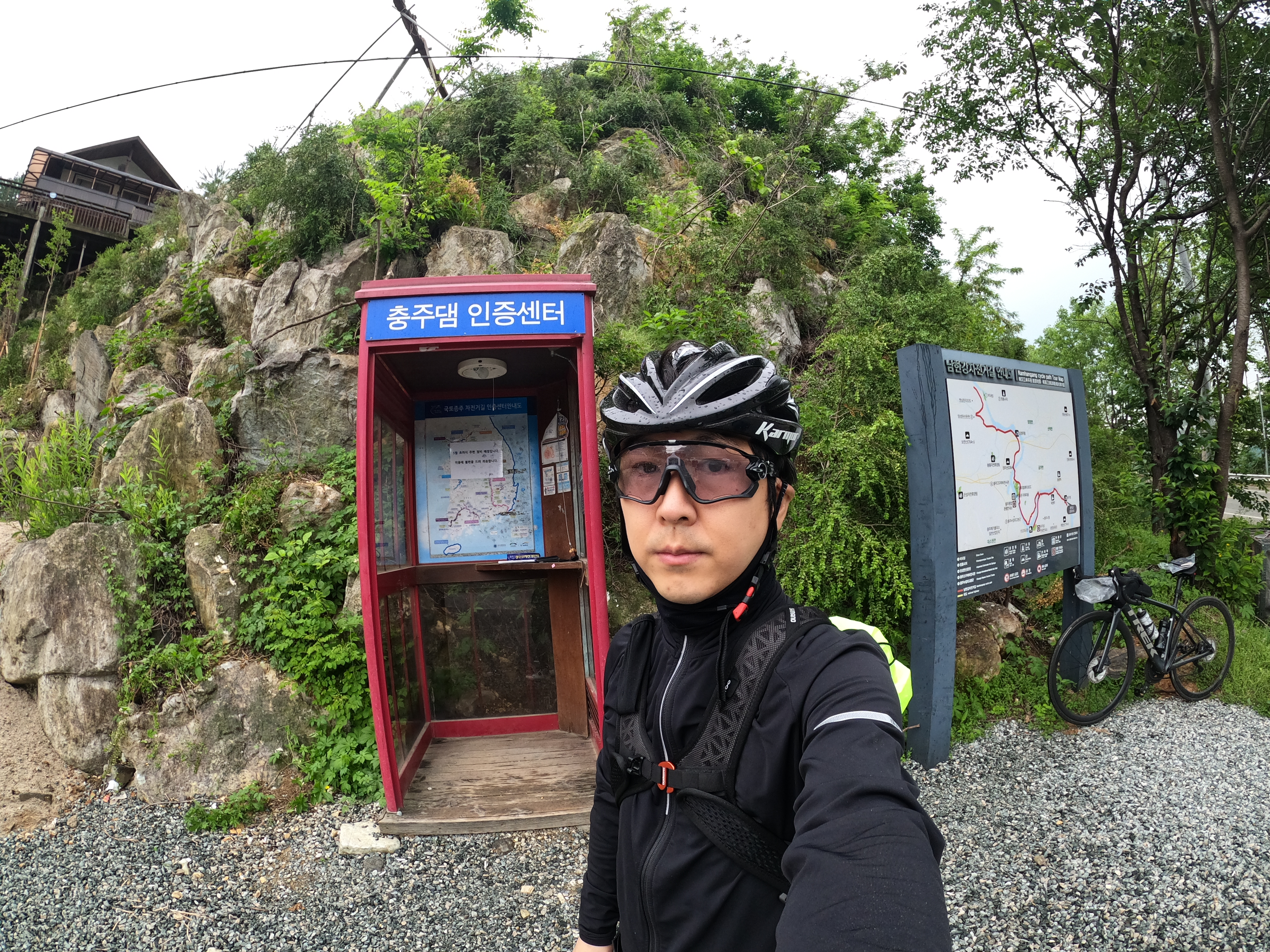 하여튼 그렇게 도착한 충주댐 인증센터다. 여기에 올 때마다 궁금한 점이 왜 굳이 다운힐을 시킨 다음에 다운힐 끝 부분에 인증센터를 두었을까? 그냥 이 인증센터를 오기 위해 무조건 거쳐야만 하는 업힐 위에 만들어뒀으면 도장을 찍은 후에 상쾌한 다운힐로 다시 라이딩을 시작할 수 있을텐데... 입지라도 좋으면 모를텐데 그것도 바닥도 완전 자갈돌에... 왜 이렇게 만들어뒀는지 아직도 이해할 수가 없는 부분이다.