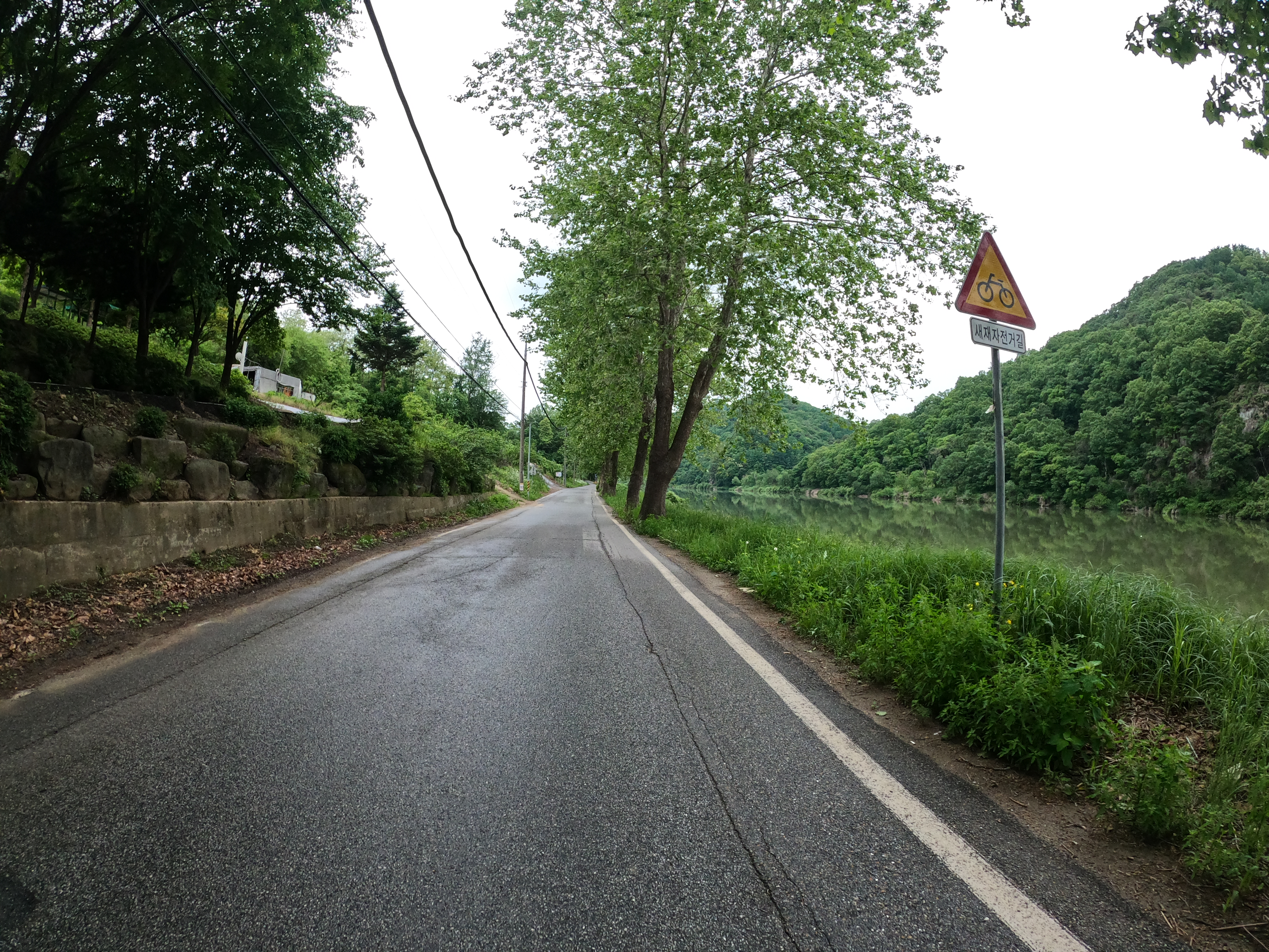 비내섬 인증센터에서 딱히 할 건 없어서 바로 충주댐 인증센터로 출발하기로 한다. 비가 오기 전에 최대한 거리를 뽑아둬야 하니까. 배가 고프신 분들은 비내섬 인증센터에서 식사를 하고 출발하셔도 된다. 비내섬 인증센터를 출발하면 얼마 안 있어 이런 업힐을 하나 넘어야 한다.