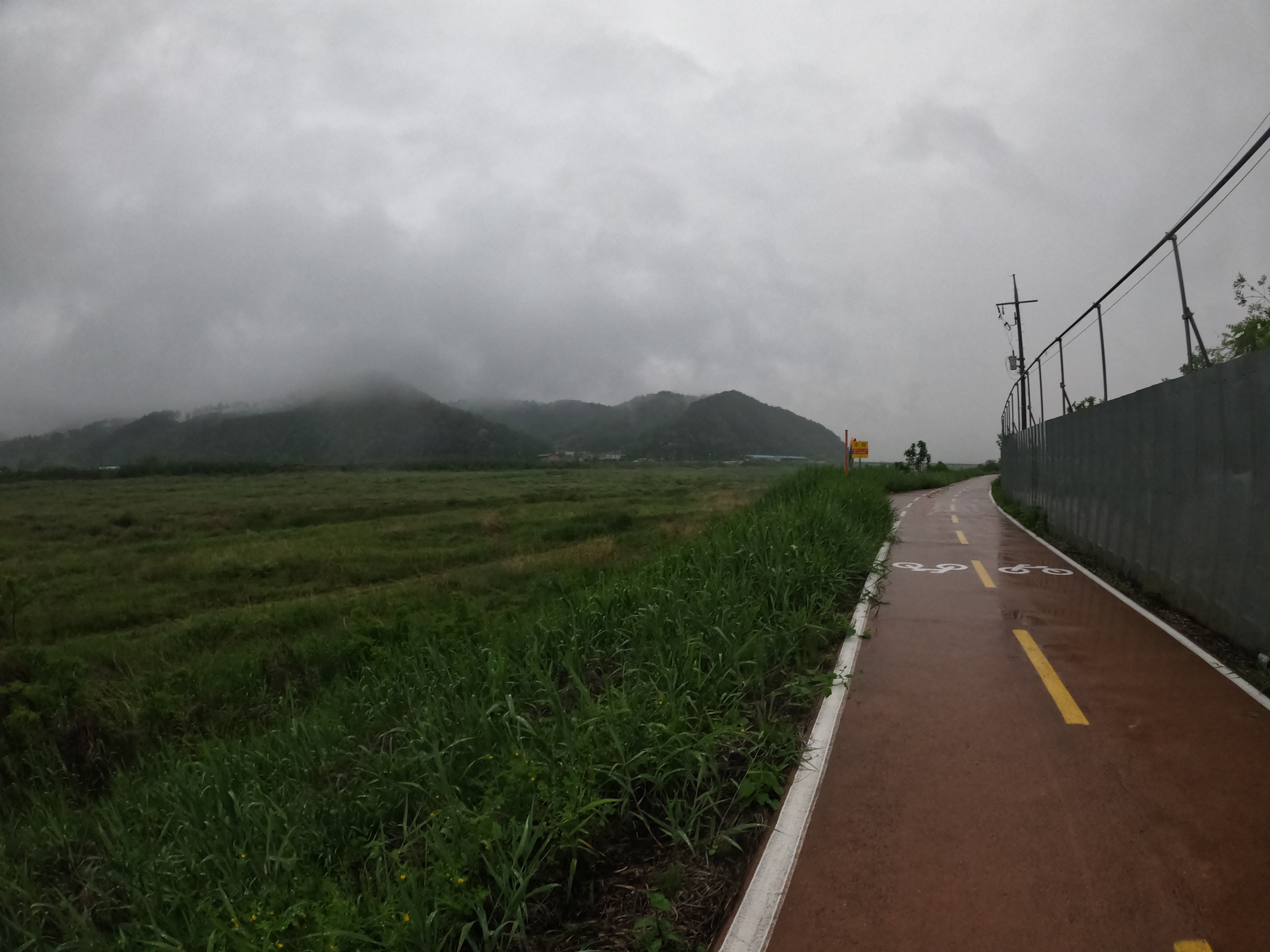 이제 이 날의 마지막 코스다. 남은 힘을 전부 쏟아서 달려보기로 했다. 어차피 자전거도 옷도 이미 비에 젖어 너덜너덜 해졌으니 물웅덩이도 신경쓰지 말고 과감히 달려보기로 했다. 물웅덩이가 문제가 아니라 이 때가 이미 저녁 6시가 넘은 시점이어서 이 빗속에 야간 라이딩을 하게 되는 것이 더 위험했다.