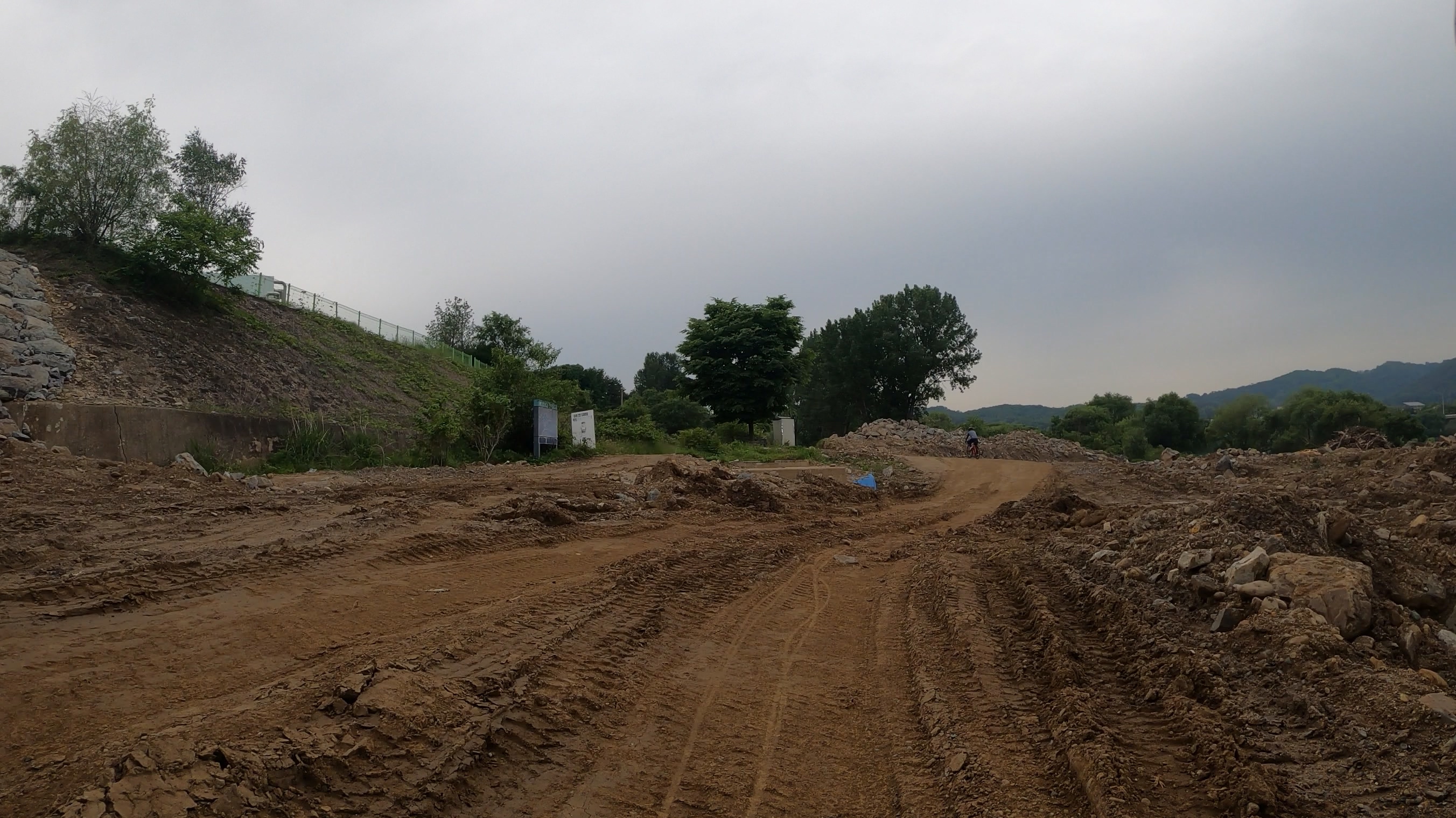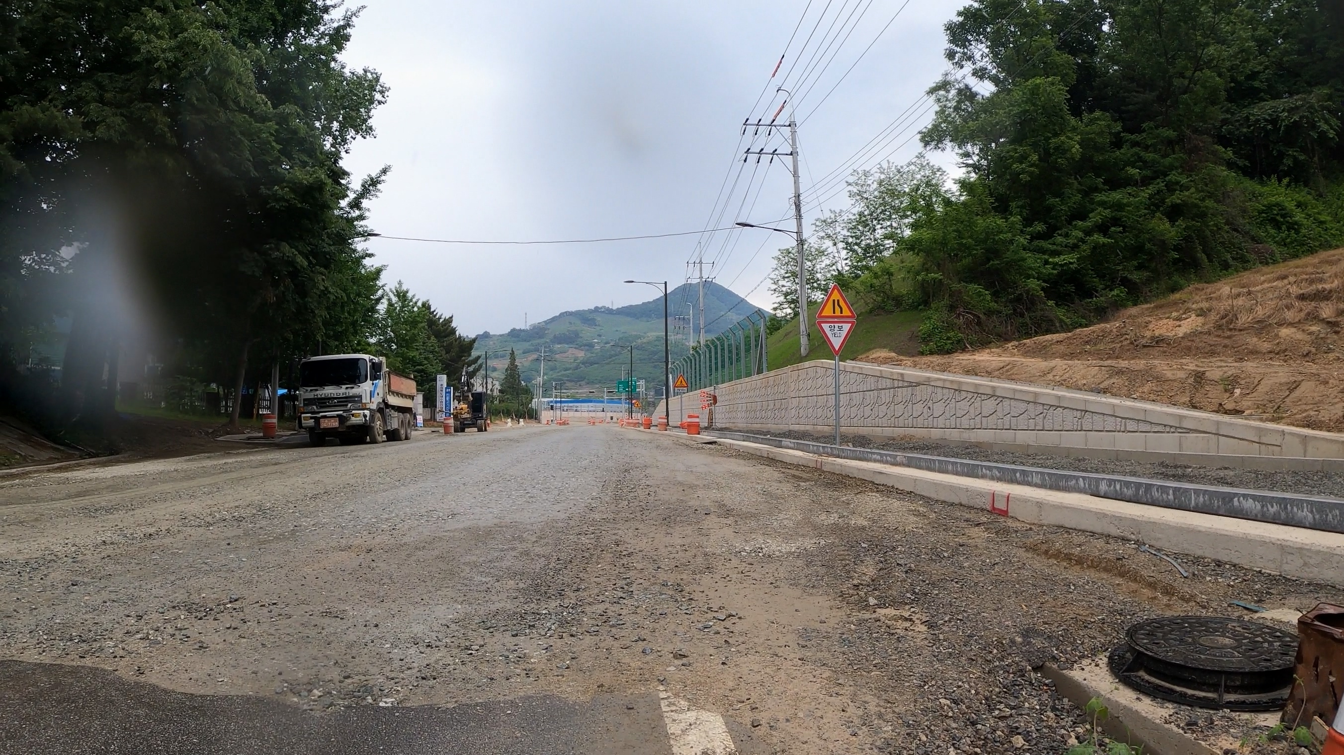 데크 구역을 지나서 좌회전을 하면 아래 사진처럼 공사하는 곳이 있어서 덤프 트럭이 많이 지나다니므로 조심조심해서 다니도록 하자. 보통 덤프 트럭은 뒤에서 오는 소리만 들어도 알 수 있으니 최대한 우측으로 피해있다가 덤프 트럭이 지나가고 나서 가거나 하면 다시 출발하는 것도 안전한 방법이라고 할 수 있겠다. 내가 갔을 때 마주친 덤프 트럭들은 전부 나를 안전하게 피해서 가줘서 너무 감사했다.