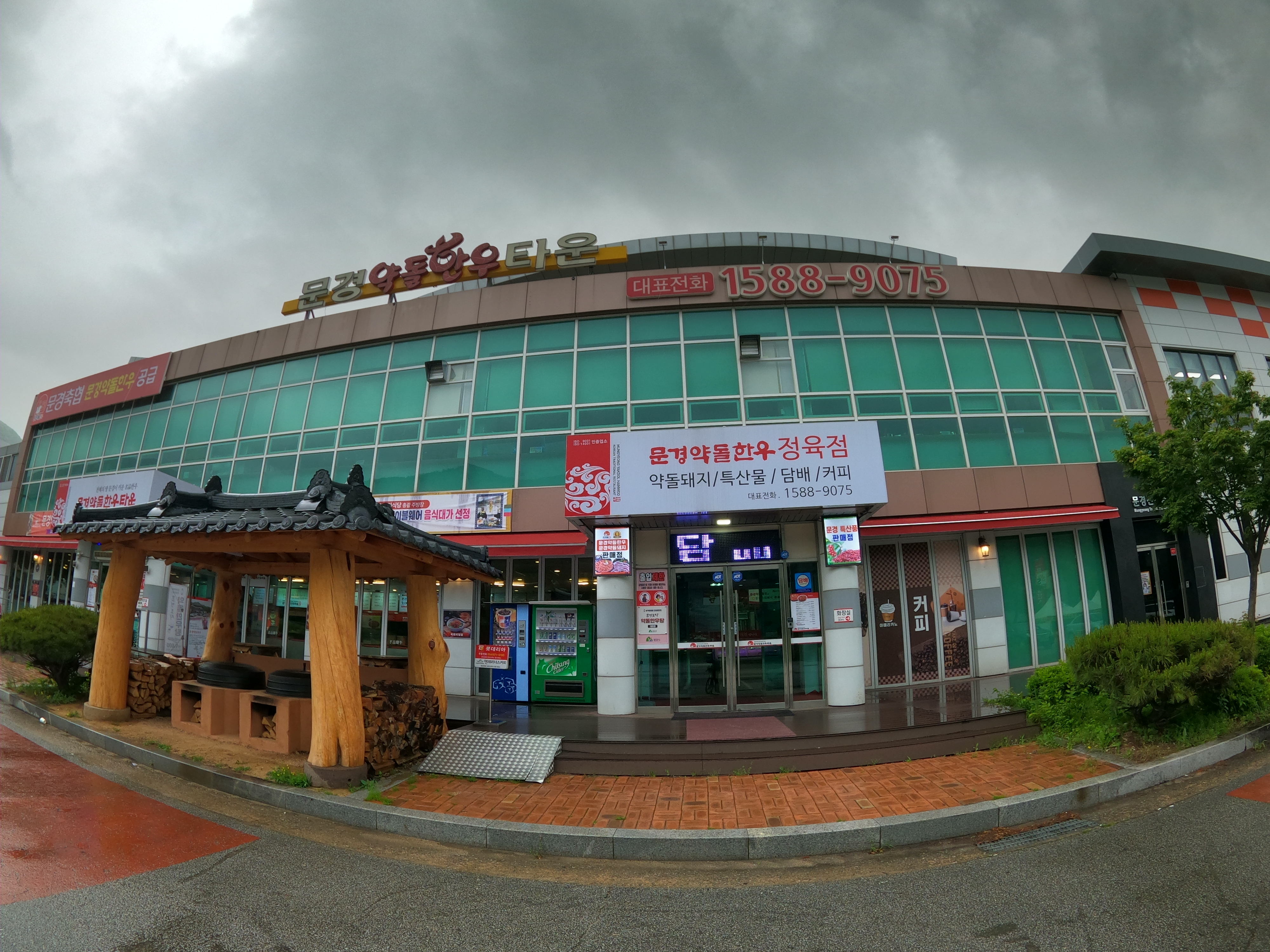 비는 많이 왔지만 딱히 물웅덩이가 있거나 하지는 않았는데 참 신기한 노릇이다. 덕분에 이 신발은 다음 날까지 푹~ 젖어있었다. 이화령에서 다운해서 내려온 후 조금만 더 가면 문경약돌한우 타운이 나온다.