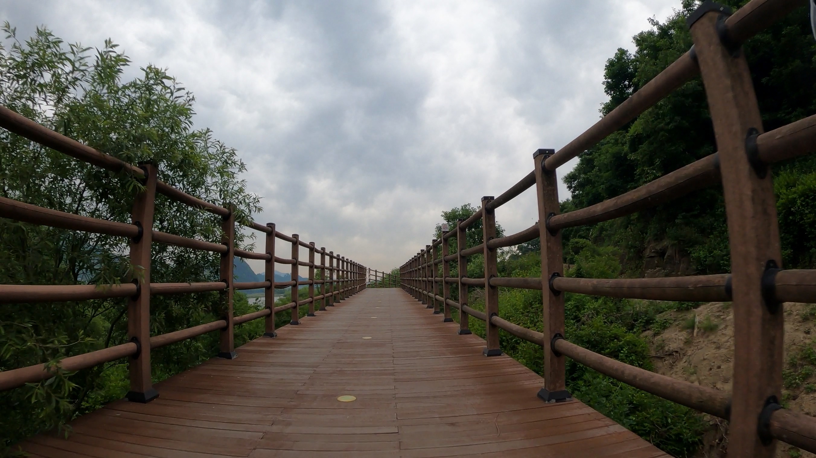 계속해서 달리다보면 오르막을 하나 넘는데 이 오르막만 넘으면 상주상풍교 인증센터로 갈 수 있다. 단, 이 구간은 나무 데크로 되어 있어 이렇게 비가 많이 온 날은 위험할 수 있으니 조심해서 넘도록 하자. 정말 멀고도 먼 상주상풍교 인증센터였다.
