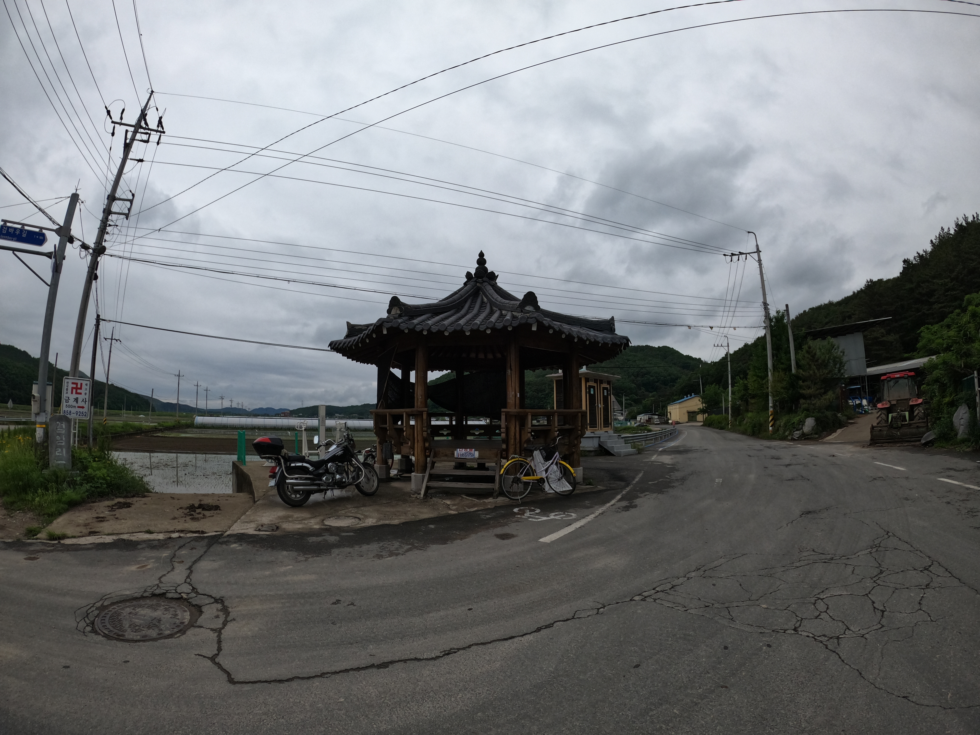 쓰레기 처리장을 넘어서 다운힐이 끝난 지점에서 조금만 더 가면 정자가 있고 옆에는 동네 슈퍼가 있는데 예전에 이 곳에서 시원하게 보급을 했던 기억이 있는데 다시 갔을 때는 문을 열지 않았었다. 코로나 때문인지 그냥 문을 안 연건지는 모르겠다.