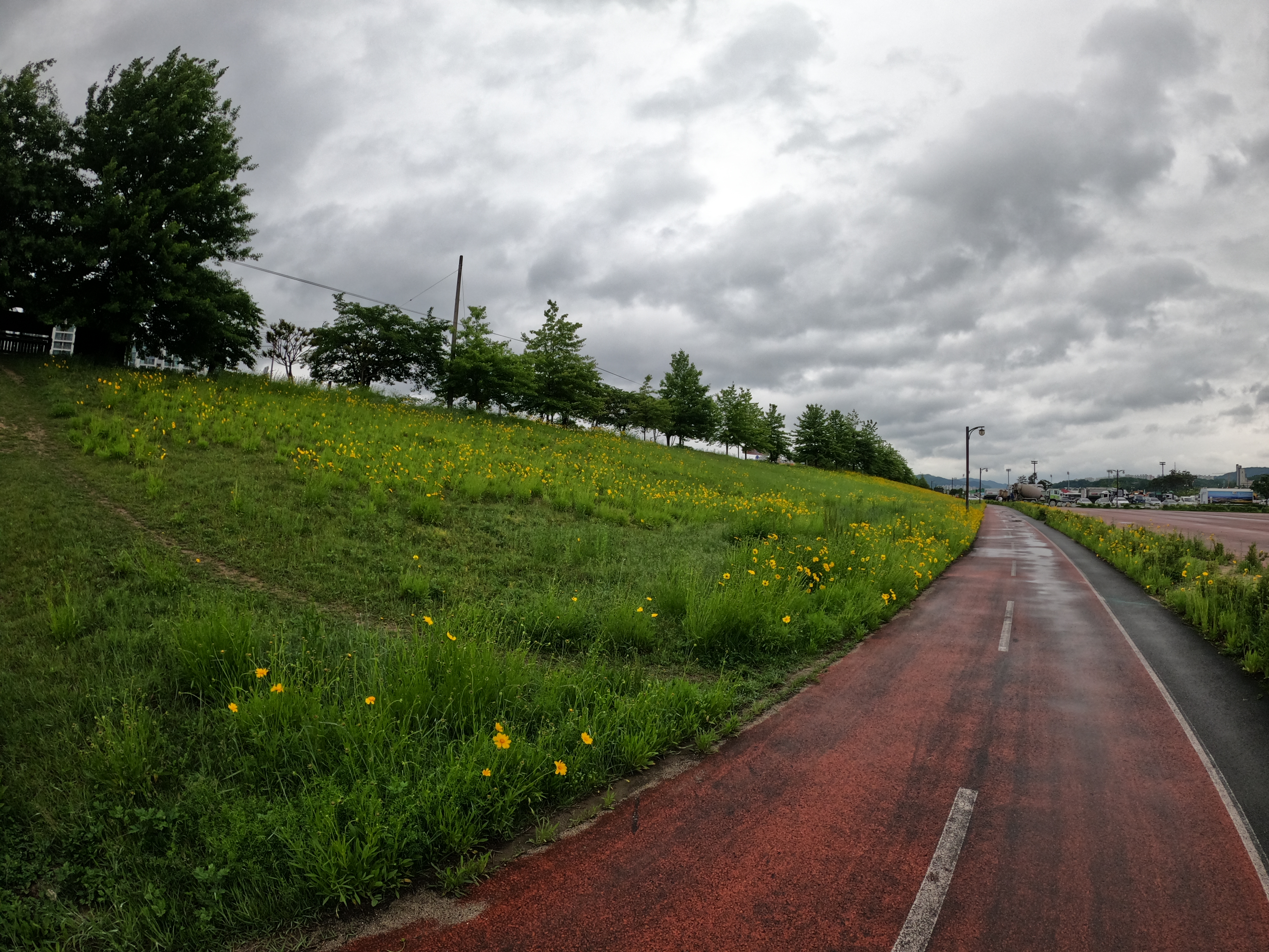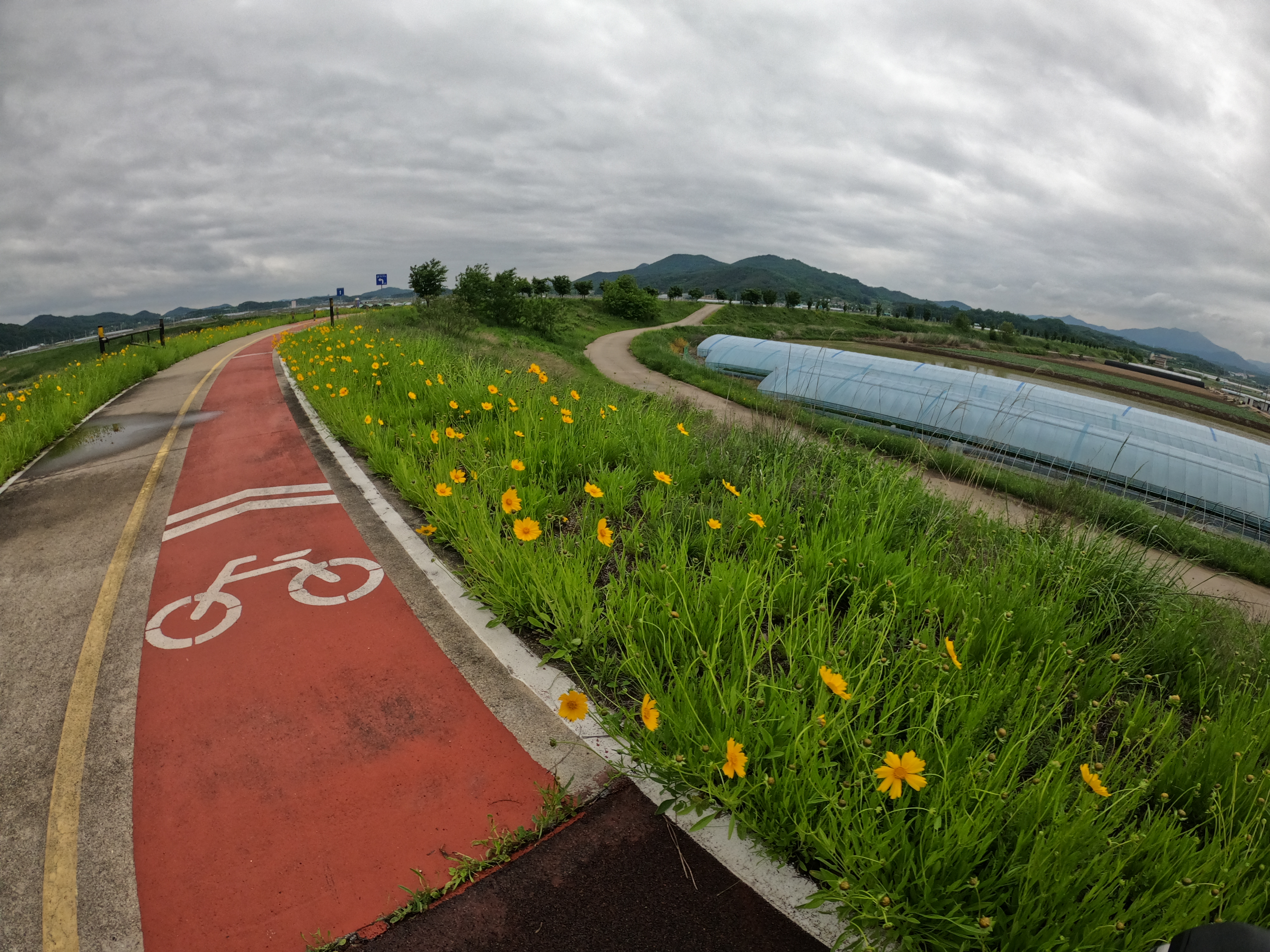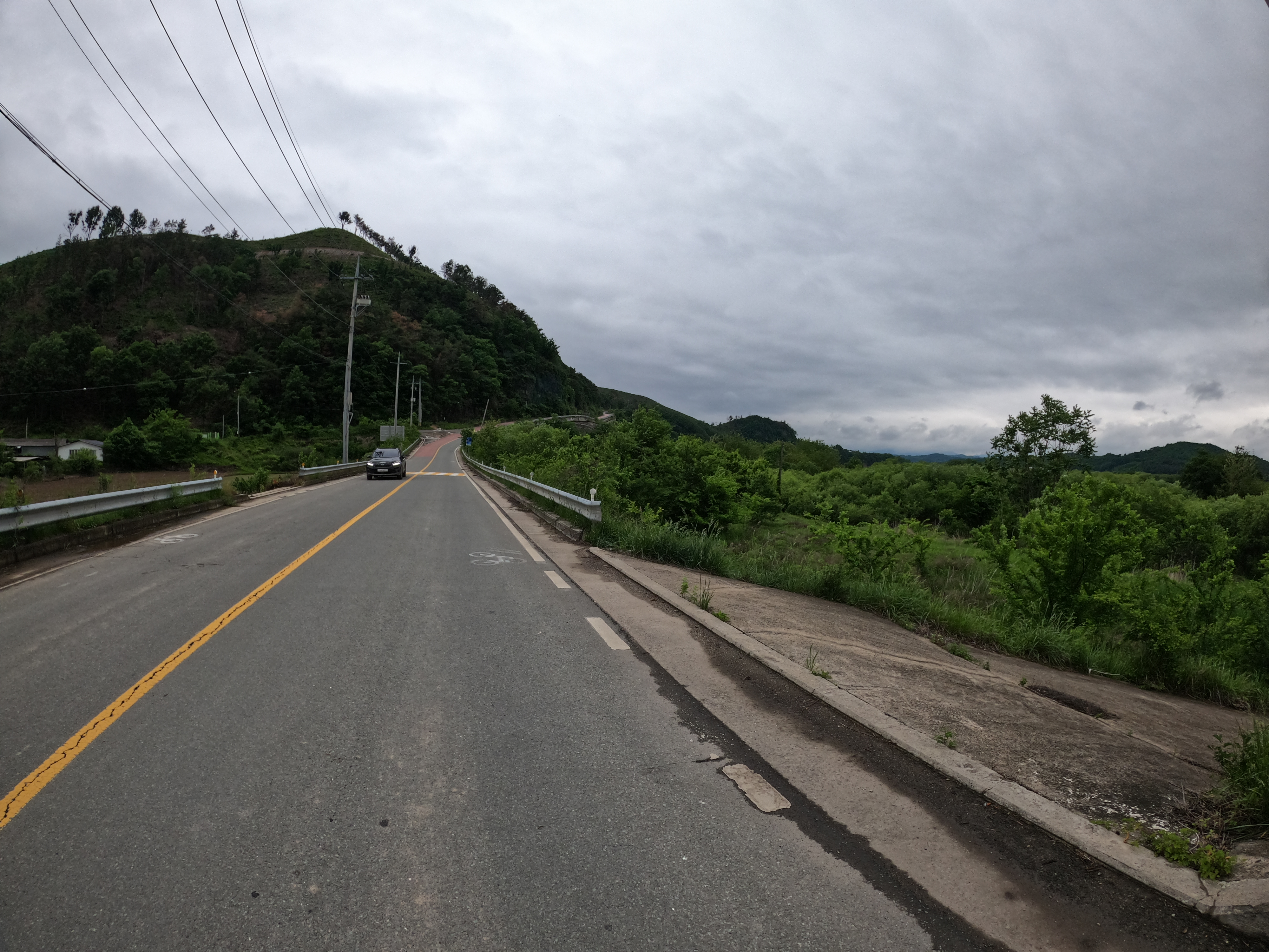 그리고 2021.05.19 기준 삼거리 슈퍼를 지나면 어느 정도 구간은 도로를 새로 포장해서 차선이 아직 그려져 있지 않았다. 차량에 주의해서 달리도록 하자. 여기서 공사하시던 분들도 참 감사한 게 내가 지나갈 동안은 잠시동안 공사를 멈춰주시고 내가 지나가니까 다시 공사를 시작하셨다. 감사합니다. 꾸벅.