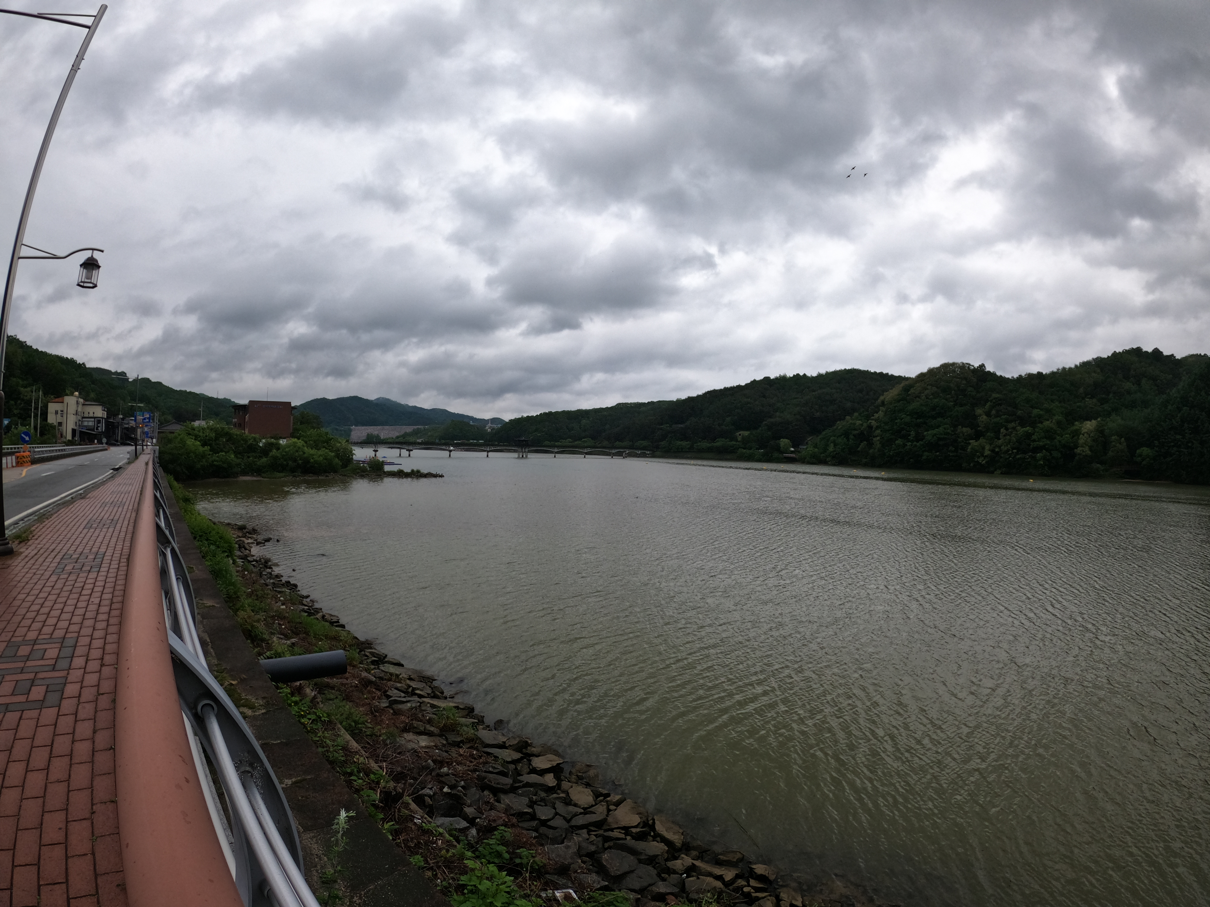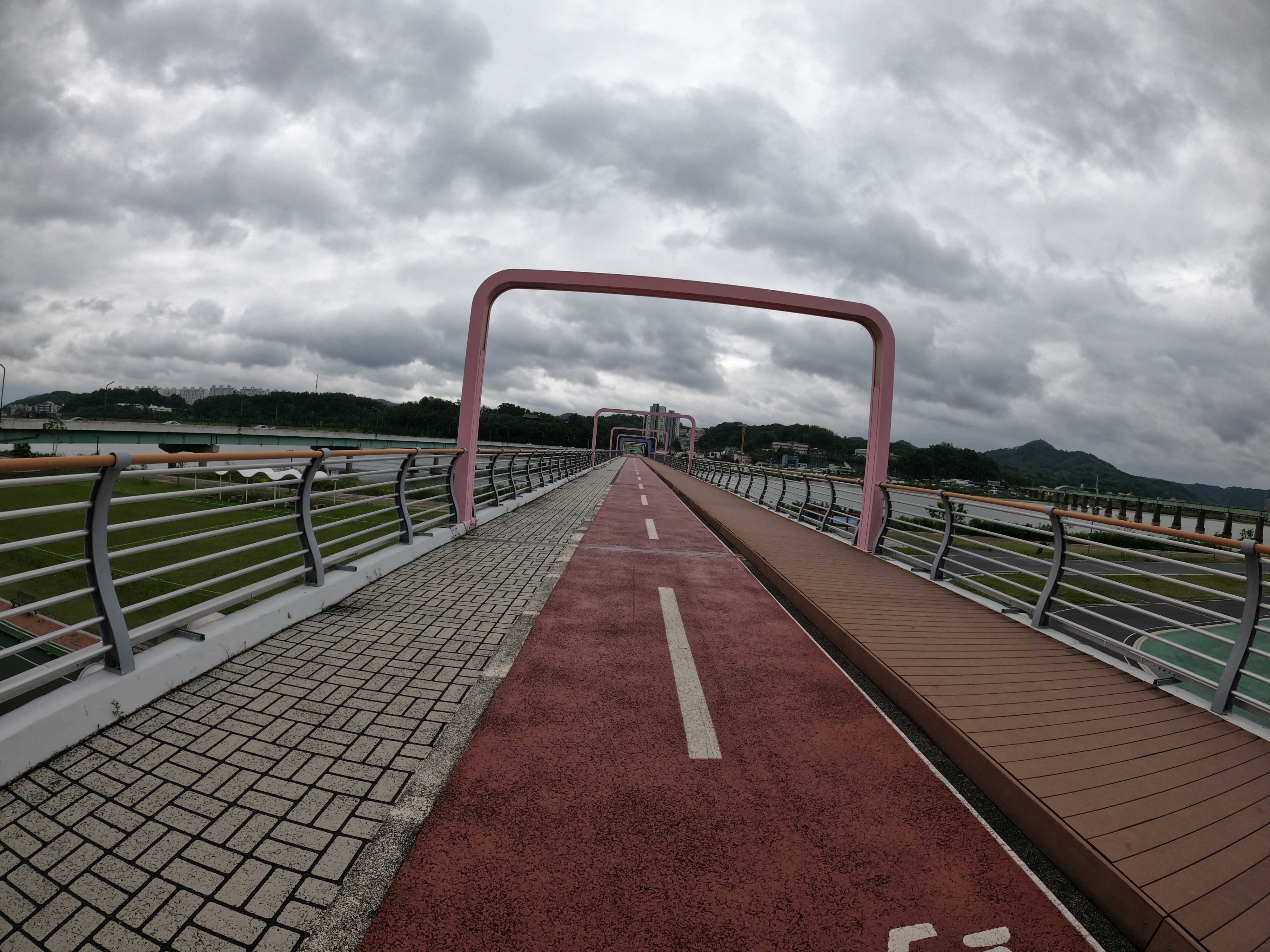 참고로 안동댐 인증센터에서 내려오다보면 위에서 말한 공사 구간에 도착하기 전에 왠지 인도로 올라가라고 하는 것 같은 곳이 있는데 무시하고 공원을 통해 진행하다가 다리(자전거 대여소)가 보이면 위로 올라가면 된다. 인도로 달리기에는 길이 너무 엉망으로 되어있다.