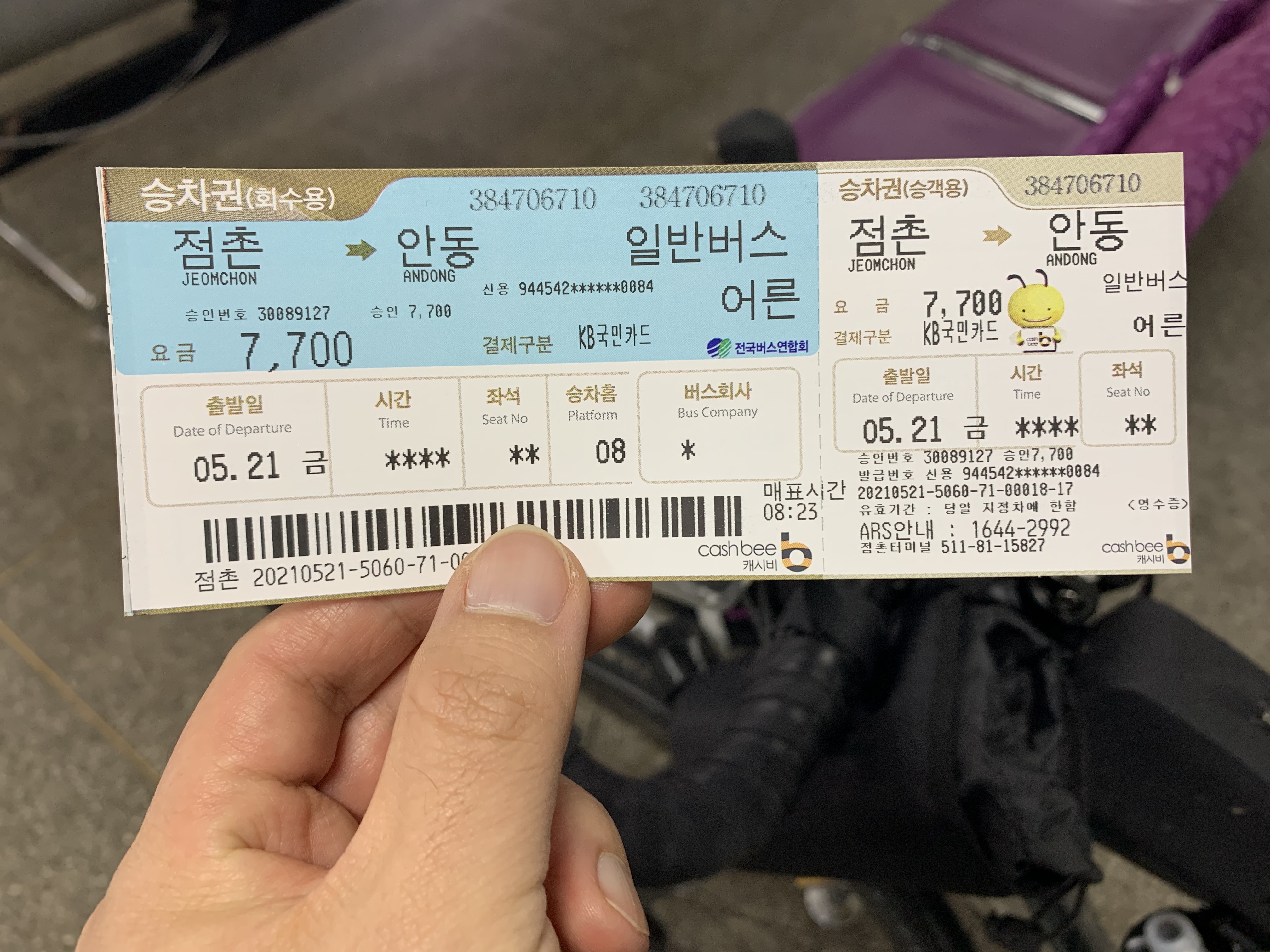 점촌 터미널에서 안동 터미널까지는 버스로 대략 1시간 30분 정도가 소요 되고 요금은 7,700원이다. 내가 안동 터미널에 도착했을 때가 10시 10분 정도였다.