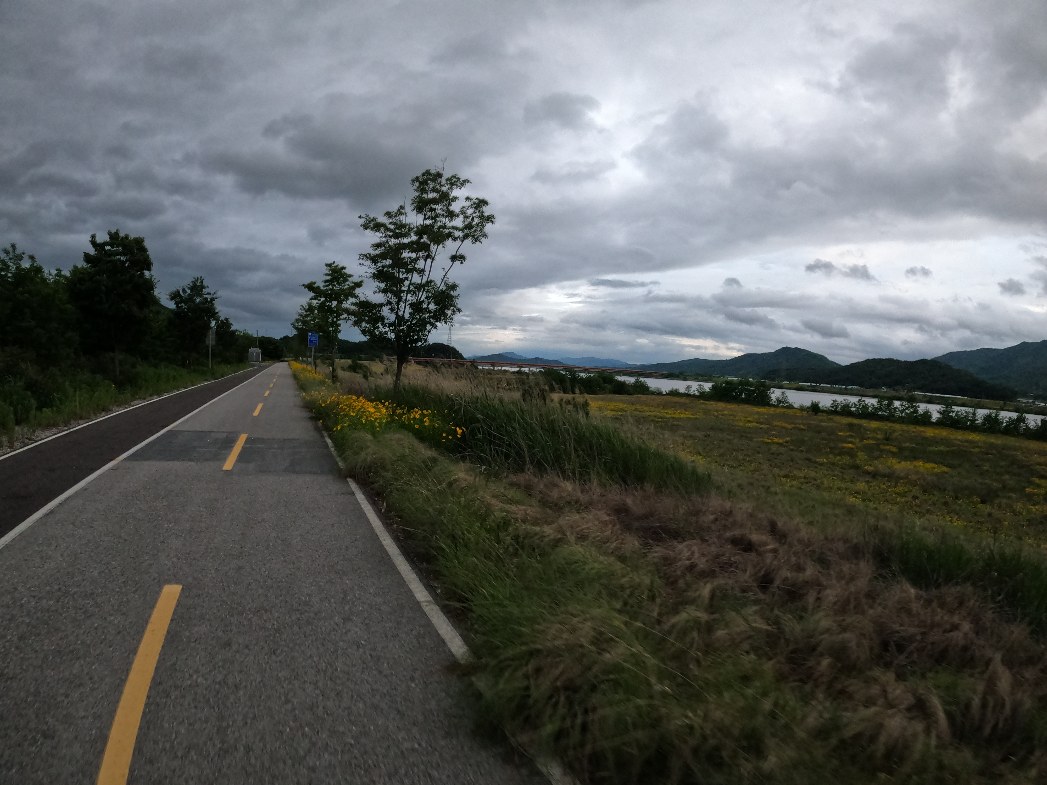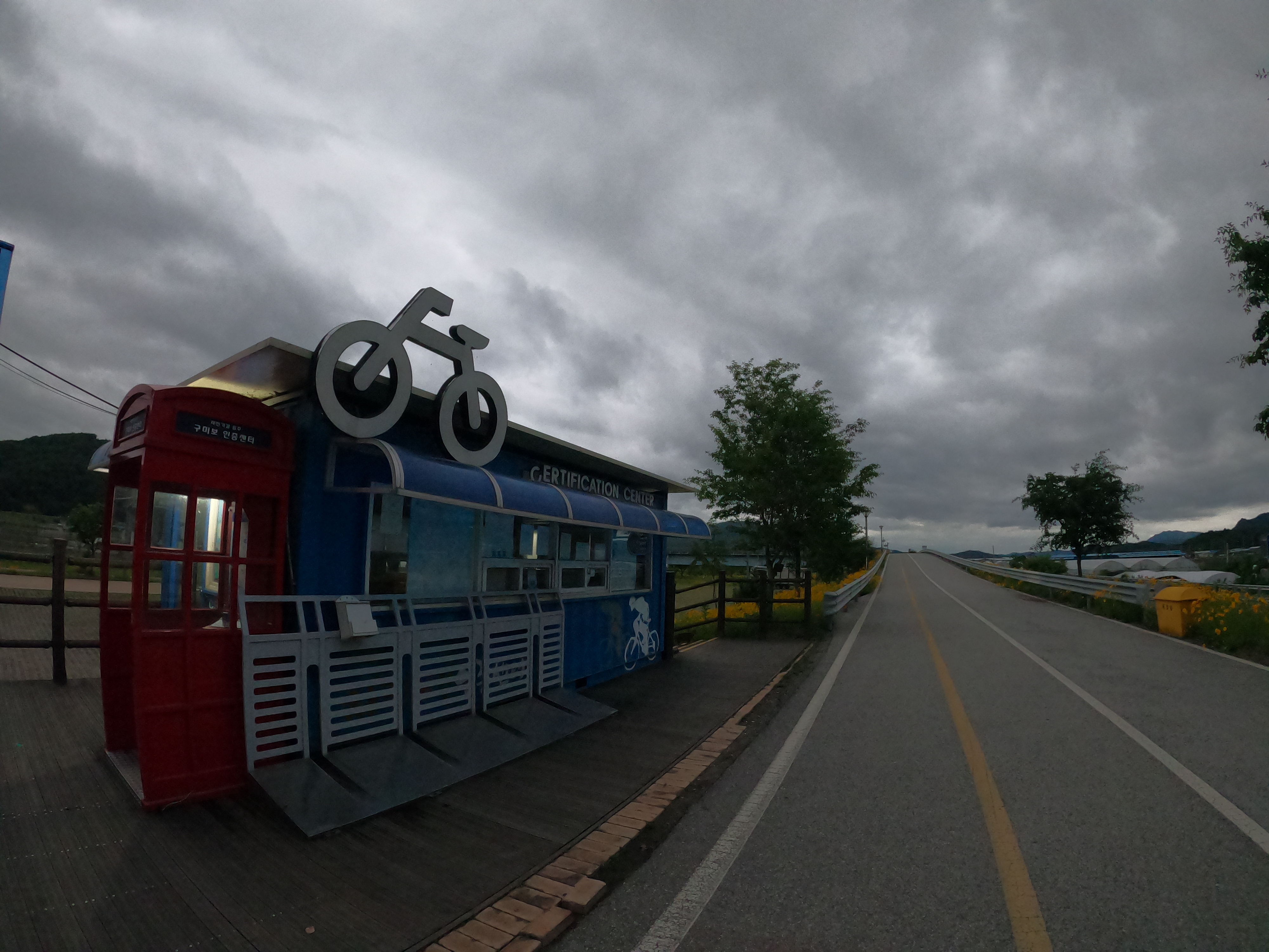 이 상황에 만약 역풍이라도 불었다면 진짜 밤 늦게 개고생 할 뻔 했는데 다행히 바람도 도와줘서 지루할 틈도 없이 슝슝 밟아서 정말 놀라울 정도로 아무런 이슈도 없이 구미보 인증센터에 도착할 수 있었다. 밝을 때 도착하고 싶었지만 그것까진 욕심이었던 것 같다.