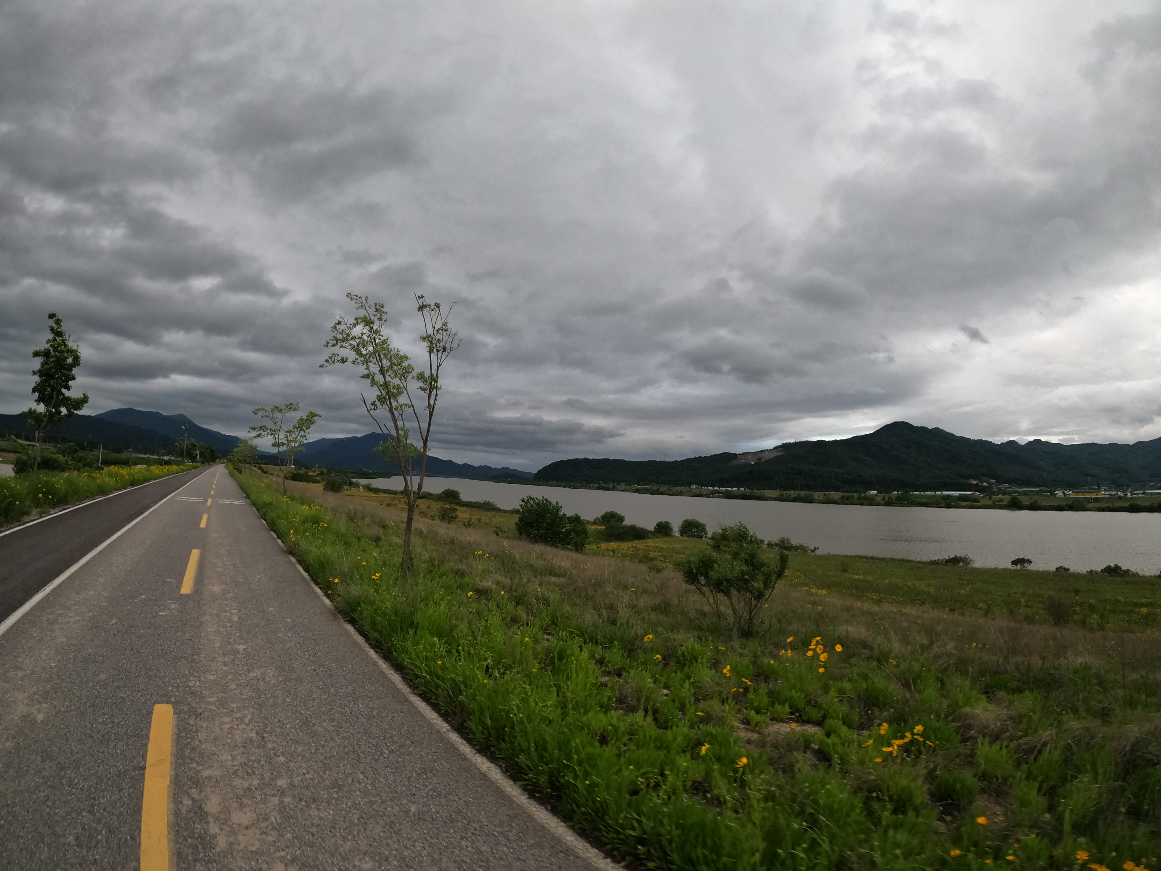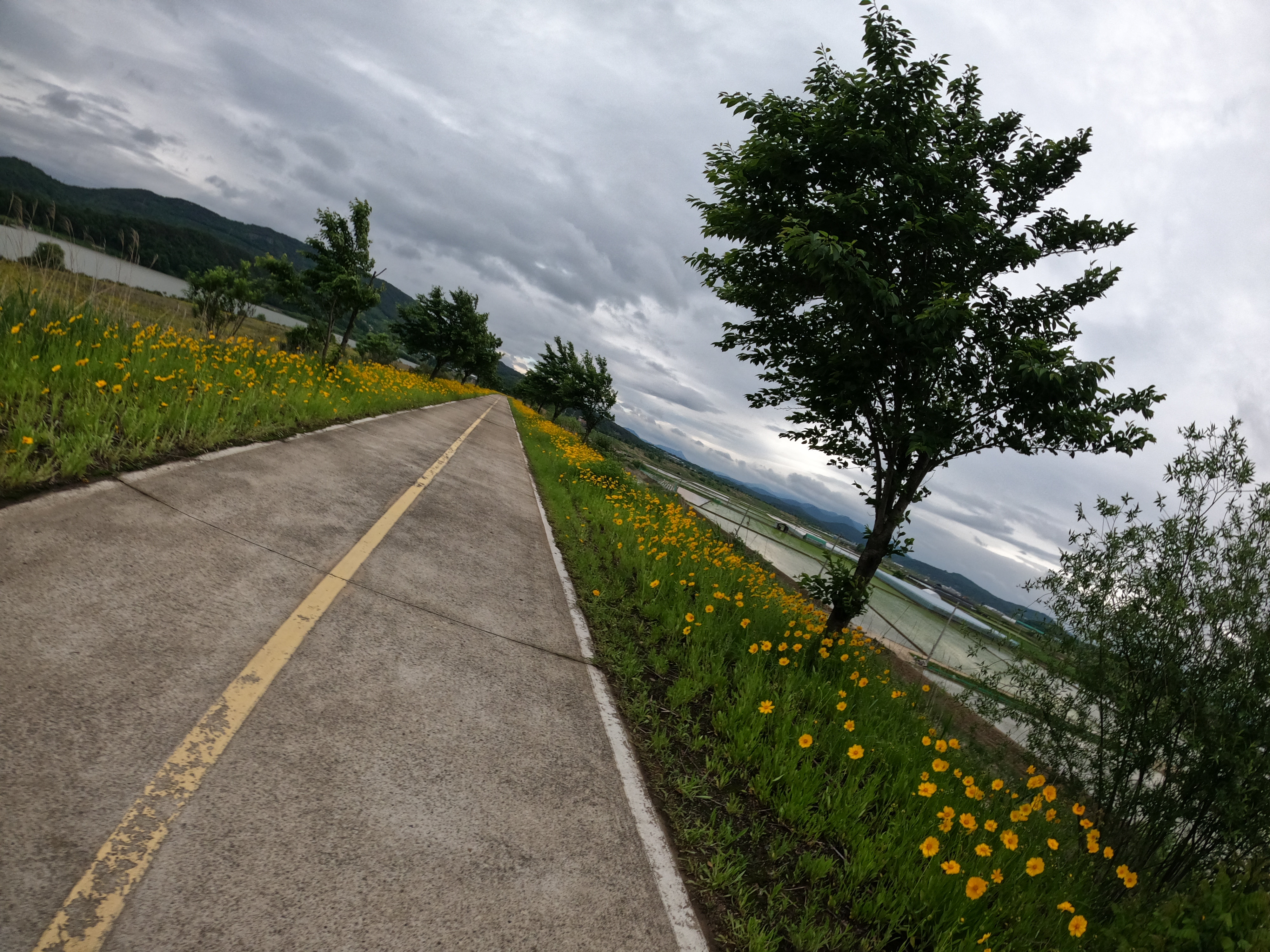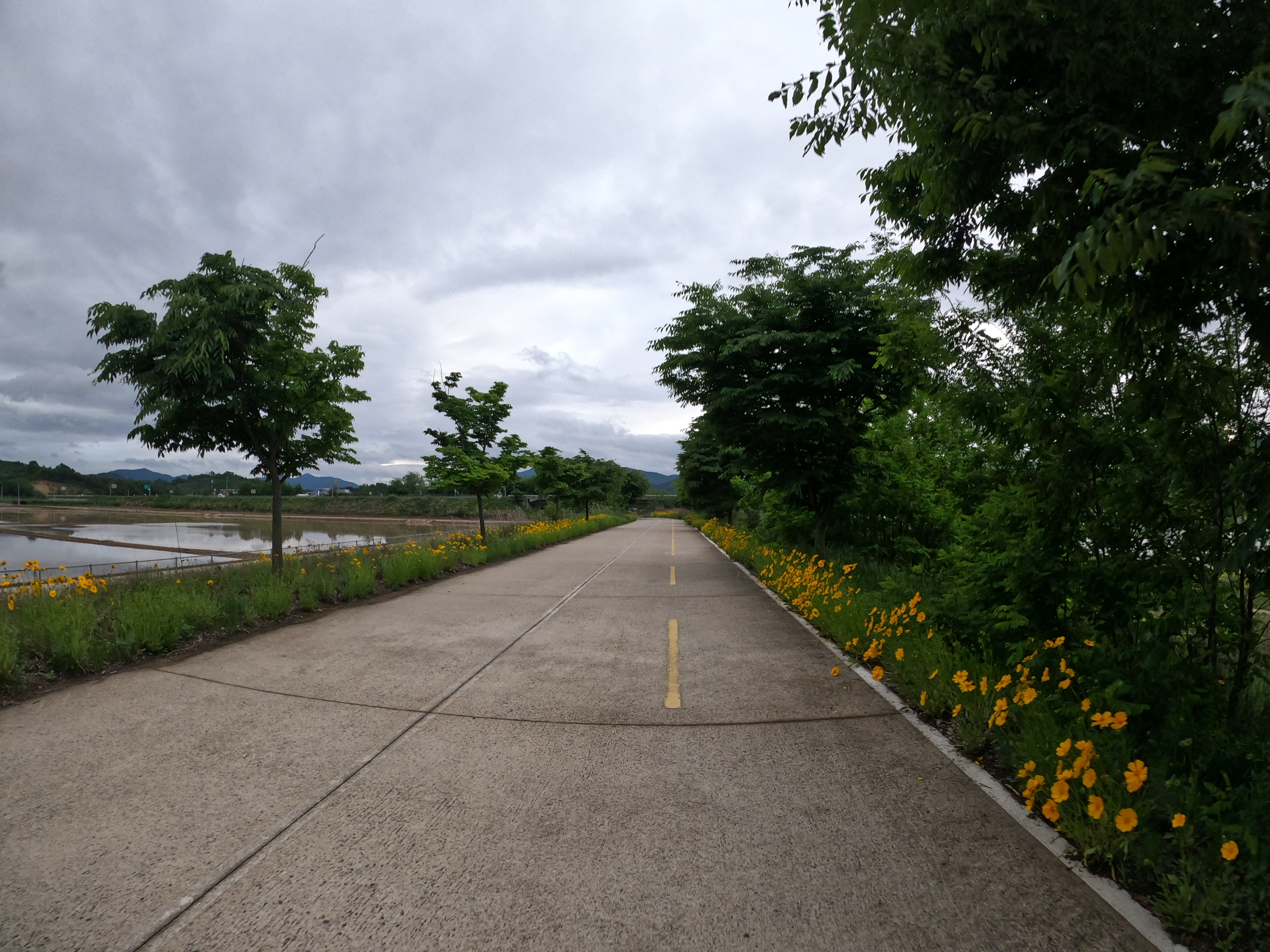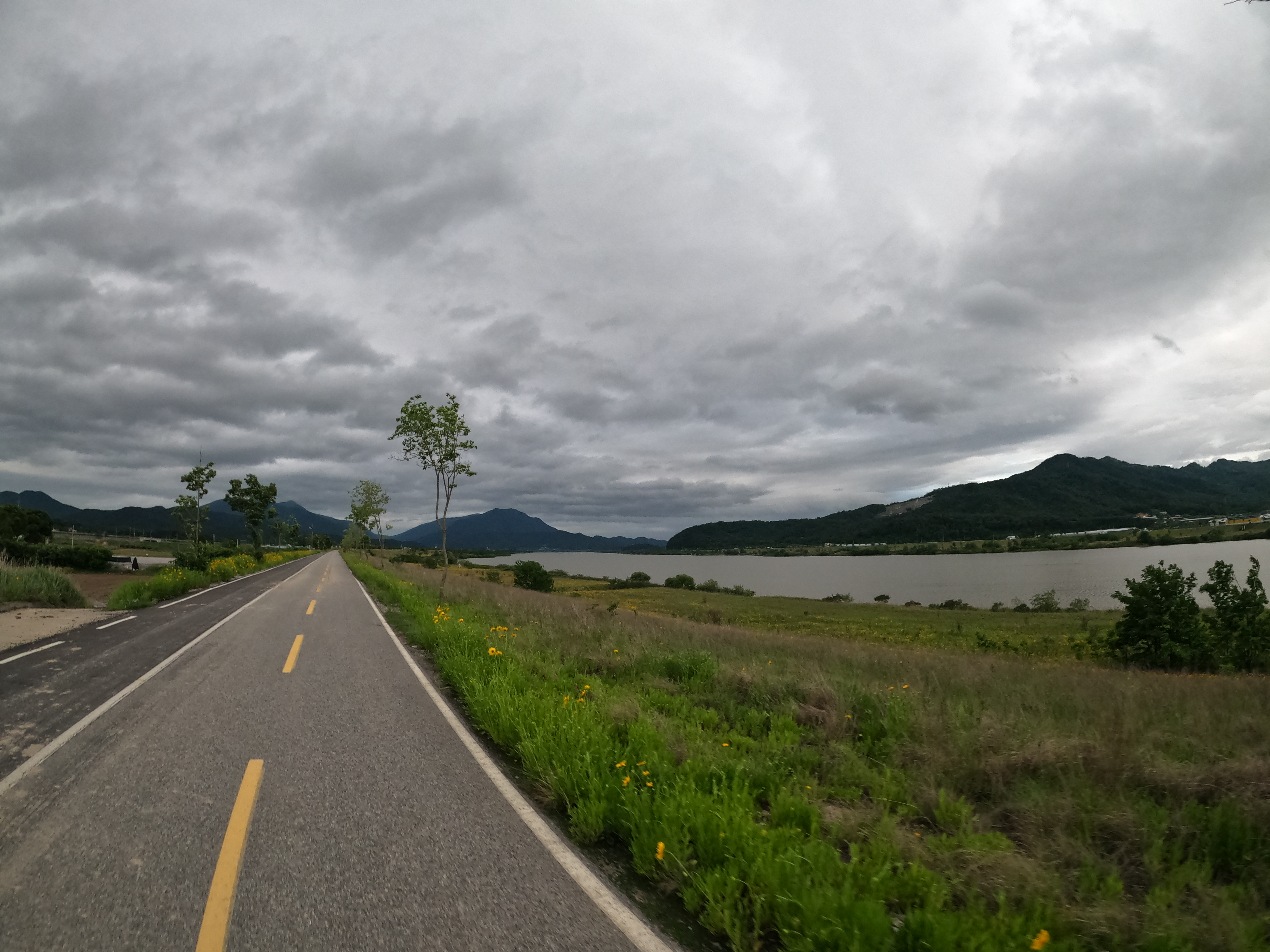 그리고 2021.05.19 기준 삼거리 슈퍼를 지나면 어느 정도 구간은 도로를 새로 포장해서 차선이 아직 그려져 있지 않았다. 차량에 주의해서 달리도록 하자. 여기서 공사하시던 분들도 참 감사한 게 내가 지나갈 동안은 잠시동안 공사를 멈춰주시고 내가 지나가니까 다시 공사를 시작하셨다. 감사합니다. 꾸벅.