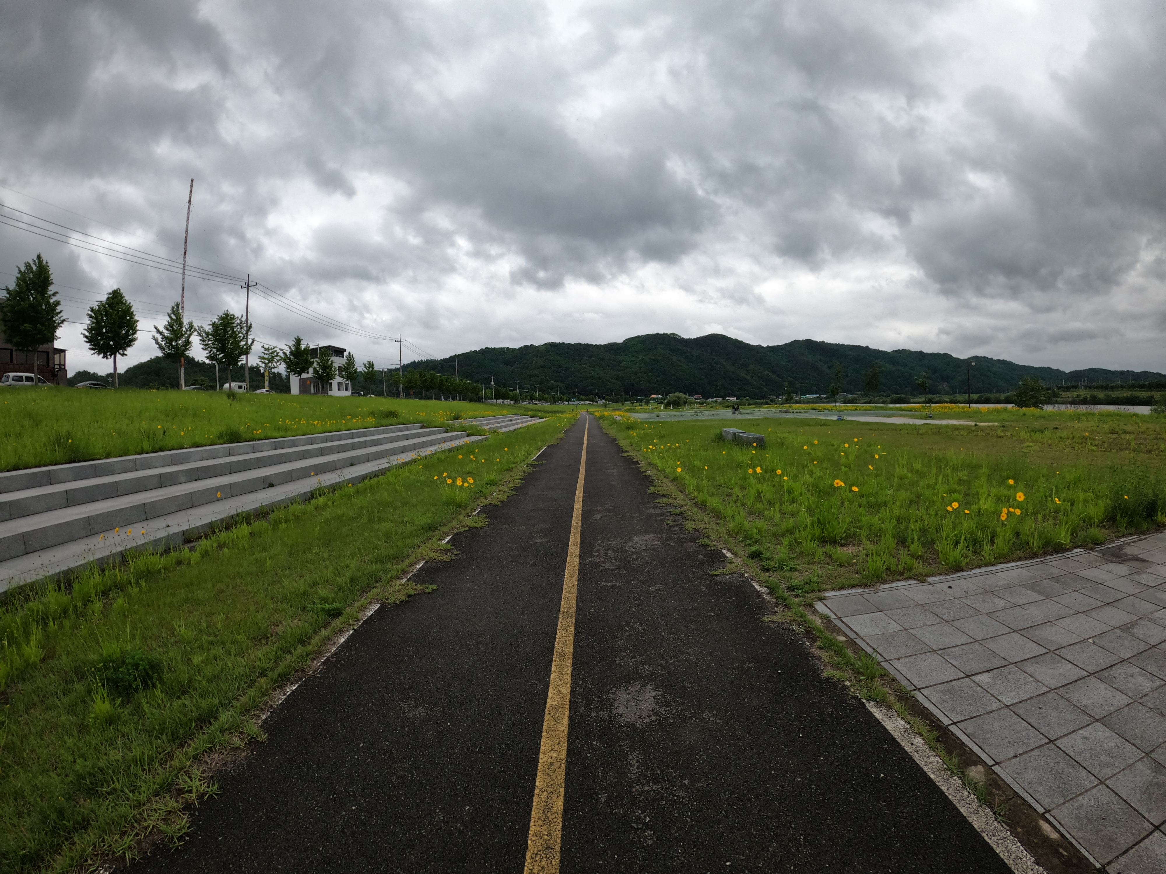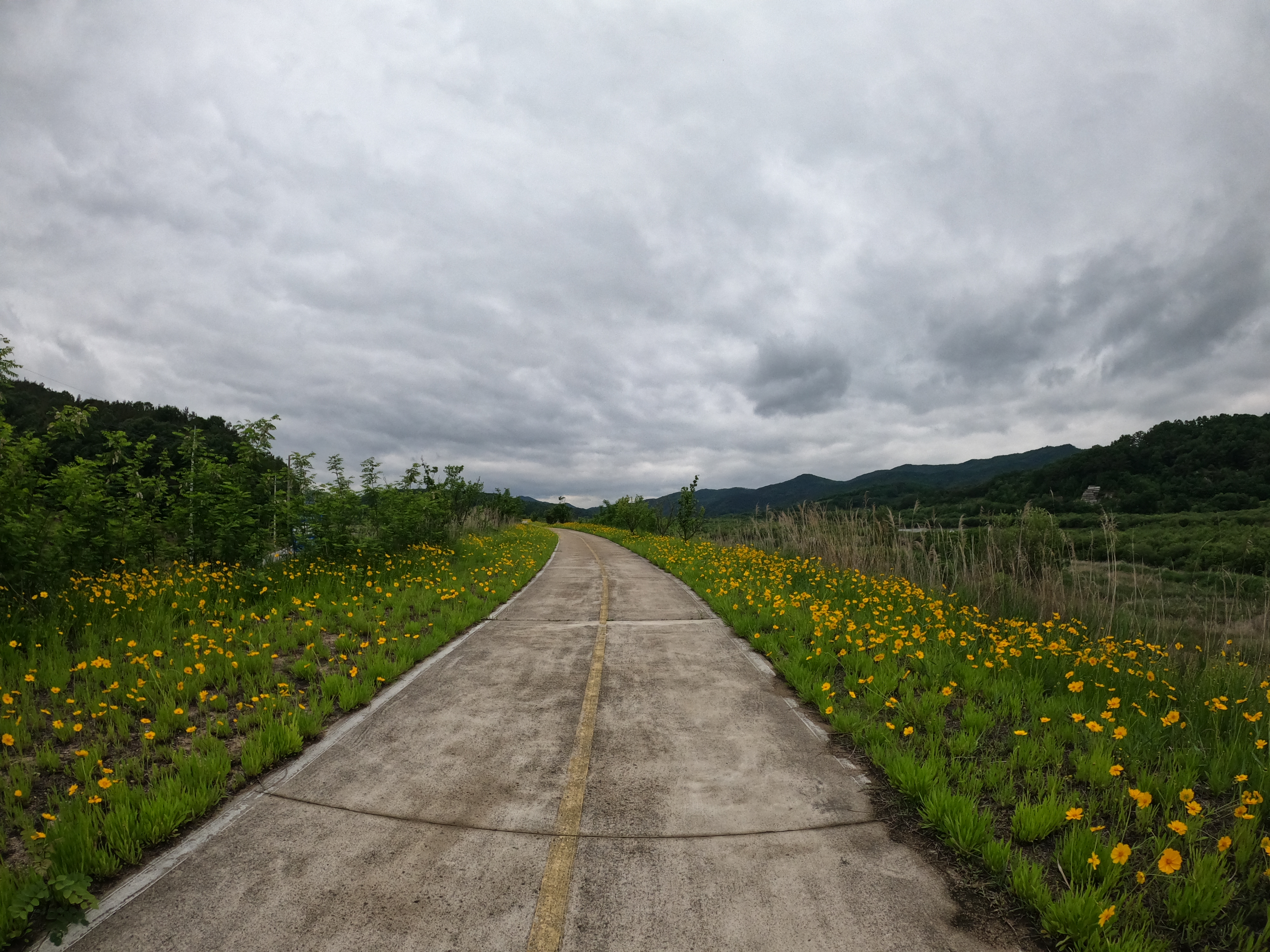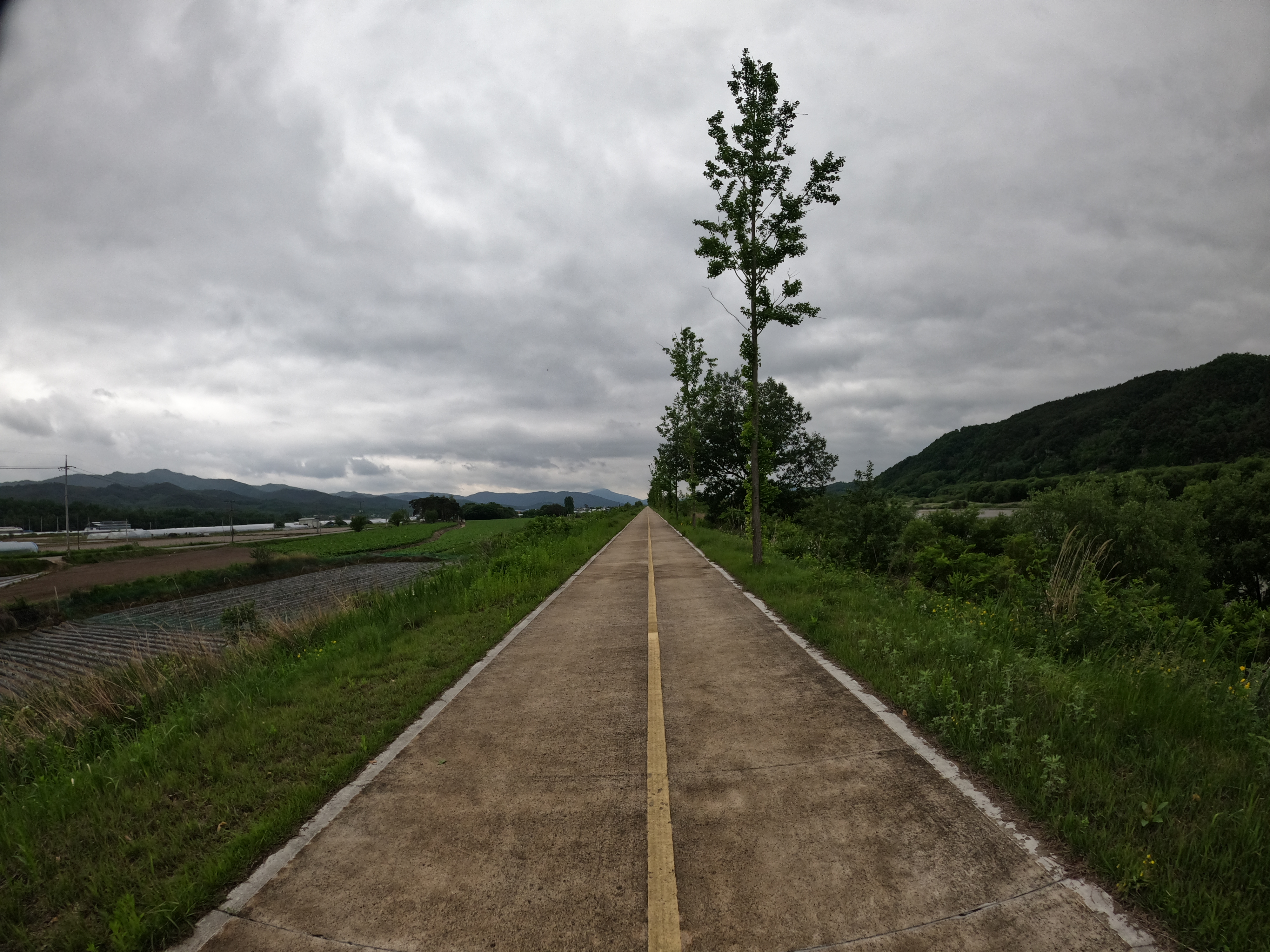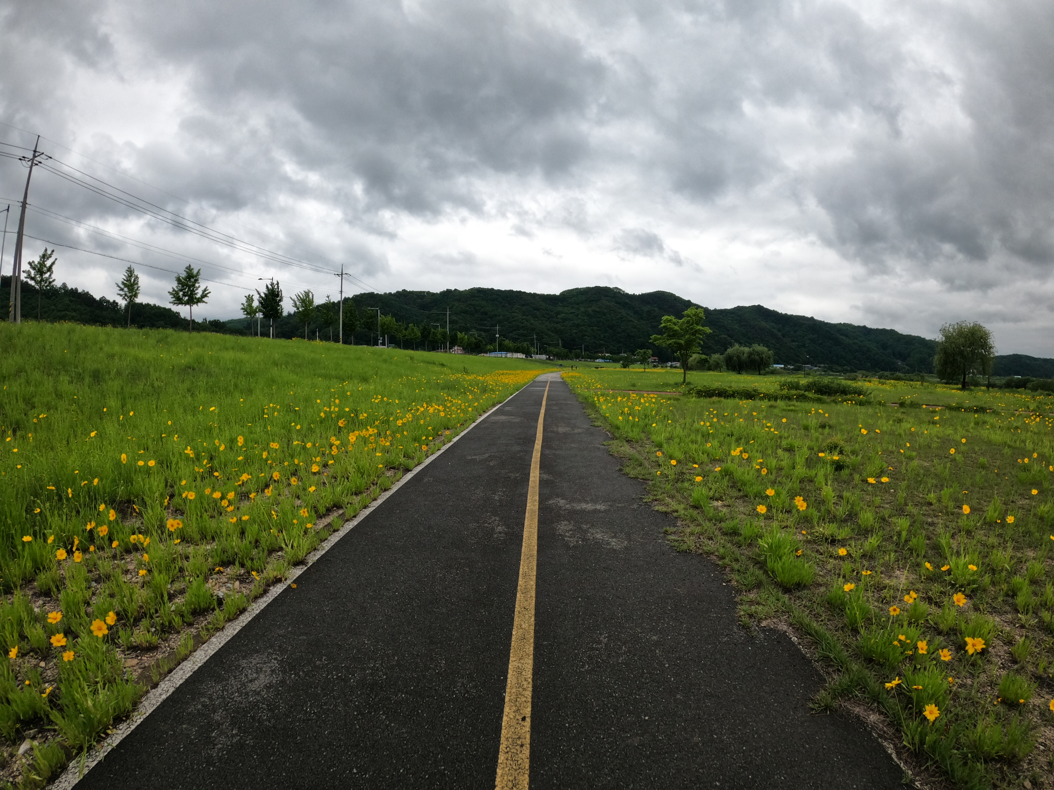 그리고 2021.05.19 기준 삼거리 슈퍼를 지나면 어느 정도 구간은 도로를 새로 포장해서 차선이 아직 그려져 있지 않았다. 차량에 주의해서 달리도록 하자. 여기서 공사하시던 분들도 참 감사한 게 내가 지나갈 동안은 잠시동안 공사를 멈춰주시고 내가 지나가니까 다시 공사를 시작하셨다. 감사합니다. 꾸벅.