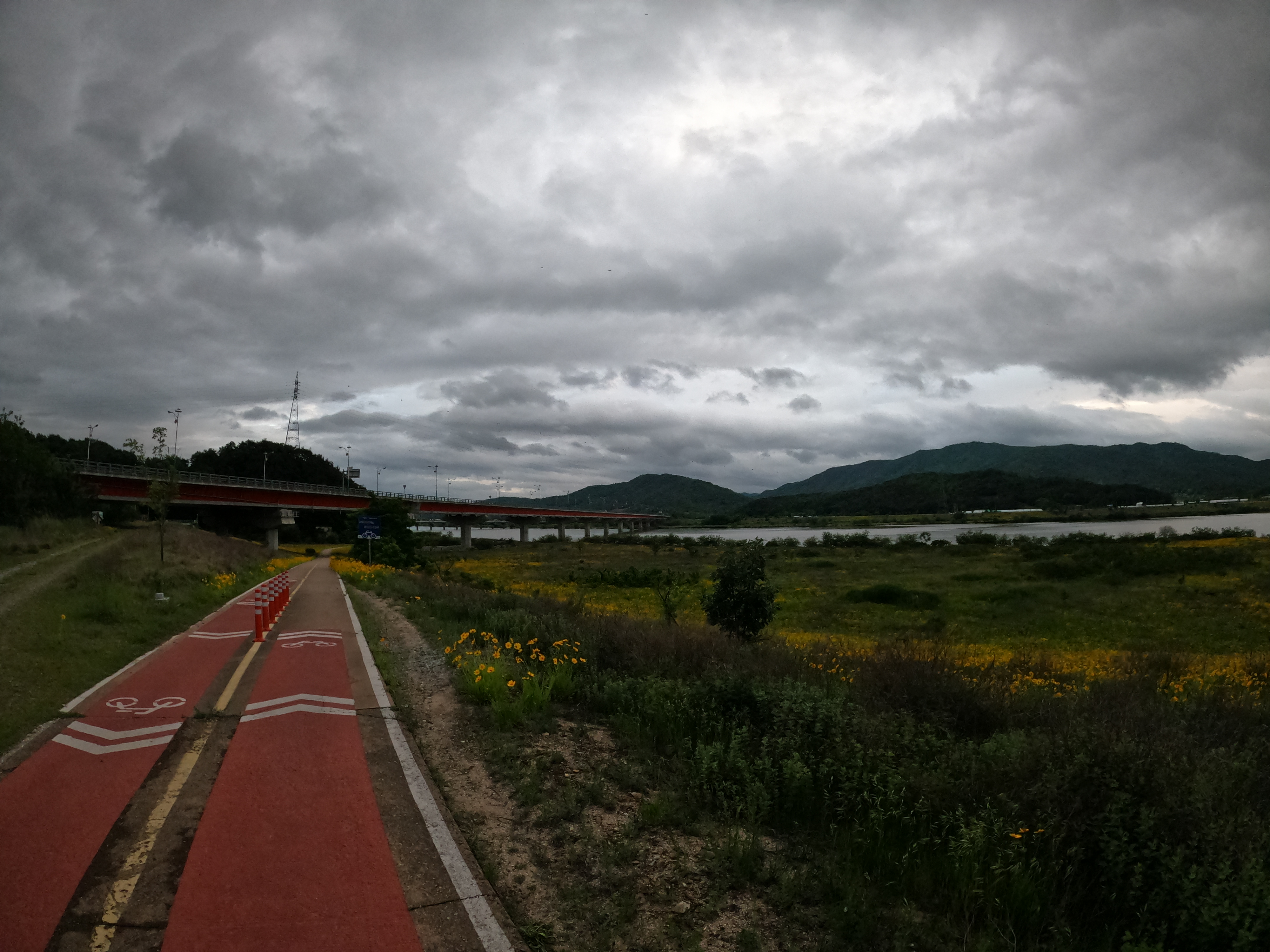 이 상황에 만약 역풍이라도 불었다면 진짜 밤 늦게 개고생 할 뻔 했는데 다행히 바람도 도와줘서 지루할 틈도 없이 슝슝 밟아서 정말 놀라울 정도로 아무런 이슈도 없이 구미보 인증센터에 도착할 수 있었다. 밝을 때 도착하고 싶었지만 그것까진 욕심이었던 것 같다.