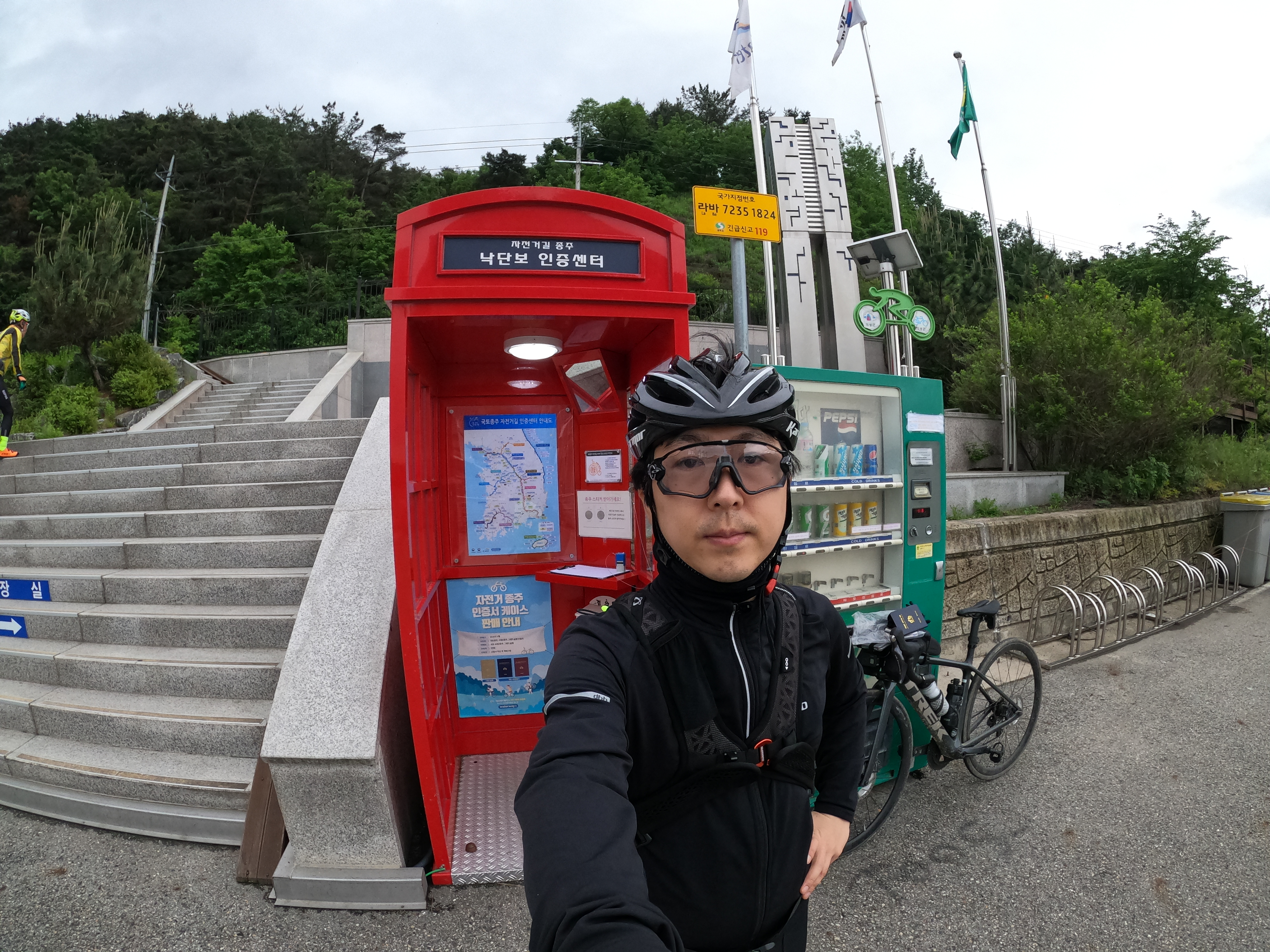 낙단보 인증센터에 도착했다. 여기서 어떤 분이 인증센터 앞에서 계속 기침을 아주 심하게 하고 계셔서 그 분이 떠날 때까지 멀찍이서 기다리느라 10분 정도 소비한 것 같다.