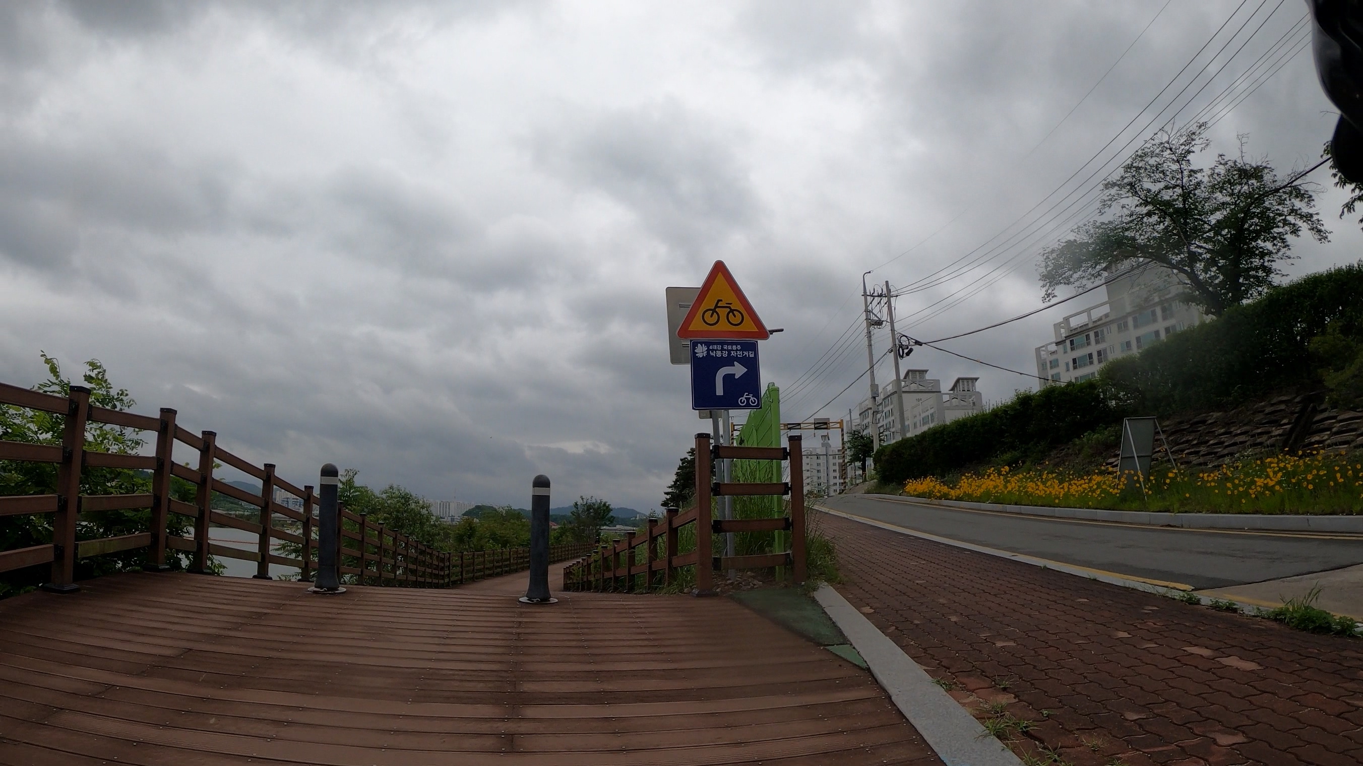 참고로 네이버 지도로 검색하면 다리를 건너서 시내로 약간 돌아가도록 나오는데 숭선대교의 끝까지 가면 낙동강 강변하우스로 내려갈 수 있는 계단이 있어서 이 계단으로 내려가도 된다.