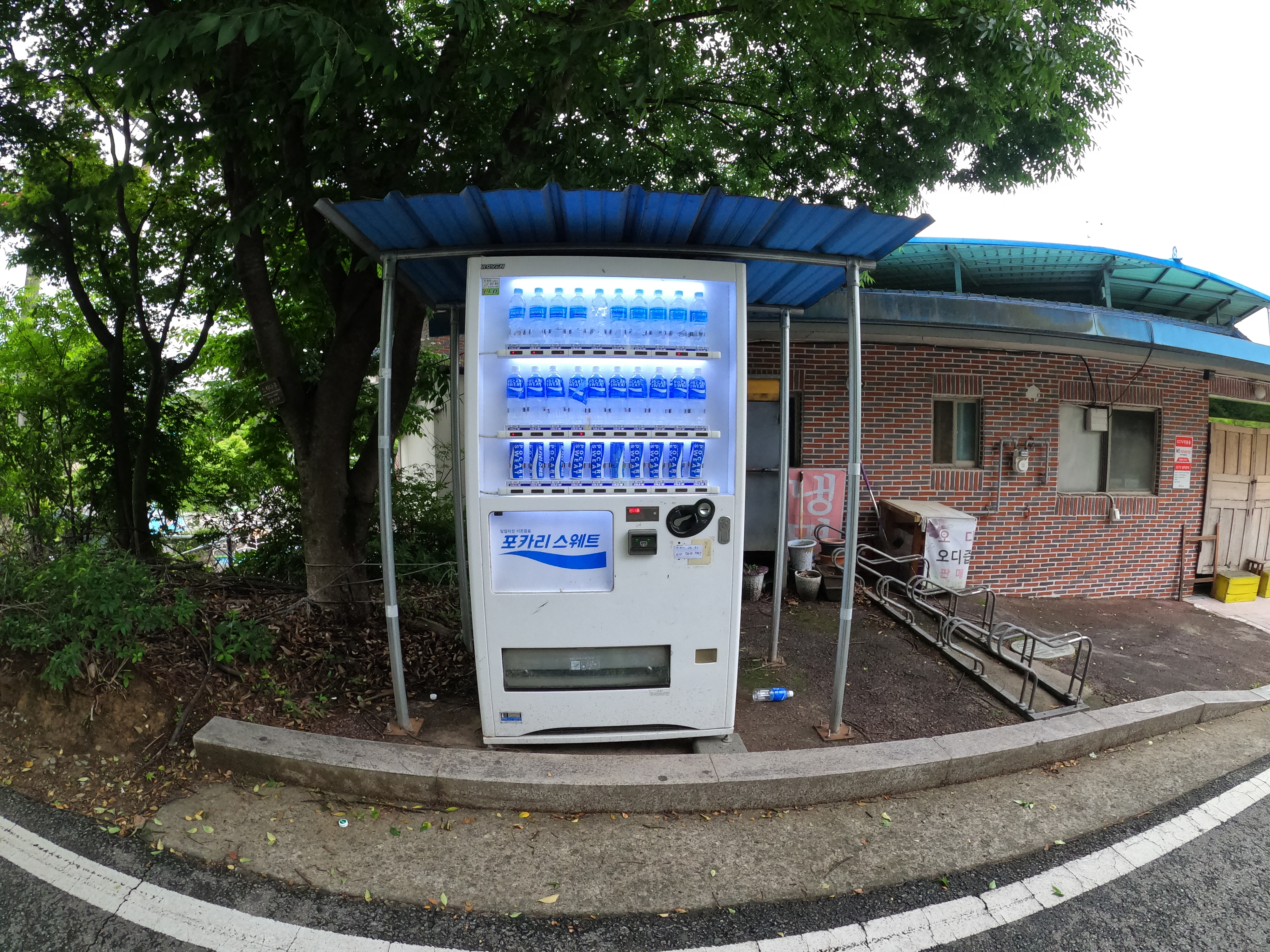 쓰레기 처리장을 넘어서 다운힐이 끝난 지점에서 조금만 더 가면 정자가 있고 옆에는 동네 슈퍼가 있는데 예전에 이 곳에서 시원하게 보급을 했던 기억이 있는데 다시 갔을 때는 문을 열지 않았었다. 코로나 때문인지 그냥 문을 안 연건지는 모르겠다.