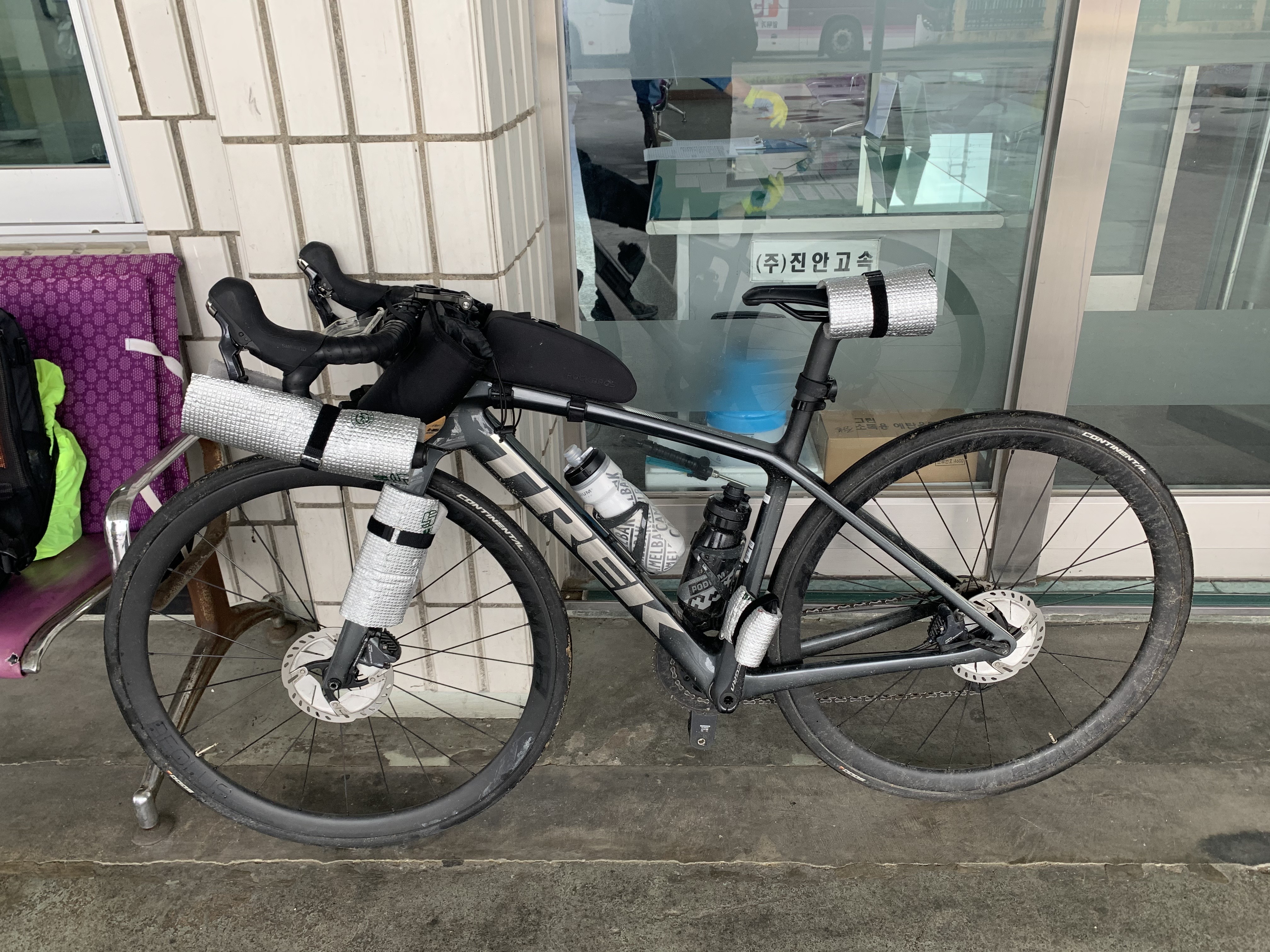 헐, 핫바를 먹고 있을 때가 아니었네. 하고 우걱우걱 입에 밀어넣고 다시 출발. 이 때의 시간이 오후 2시였는데 105km 를 더 달리려면... 그 이후로 보급을 할 시간도 없이 진짜 죽어라 달린 게 이 날 아침 상주상풍교 한옥게스트하우스에서 채워왔던 물이 이 날 밤의 숙소에 도착할 때까지 남아있었다. 물을 마실 시간조차 아까워서 죽어라 페달만 밟았지. ㅠㅠ