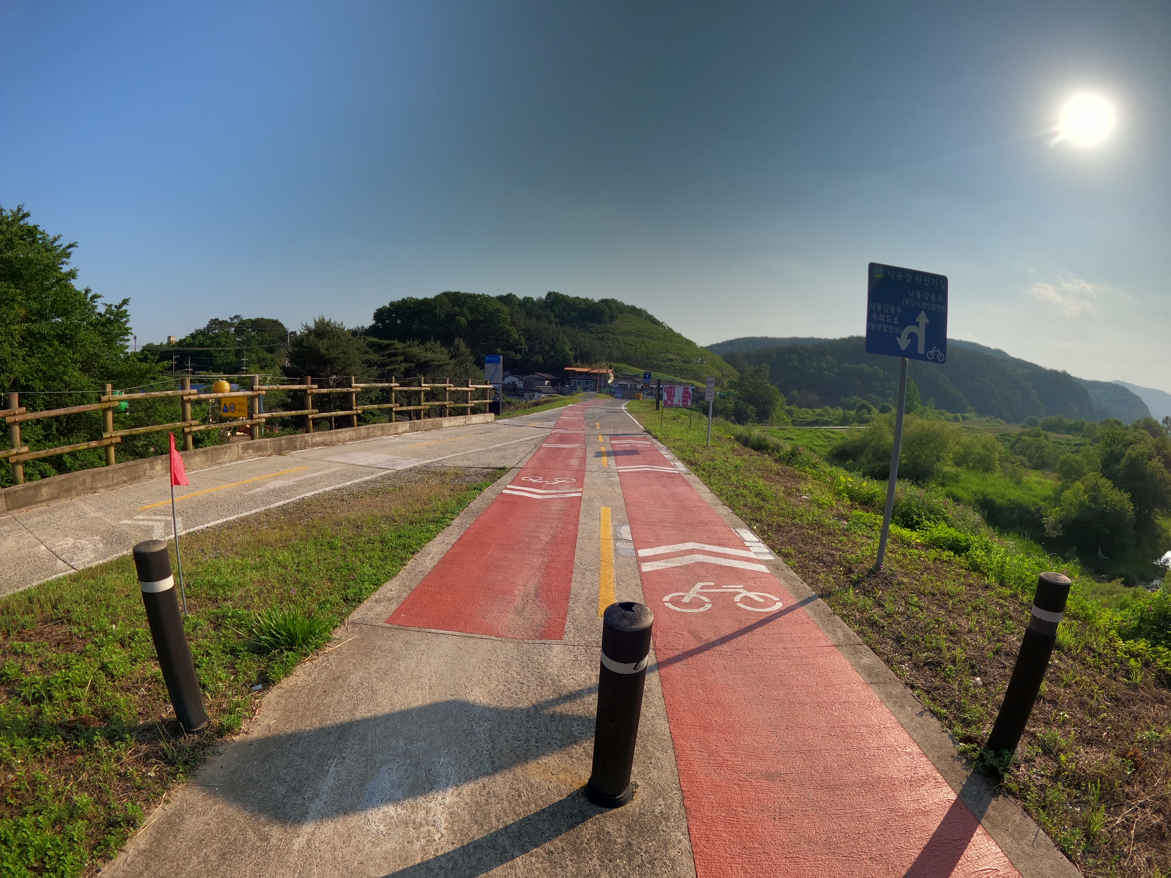 합천창녕보 인증센터부터 남지읍까지는 중간까지 평지로만 되어 있다가 후반부에 약한 오르막이 좀 길게 이어진다. 이게 은근히 힘이 빠지는데 2021.05.19 현재 자전거 도로의 보수 공사가 진행 중이므로 조심해서 다녀야 한다. 차량 통행이 매우 적으니 공도를 이용해서 달리는 것도 추천한다.