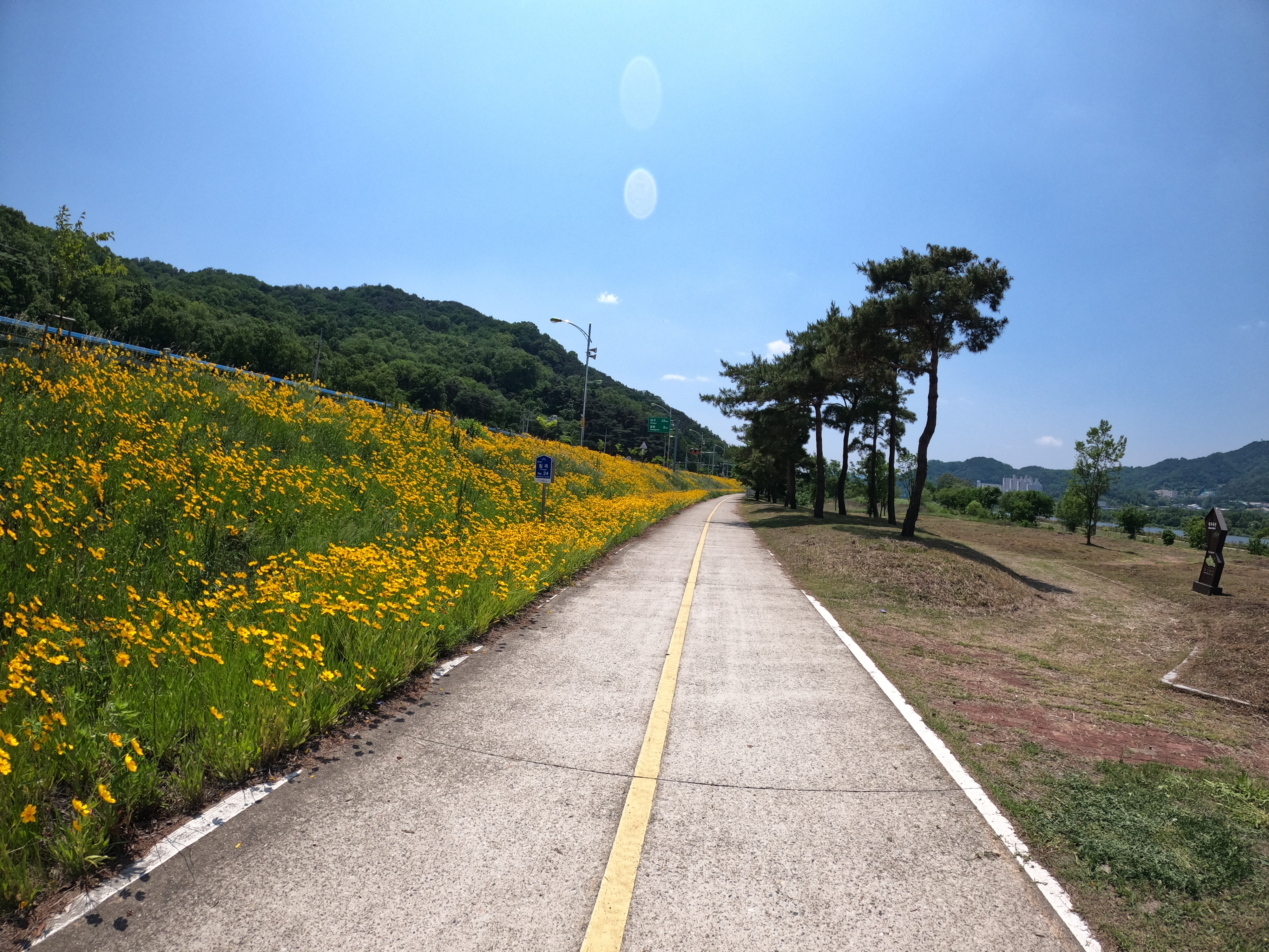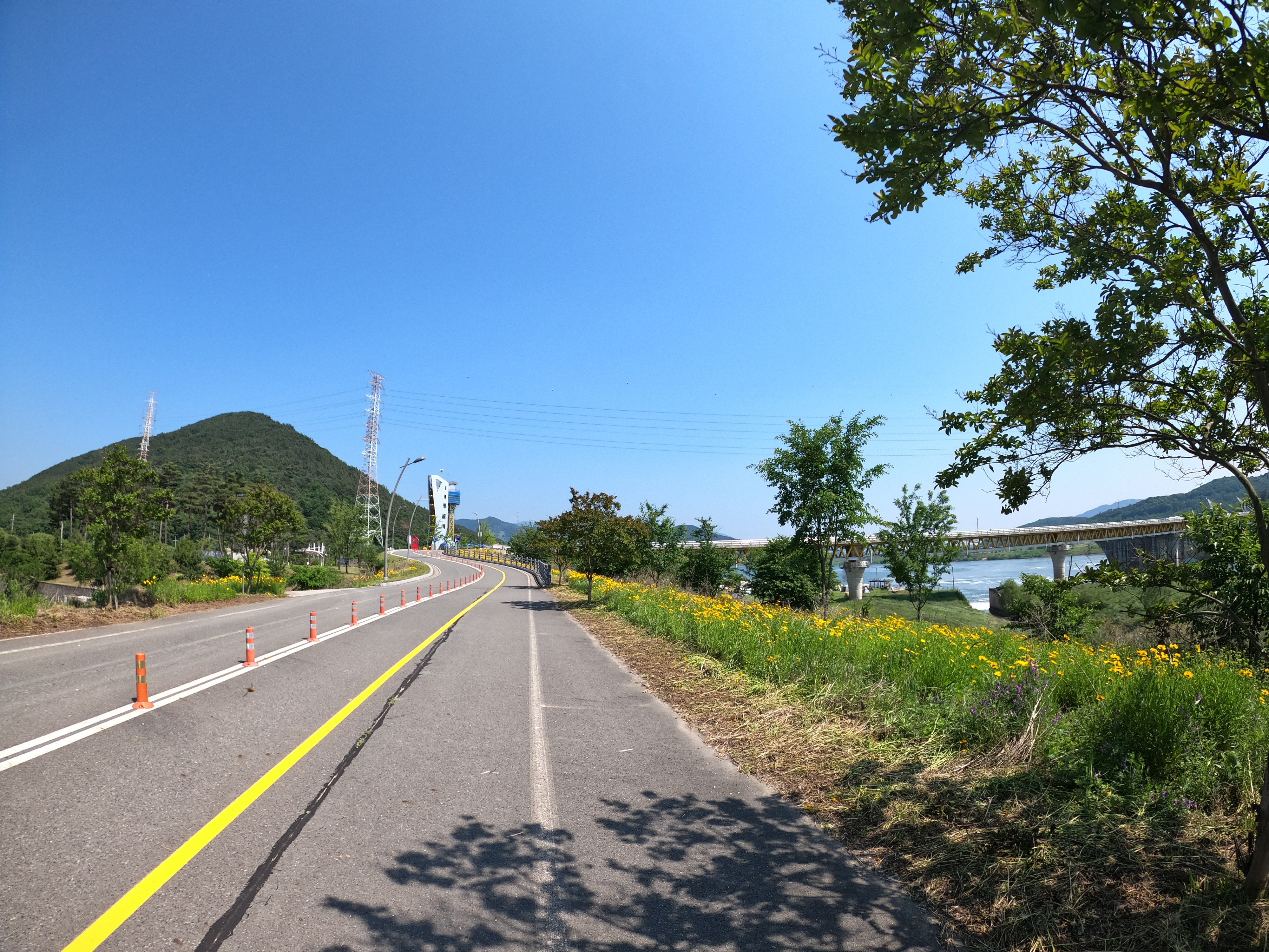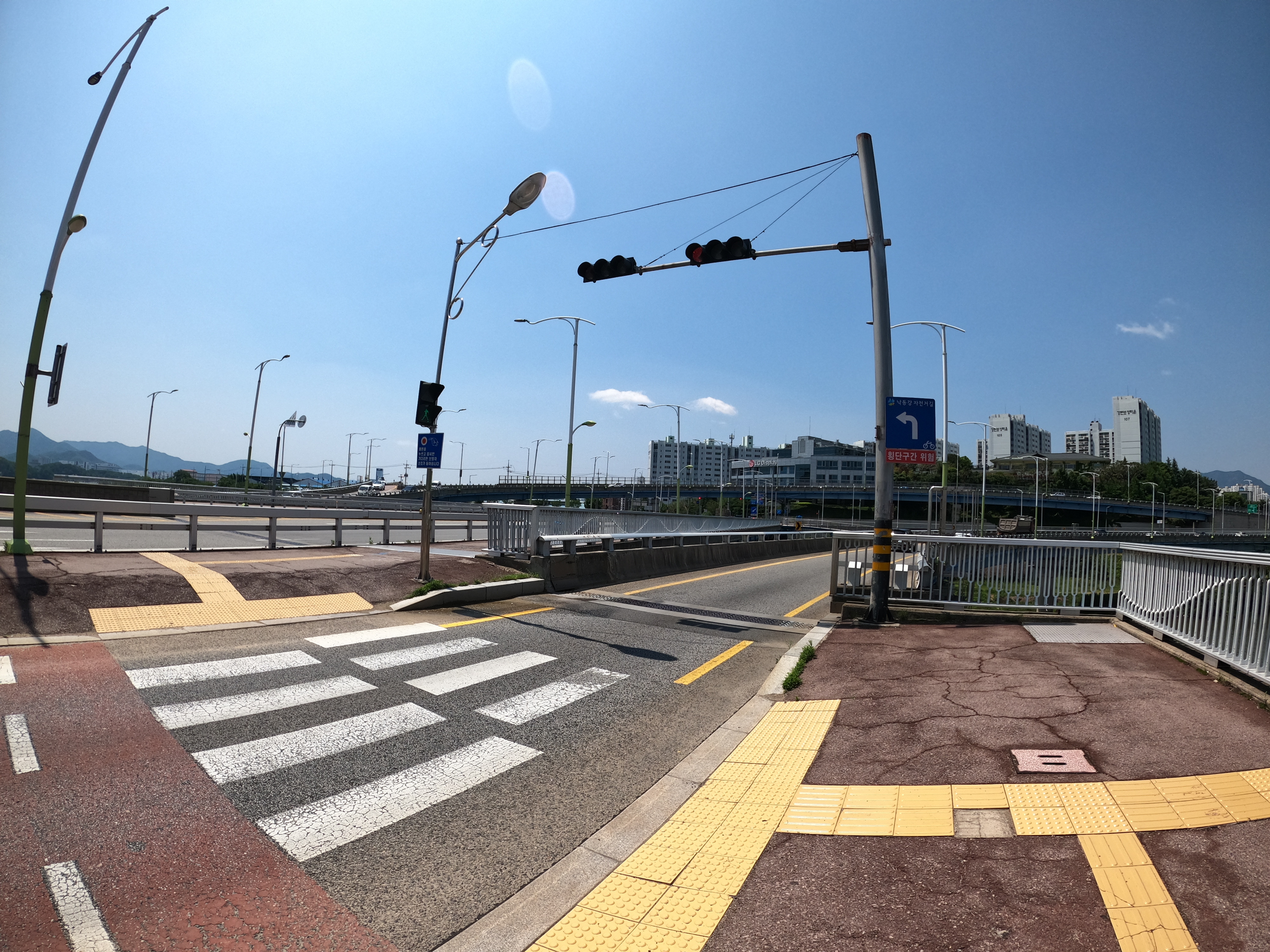 내가 갔을 때는 하필이면 내가 가기 전 날부터 도로 무슨 공사를 해서 또 하필이면 내가 다녀온 다음 날 공사가 종료된 모양이었다. 강정고령보 인증센터를 바로 눈 앞에 두고 거의 30분 이상을 우회 했는데 시내를 통과한 데다가 차량도 많고 오르막이라 괜히 체력만 소모하게 되서 사실 이 때 기분이 좀 별로였다.
