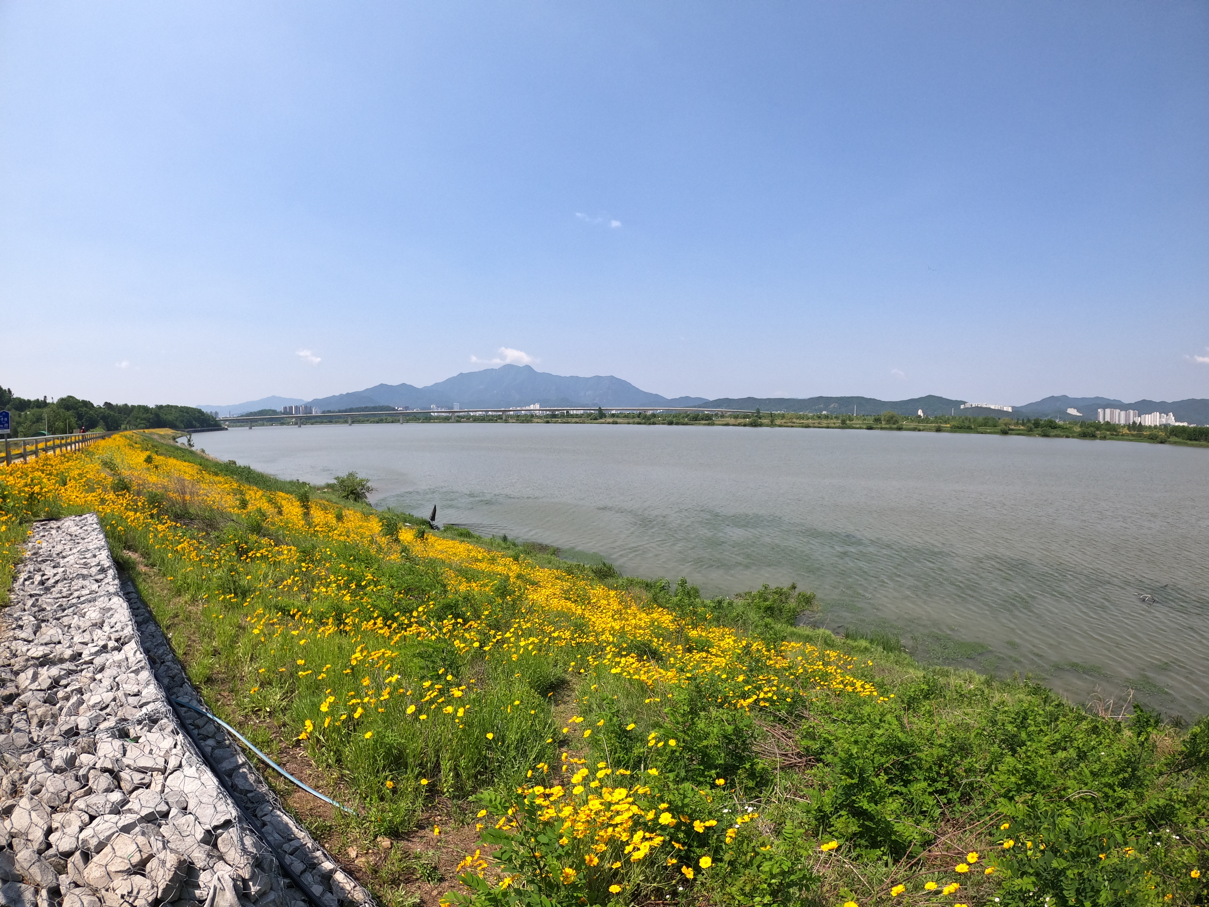 여기까지 오면서도 유채꽃이 많이 피어있었지만 구미 시내로 가는 길목에는 정말 많은 유채꽃이 피어있었다. 낙동강 종주를 진행하다보면 더 많이 피어있는 곳도 있기는 하지만 서둘러야 된다는 사실조차 잊고 카메라 셔터를 누르게 만드는 장관이었다. 나에게 시간이 좀 더 있었다면 좀 더 많은 사진을 찍고 싶었는데 안타까울 따름이다.