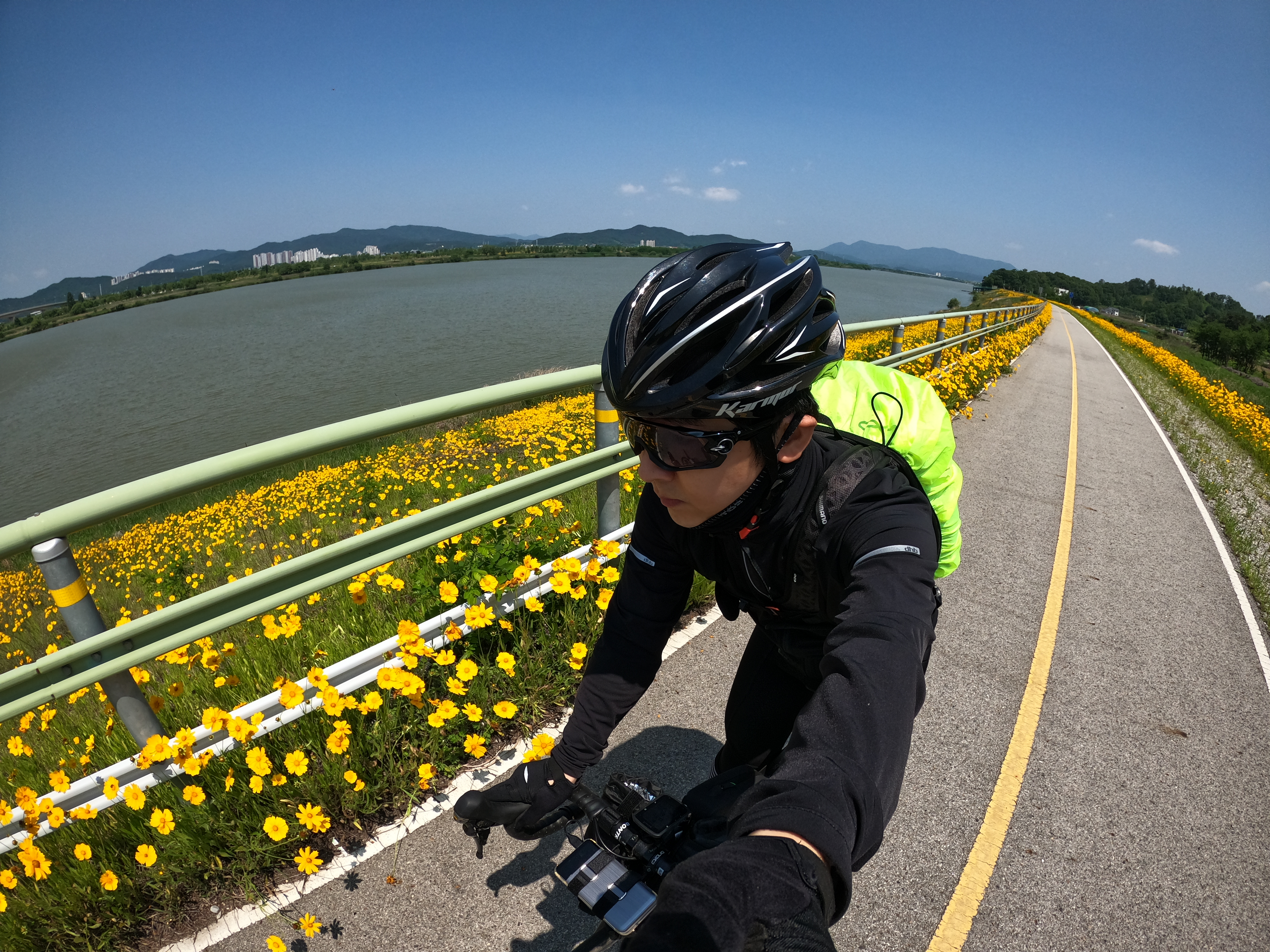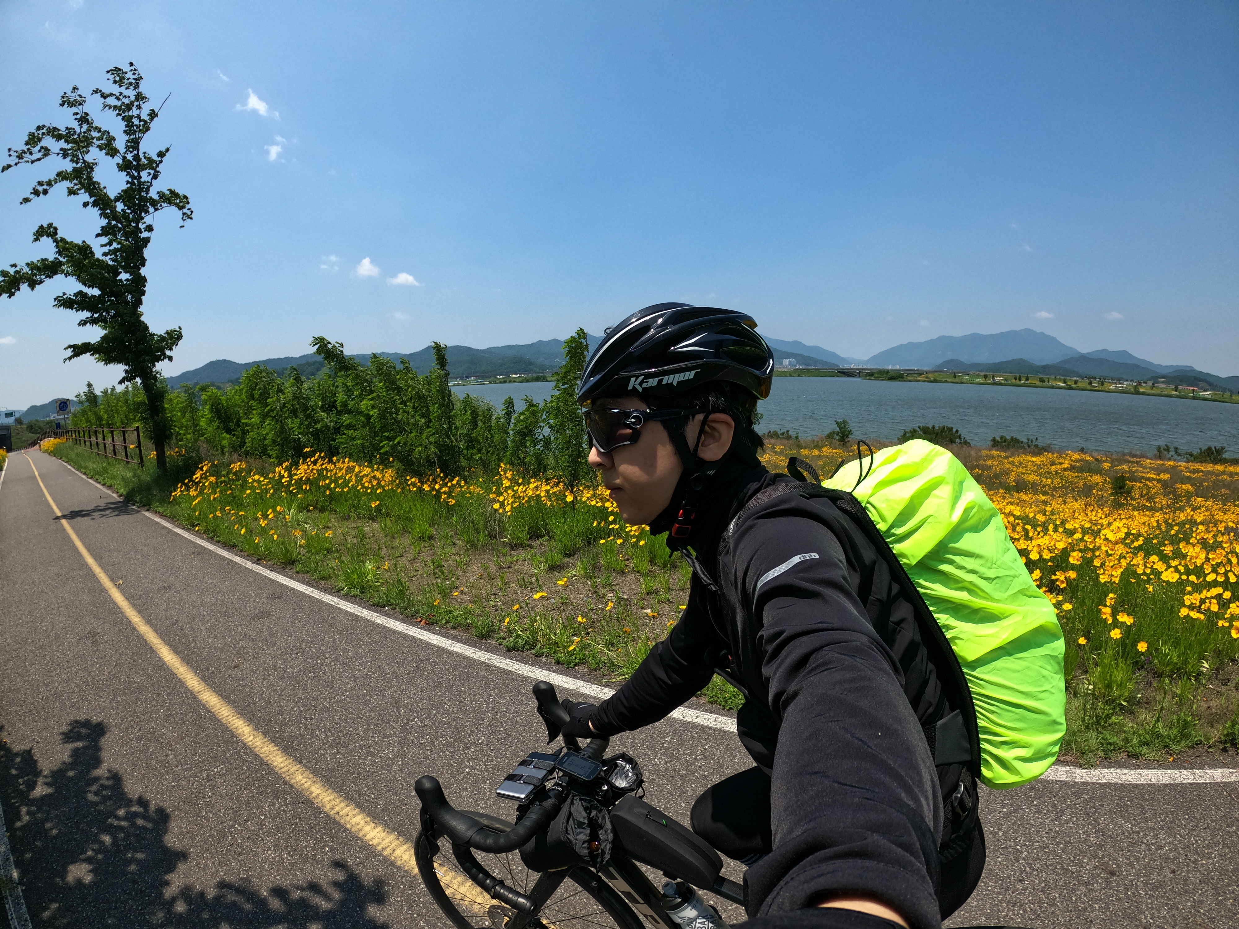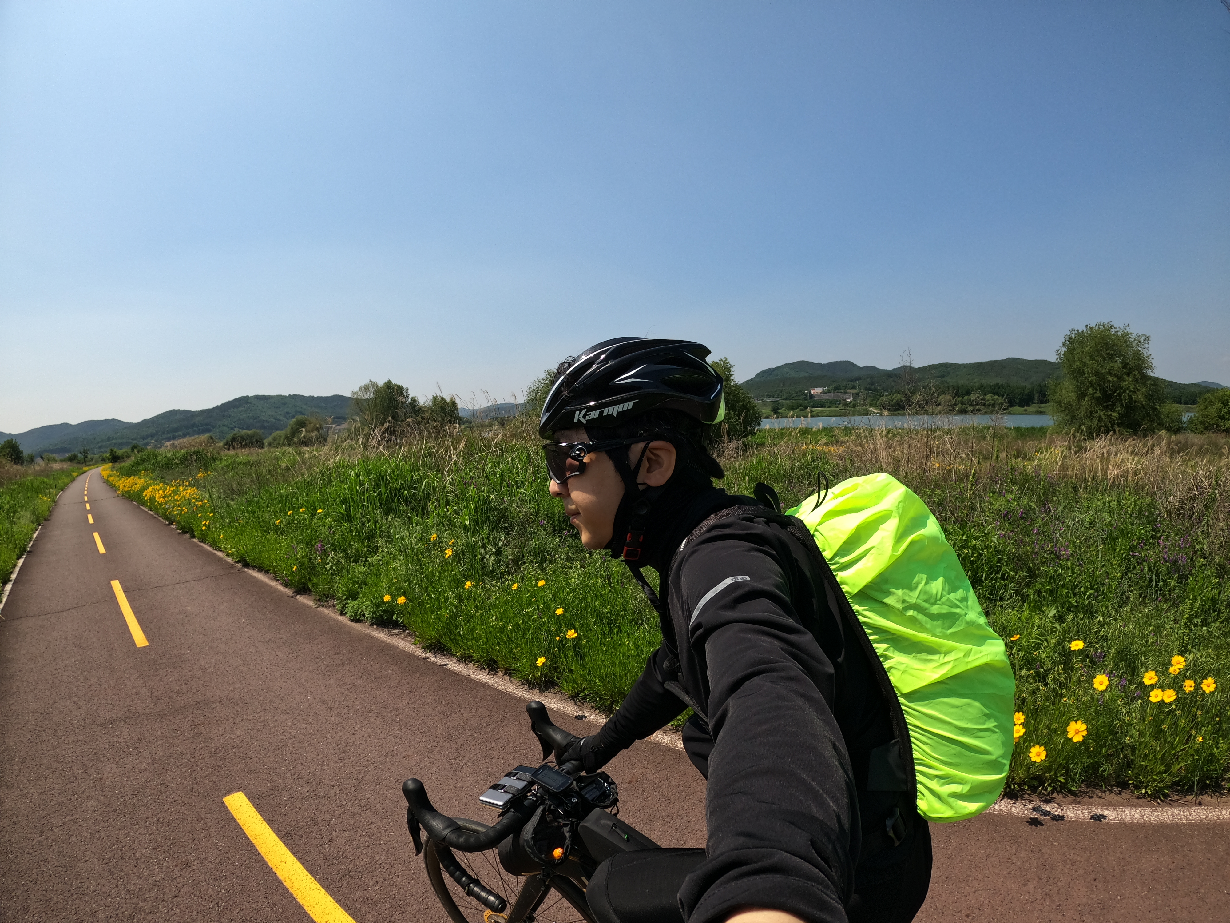 최악의 기억이 된 강정고령보 인증센터를 뒤로 하고 달성보 인증센터를 향해 달리는데 누군가가 자꾸 뒤에 붙는 것이 느껴져 뒤를 돌아봤더니 강정고령보 인증센터로 가는 길을 물었던 분이었다. 일행이 뿔뿔이 흩어져 혼자 달리고 있다고 하셔서 달성보 인증센터까지는 끌어드릴테니 따라오라고 하고 열심히 페달을 밟았다.