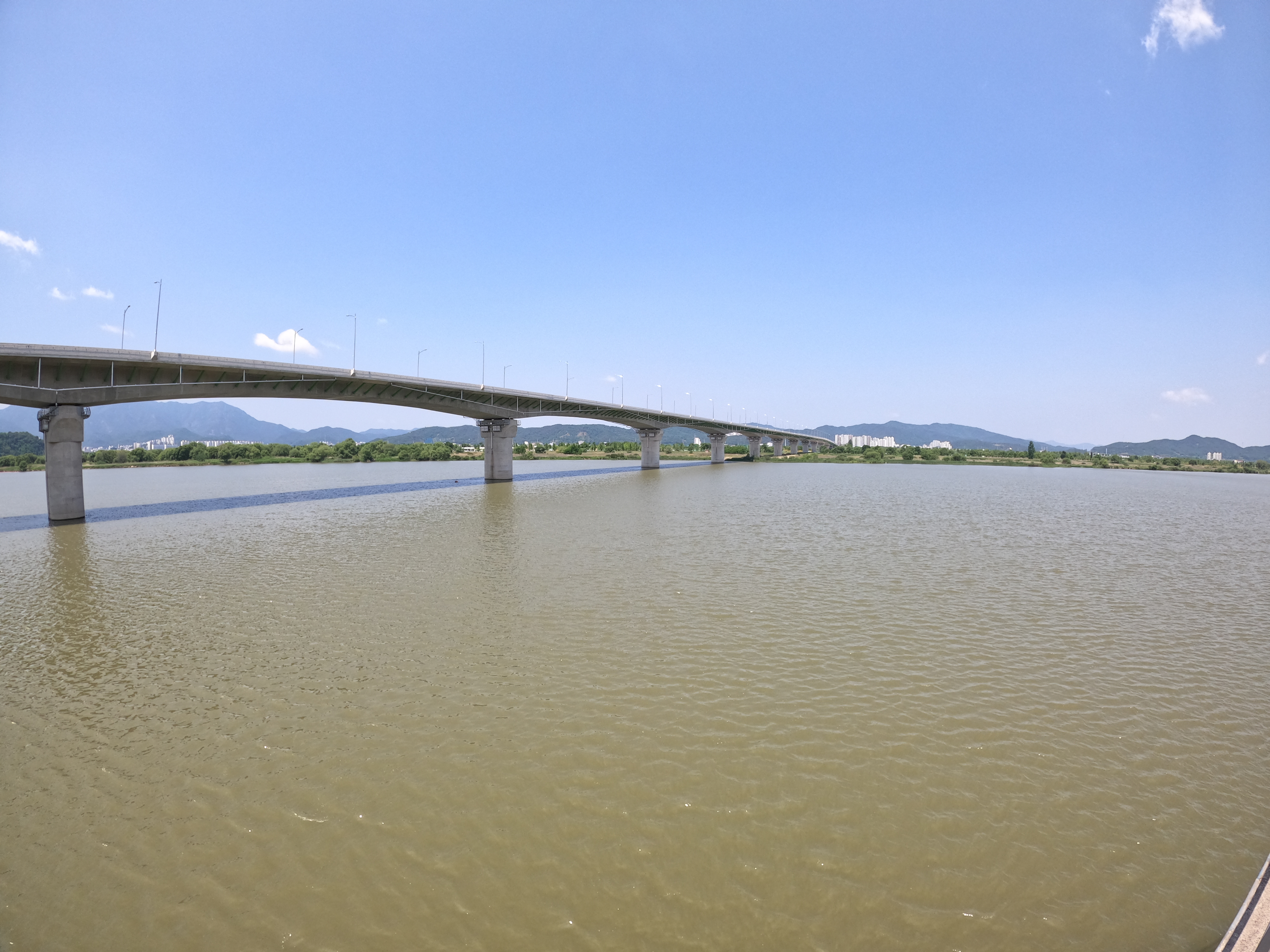 아침 일찍 일어나서 전 날 먹으려고 샀던 빵으로 대충 끼니를 때우고 칠곡보 인증센터를 향해 출발했다. 다시 숭선대교를 건너 자전거 도로로 진입했는데 이 날이 토요일이라서 그런가? 전 날까지는 사람을 하나도 볼 수 없었는데 이른 시간부터 많은 사람들이 라이딩을 즐기고 있었다.