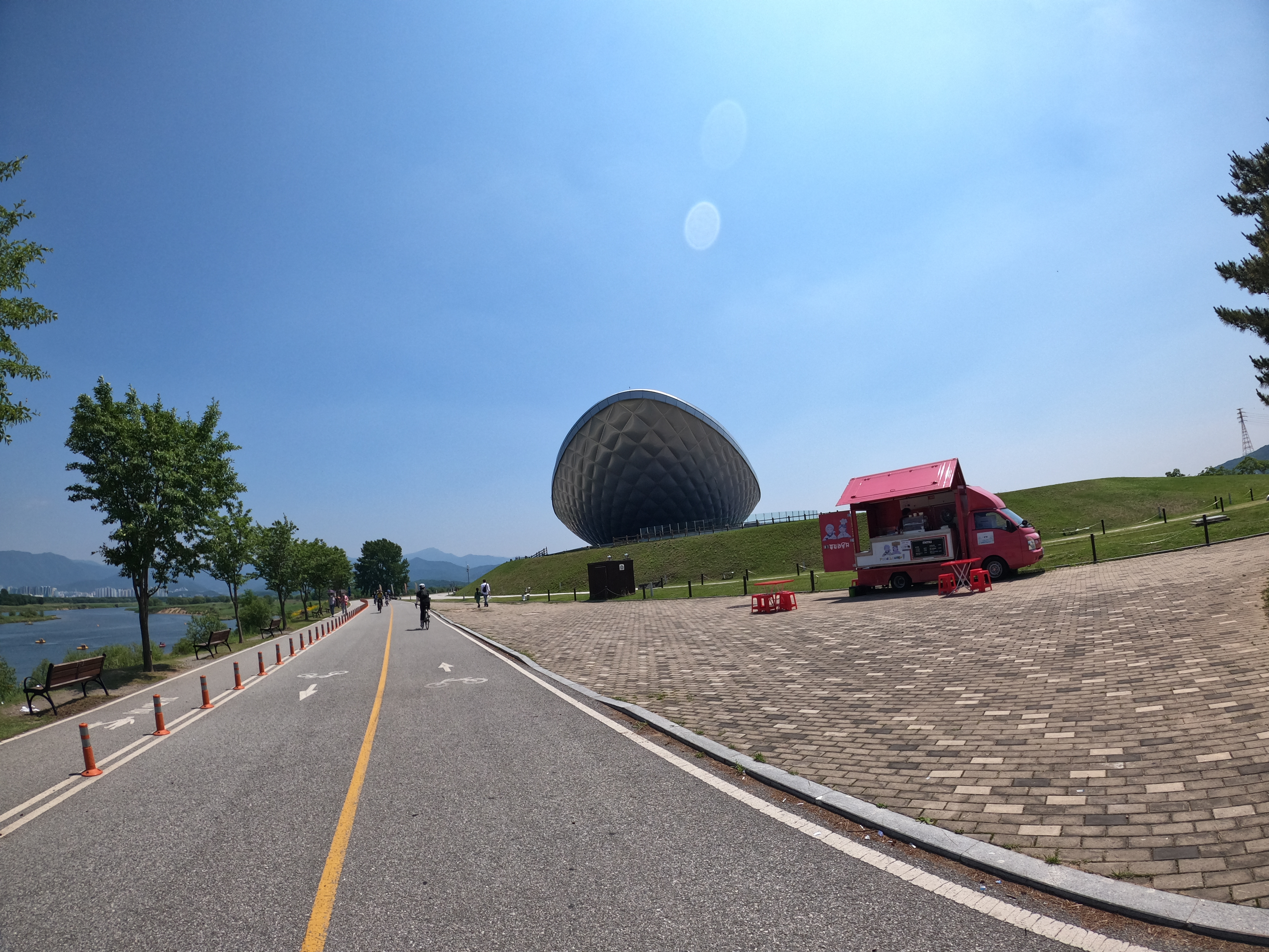 자전거 도로를 달리는 자전거보다 온갖 퍼스널 모빌리티가 더 많았는데 이거 피하다가 고프로도 떨어뜨리고... 6년 전 최고의 기억으로 남았던 강정고령보 인증센터가 이번에는 최악의 기억으로 남게 되었다. 일정대로라면 강정고령보 인증센터 근처에서 점심을 먹을 예정이었으나 사람이 너무 많은 관계로 바로 출발하기로 했다. 라이더가 많은 게 아니고 놀러나온 인파가 정말 어마무시 할 정도로 많았다.