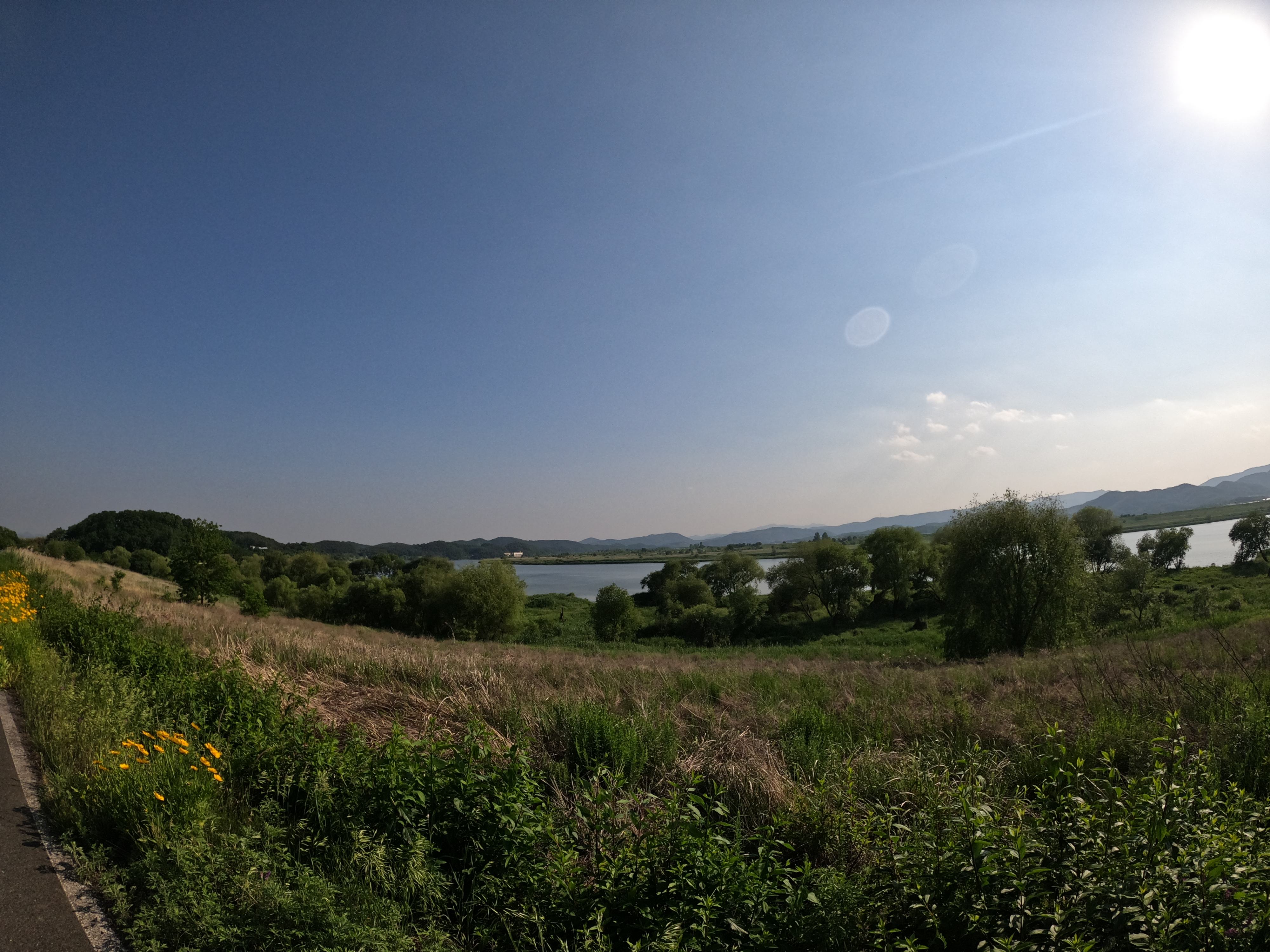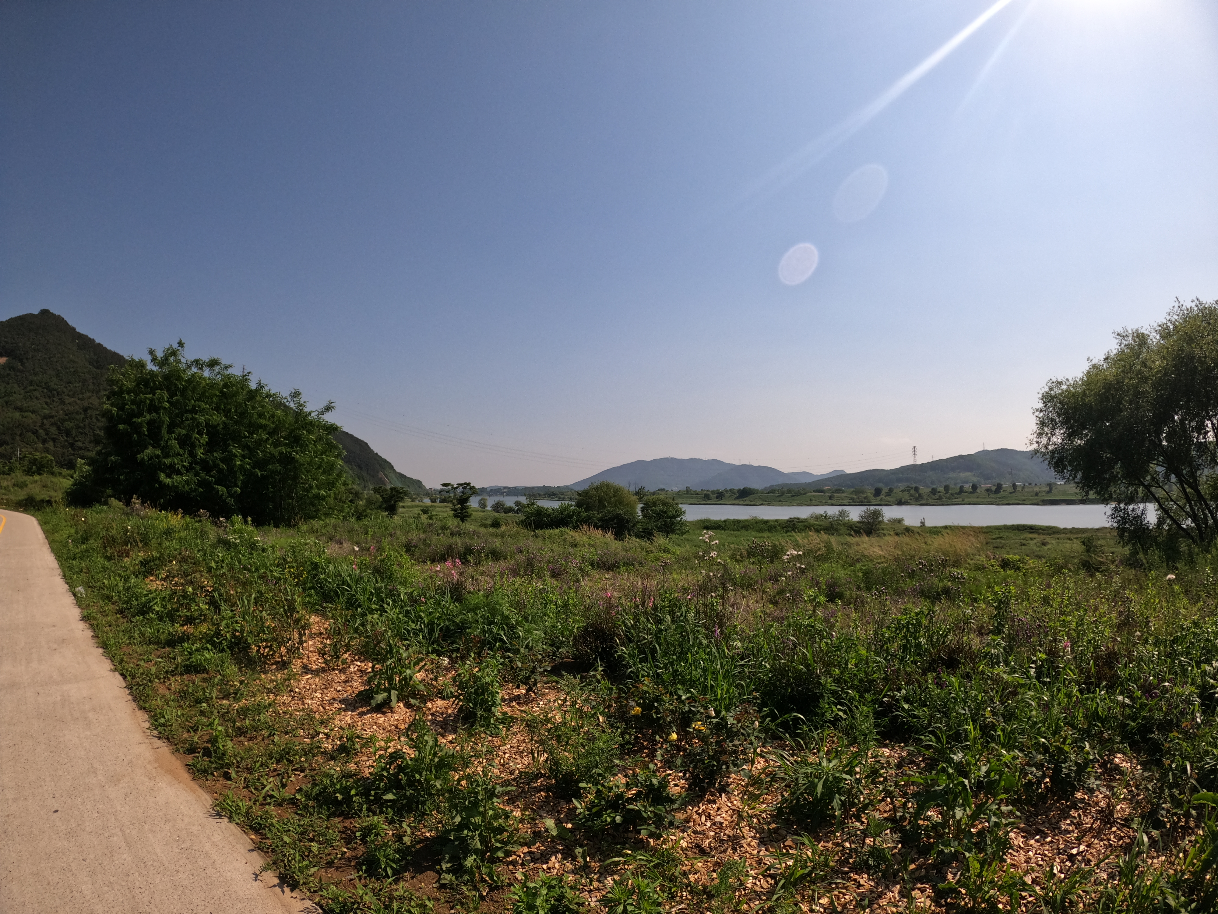 합천창녕보 인증센터 방향으로 출발해 얼마 가지 않아서 보면 길 건너편에 시내가 보이는데 이 곳이 현풍리인가 하는 곳이고 여기를 지나면 합천창녕보 인증센터까지는 자전거 도로에 근접한 보급처가 없으므로 보급이 비었거나 배가 고프다면 웬만하면 여기에서 보급을 채우고 가도록 하자.