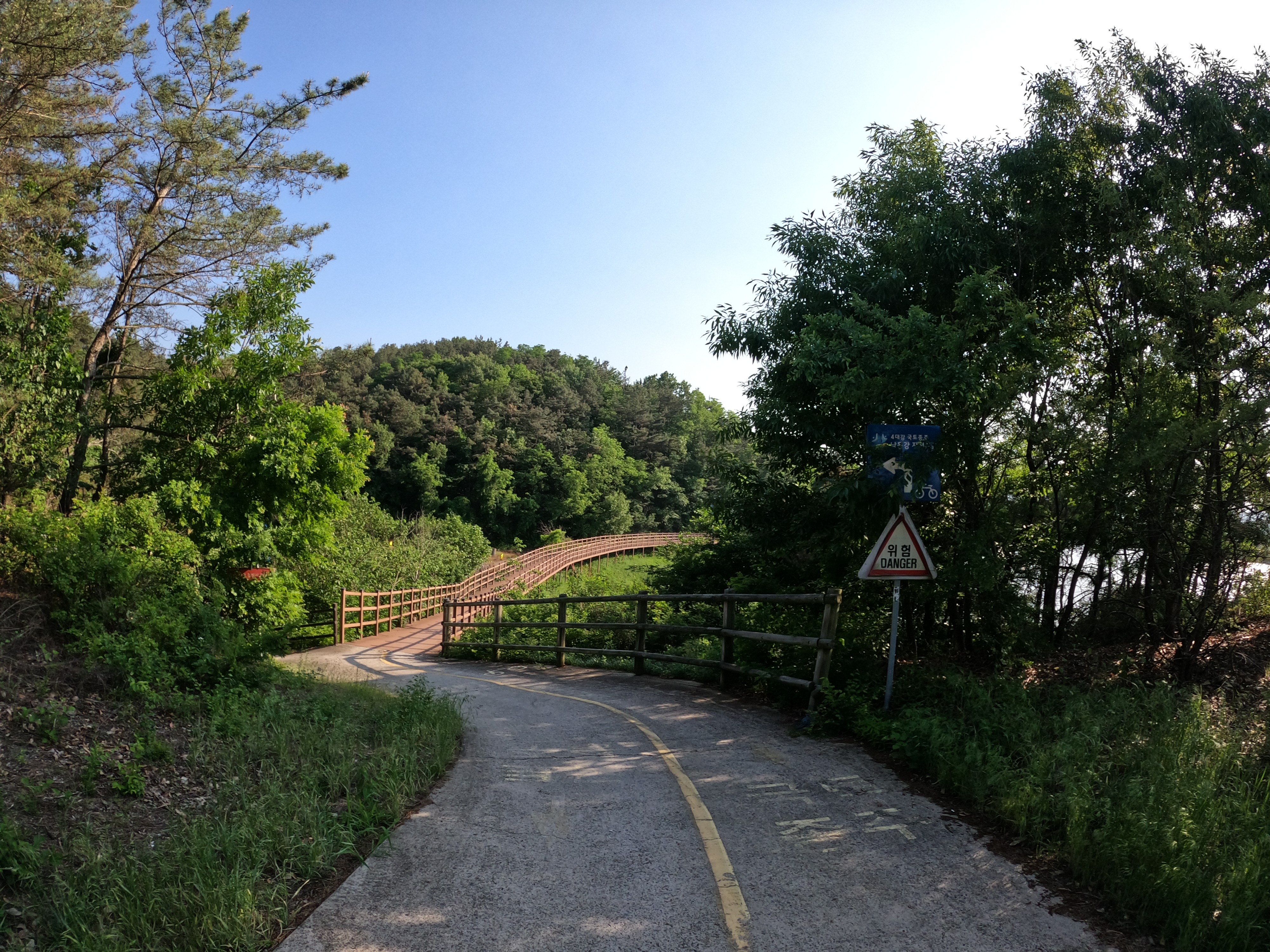 6년 전 국토종주를 하던 때에 구미 시내를 지나가면서 정말 욕을 많이 했던 게 뭐냐면 자전거 도로의 상태가 개판이었다는 점이었는데 자전거 도로에 깨진 곳이 너무 많아 펑크의 위험이 있을 수도 있기 때문이었다. 그래서 이번에도 사실 걱정이 좀 있기는 했는데 그동안 보수를 하기는 한건지 이제까지의 실크로드 같은 느낌은 아니지만 그래도 어느 정도 정비가 되어 있기는 했다. 나름대로 지나갈만 하다.