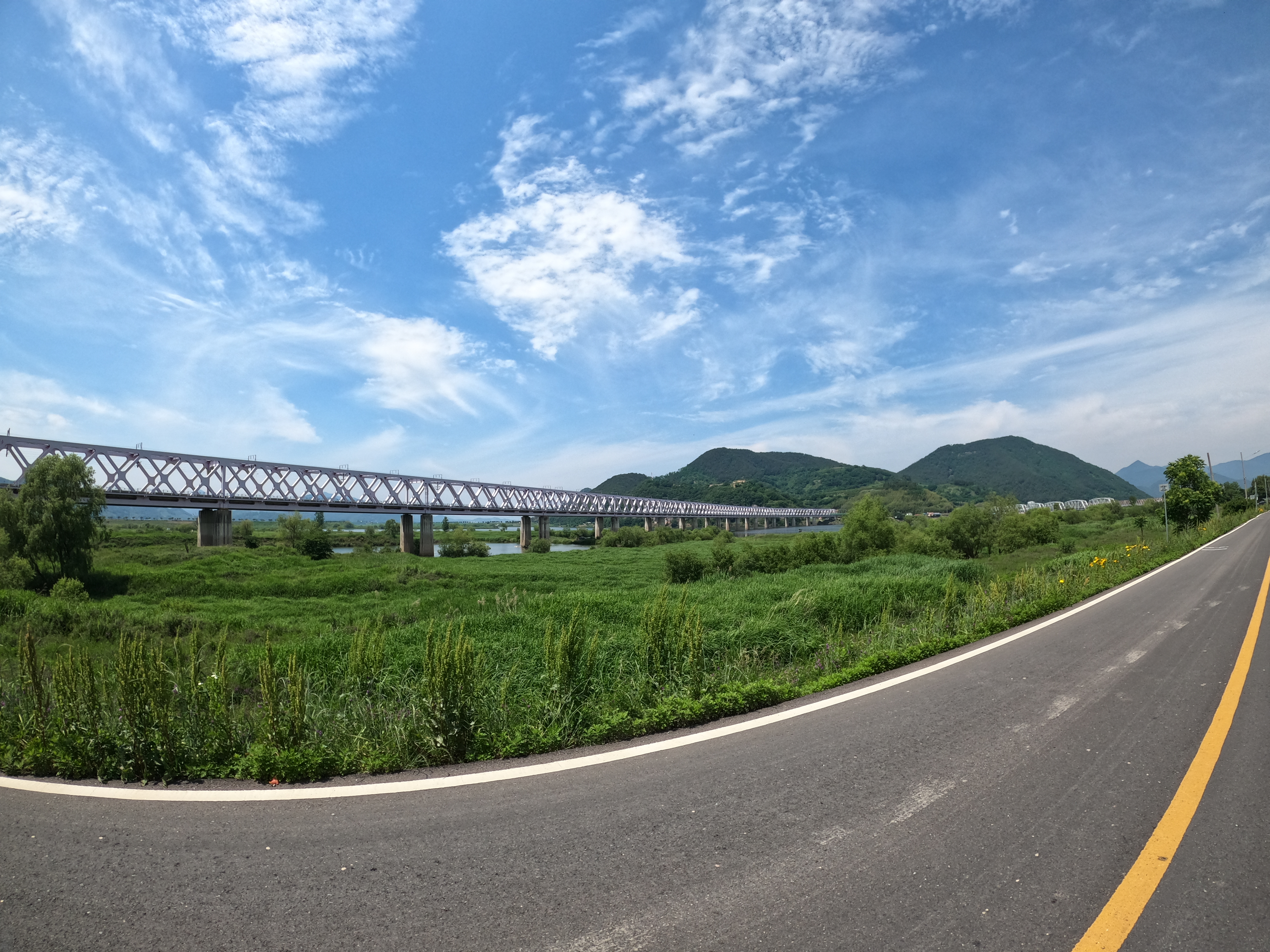 나는 내가 밑쪽으로 왔구나 라는 걸 여기까지 와서 깨달았다. 6년 전에 했던 국토종주 때 이 다리가 내 오른쪽에 있는 걸 봤던 기억이 남아있는데 갑자기 왼쪽에 나와서 그제서야 아, 잘못 왔네. 하고 알게 됐는데 그렇다고 이 거리를 다시 돌아가기는 그렇고 해서 그냥 진행하기로 했다. 내 개인적으로 이 코스는 웬만하면 윗쪽을 추천하고 싶다.