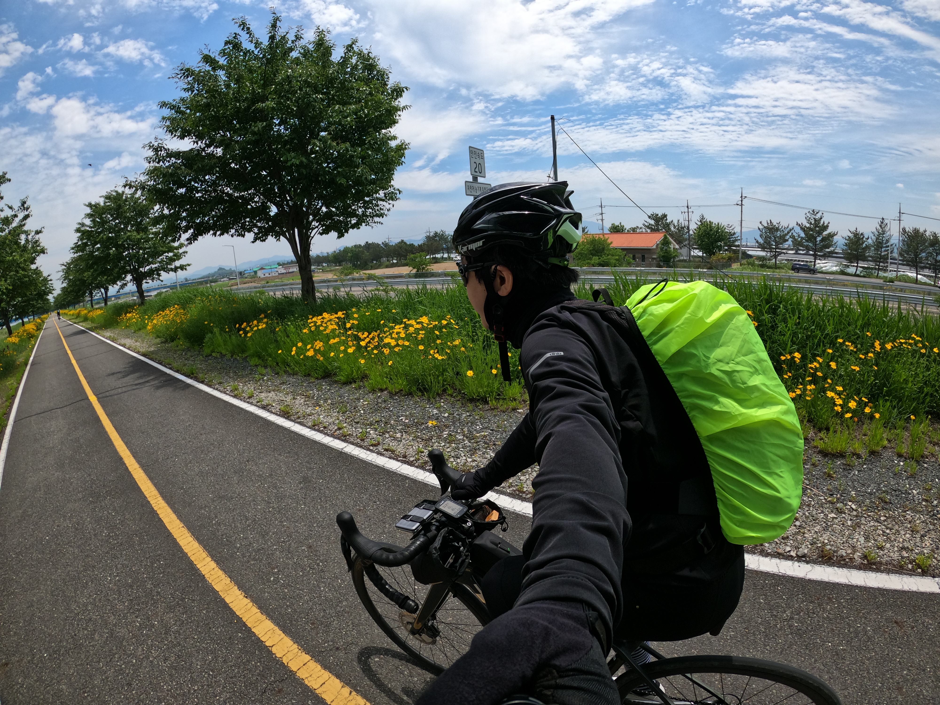 사실 나는 여기에서도 우회할 생각 없이 정식 윗쪽 코스로 가려고 했는데 그냥 생각없이 네이버 지도만 보고 따라갔더니 어느새 밑쪽 코스를 달리고 있었다. 덕분에 이렇게 화려하게 유채꽃이 피어 있는 구간을 지나가게 되었는데 아마 윗쪽 구간도 비슷하지 않았을까?