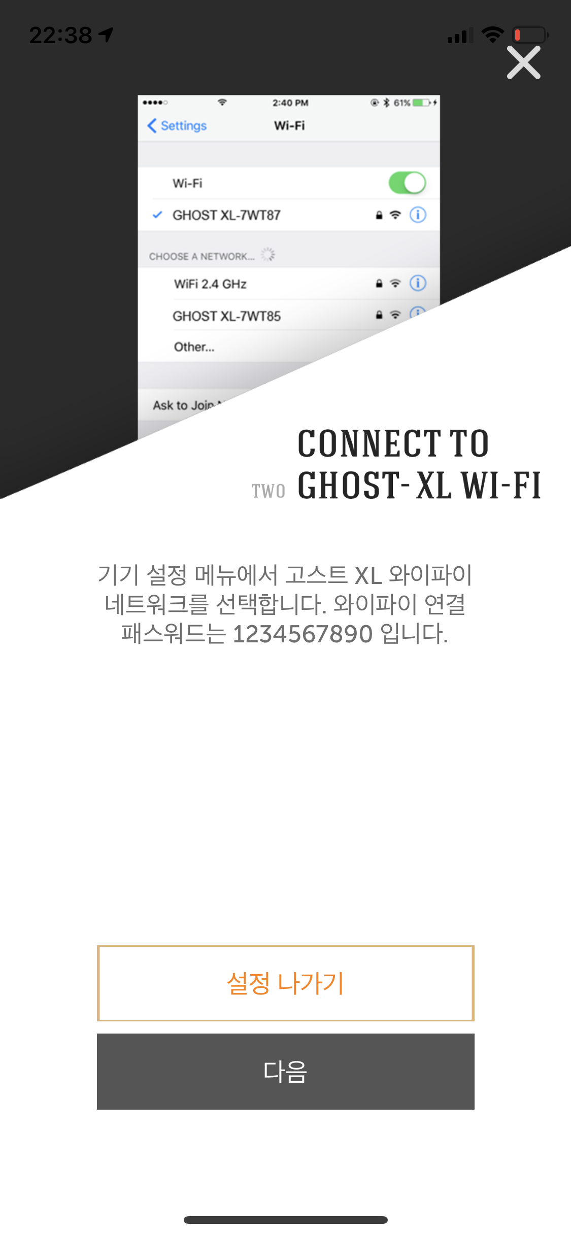 방금 전, 개봉기 글을 올려놓고서 이왕 개봉한 김에 설정도 다 해둬야겠다 싶어 밍기적 밍기적 Ghost XL 을 설정하다 보니 어플에서 아무 설명도 없이 넘어가지지 않는 화면이 있었어서 해당 증상의 해결 방법을 공유해본다. 안드로이드는 잘 모르겠고 나는 아이폰을 사용 중인데 이런 증상이 나타났었다. 하마터면 중국에서 만드는 게 다 그렇지 뭐 라고 할 뻔 했다.