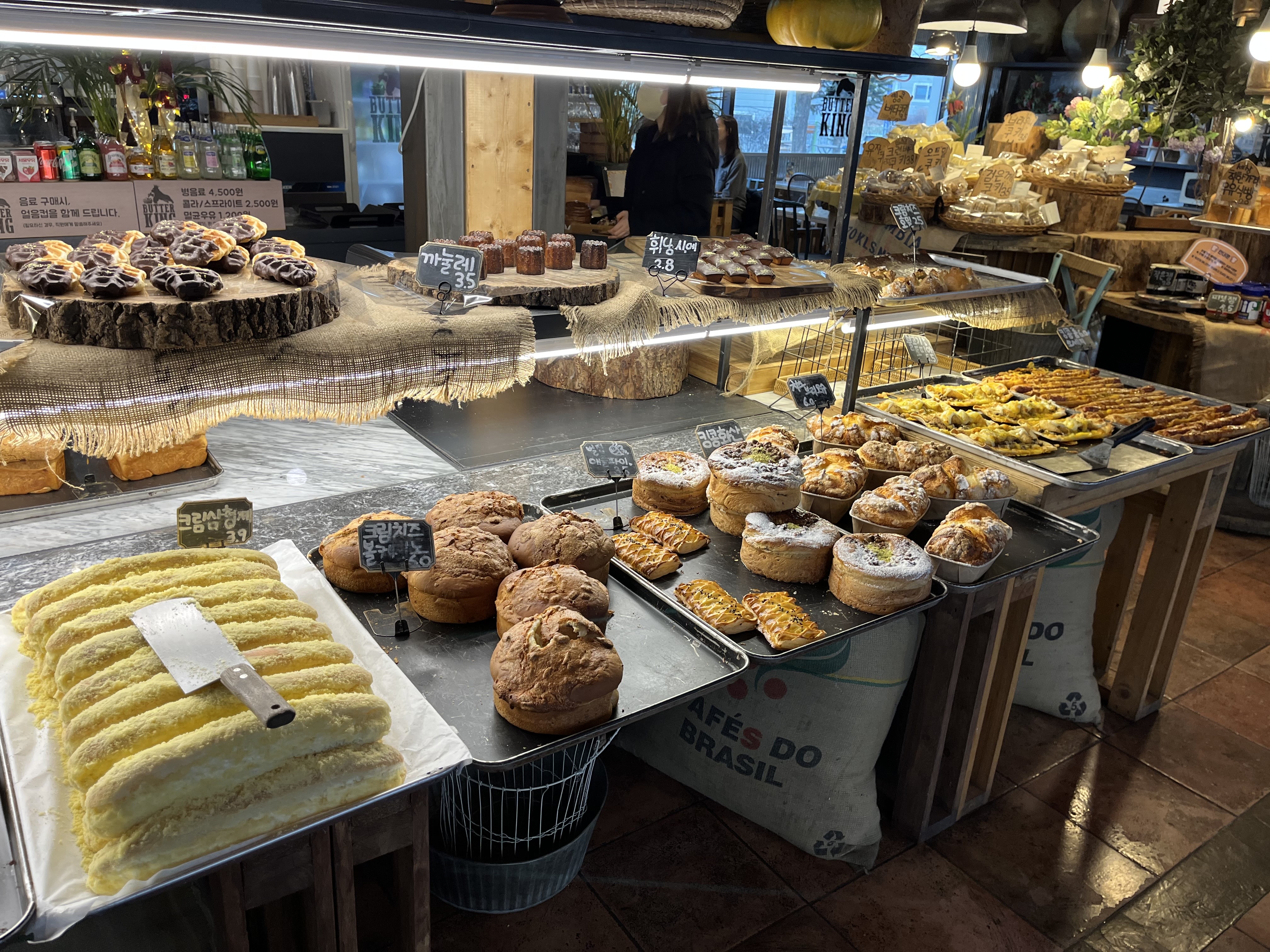 하여튼 경원이가 인당 빵 2개씩은 먹어야죠 해서 빵을 4개를 골랐는데 배가 너무 빵빵해서 반도 못 먹고 다 남겼다. 물론 버린 건 아니고 셀프 포장이 가능해서 포장해서 가져오긴 했는데 언제 먹나... 이 글을 쓰고 있는 지금도 배가 터질 것 같은 느낌이다. ㅋㅋ 오늘 너무 과식했어.