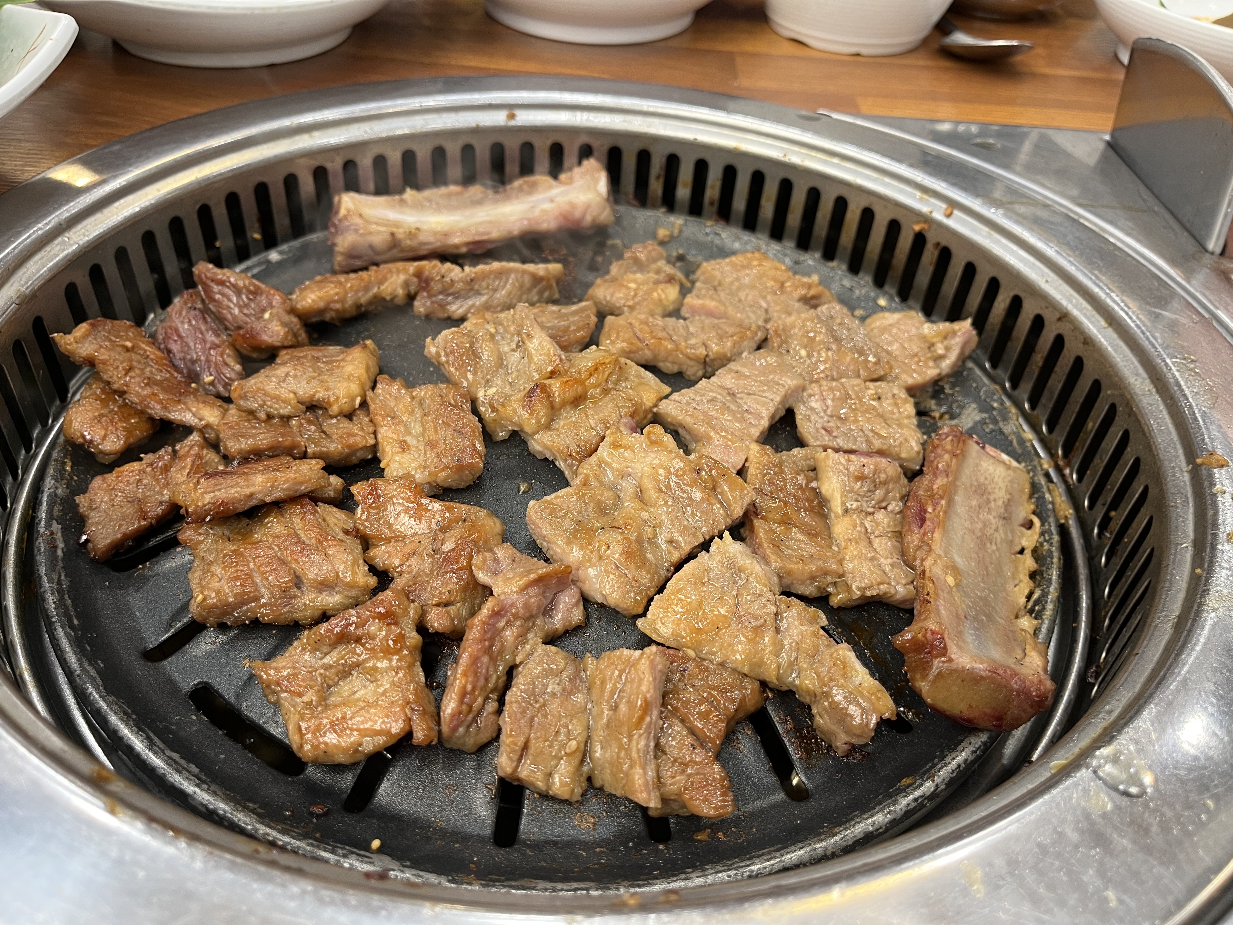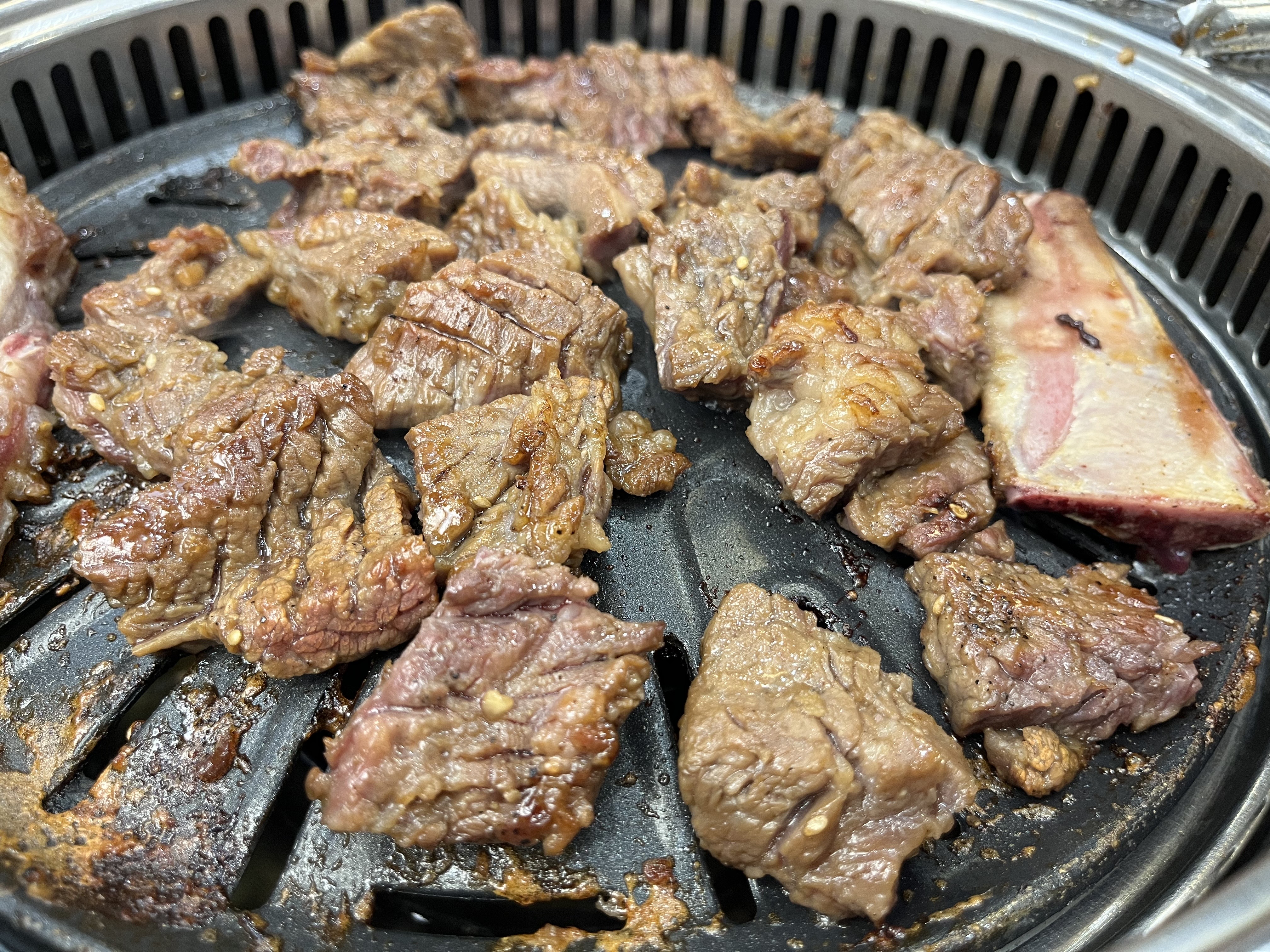 처음에 소갈비를 2인분 먹고 나중에 돼지갈비를 2인분 먹었는데 사실 큰 차이를 못 느꼈다. 고기 자체에서도 큰 맛의 차이는 못 느꼈는데 양념이 같은 베이스라서 그런지 같은 고기인가? 싶을 정도... ㅋㅋ 역시 나같은 서민 입맛에는 돼지고기가 짱이다.