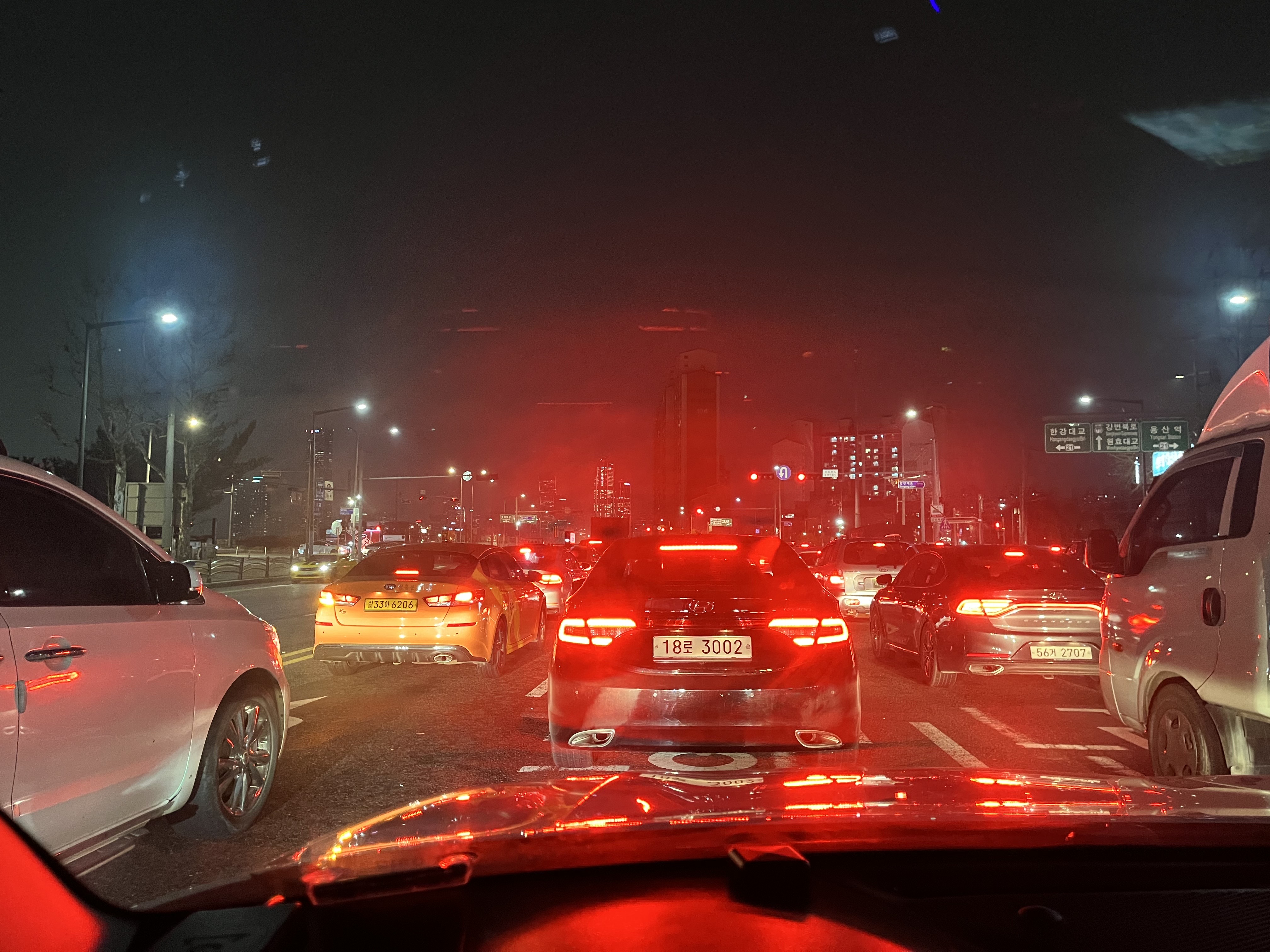 야간운전의 단점을 보여주는 사진이다. 물론 내 앞차가 유난히 눈부시다고 찍은 사진은 아니고 그냥 찍고보니 저 차가 앞에 있던 것 뿐이다. 앞차들의 브레이크등 때문에 눈이 얼마나 아프던지 썬글라스는 낮이 아니라 저녁에 써야 되는거 아니야? 하는 생각이 들 정도였다.