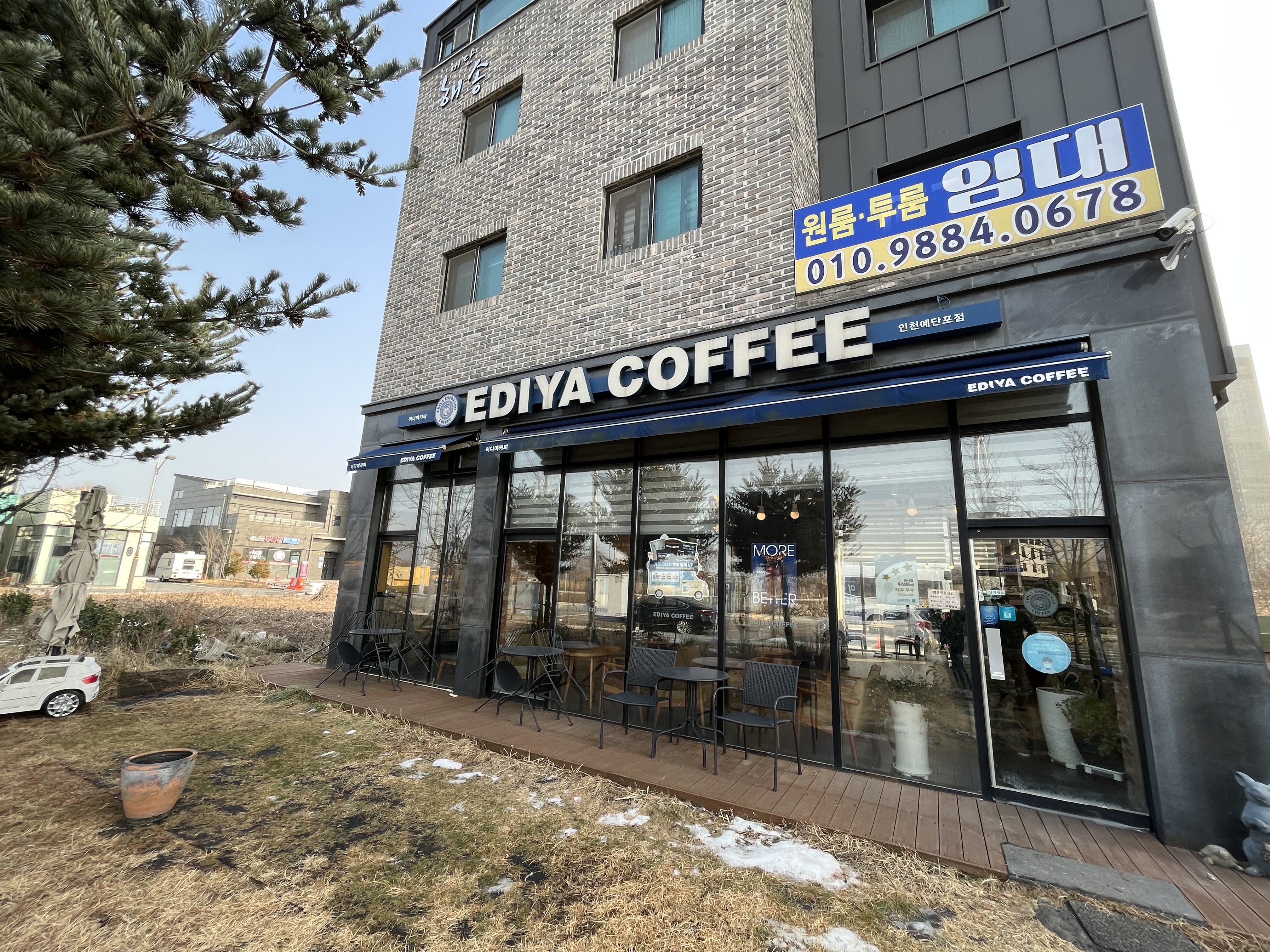 원래 계획은 칼국수를 먹고 바다뷰를 보면서 커피를 마시려고 했는데 좀 시간이 지나긴 했지만 화재 현장 옆 오픈된 곳에서 커피를 마시긴 좀 그래서 초보운전의 성지, 영종도 미단시티 공원으로 가는 길에 있는 카페에서 커피를 샀다.