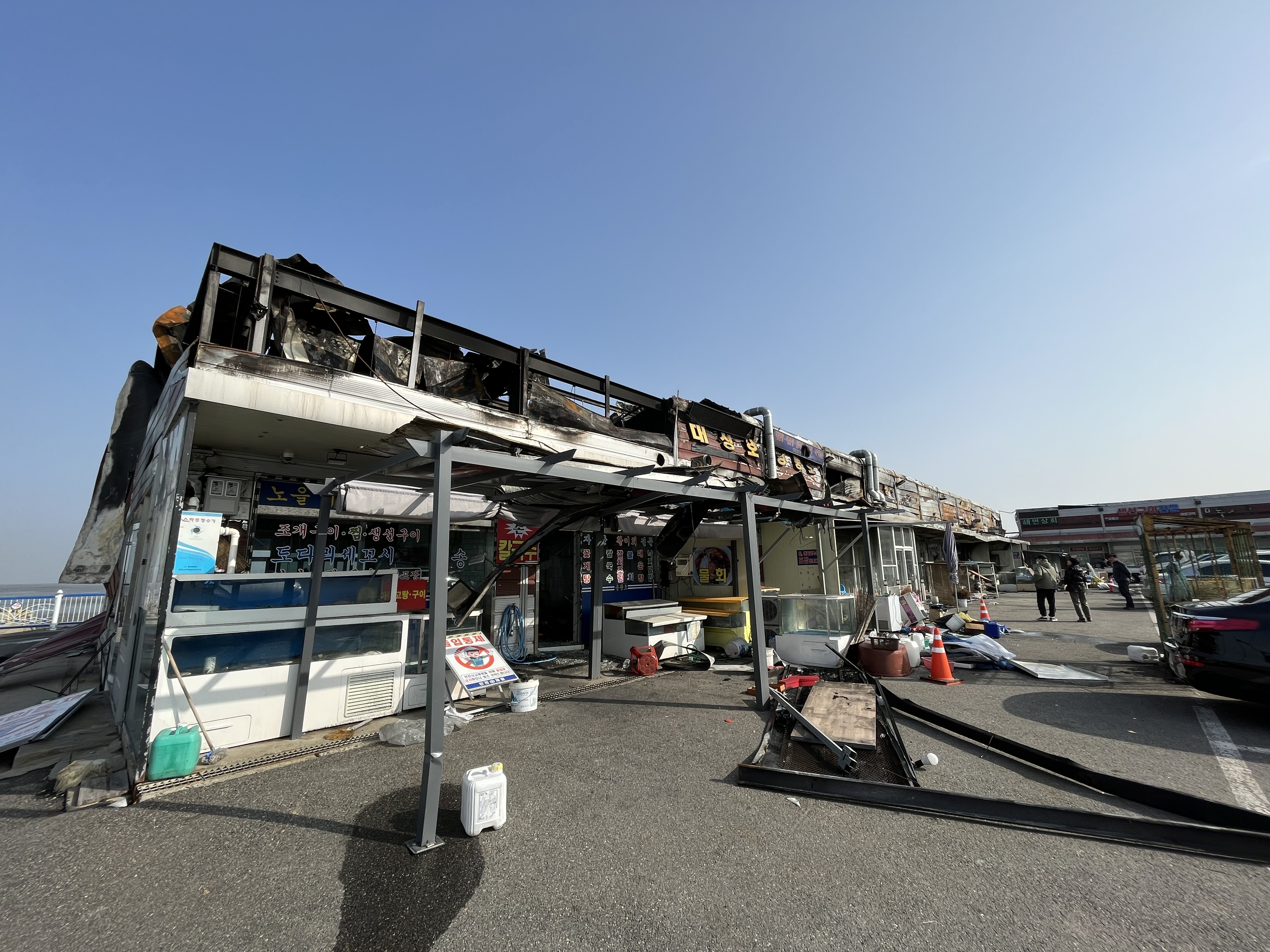 그런데 금강산도 식후경이라고... 추억의 장소인 초보운전의 성지, 영종도 미단시티를 한 바퀴 돌아보기 전에 밥을 먹으러 영종도 미단시티의 바로 옆에 있는 예단포항을 먼저 들렀는데 화재가 난 건지, 점포의 절반 이상이 불에 타서 없어져 있었다.