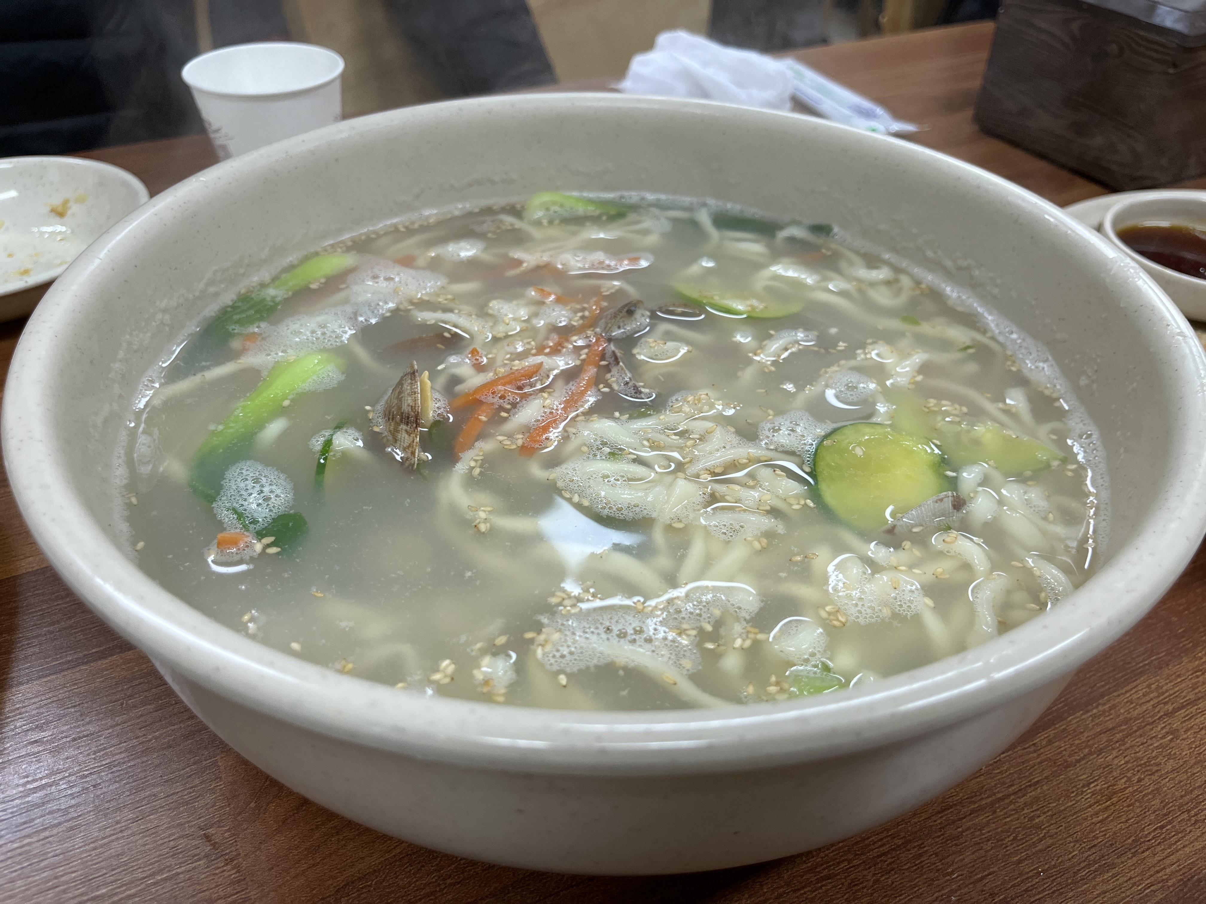 옆에 있던 식당 중 아무 곳이나 들어가서 주문을 했는데 바닷가 치고는(?) 가격이 저렴하고 맛도 괜찮았다. 우리 사무실 근처에서 칼국수를 먹으려면 기본 만원이 넘어가는데 말이지... 미친 종로 물가...