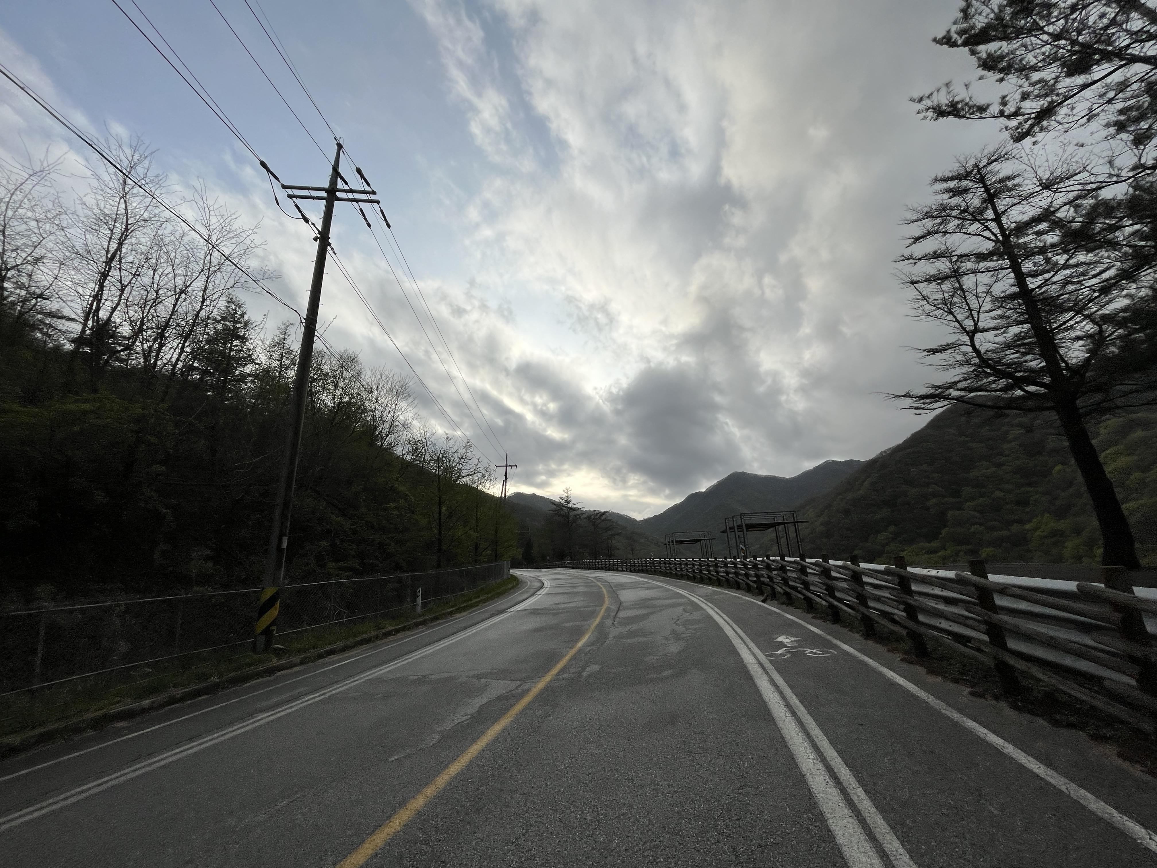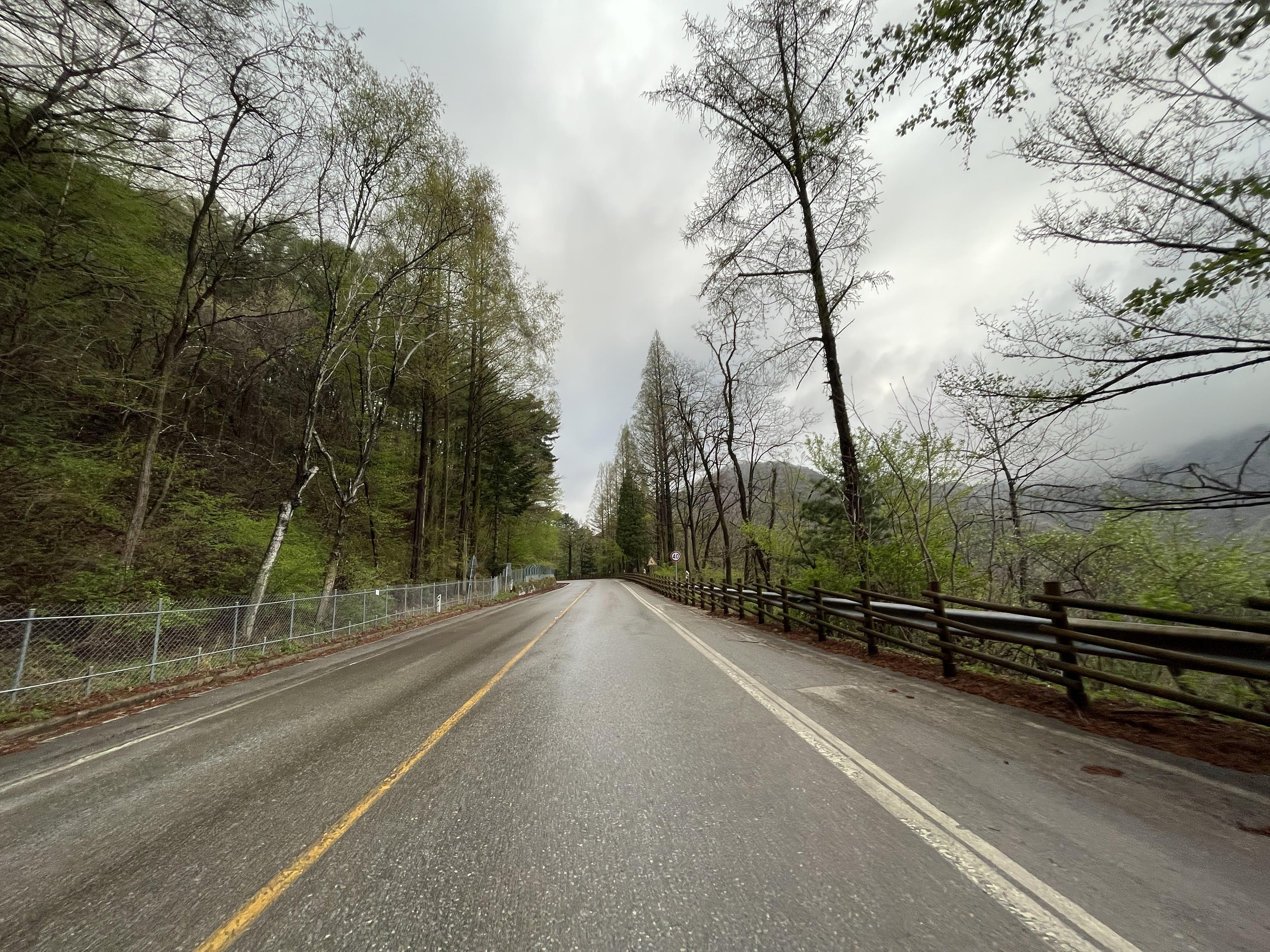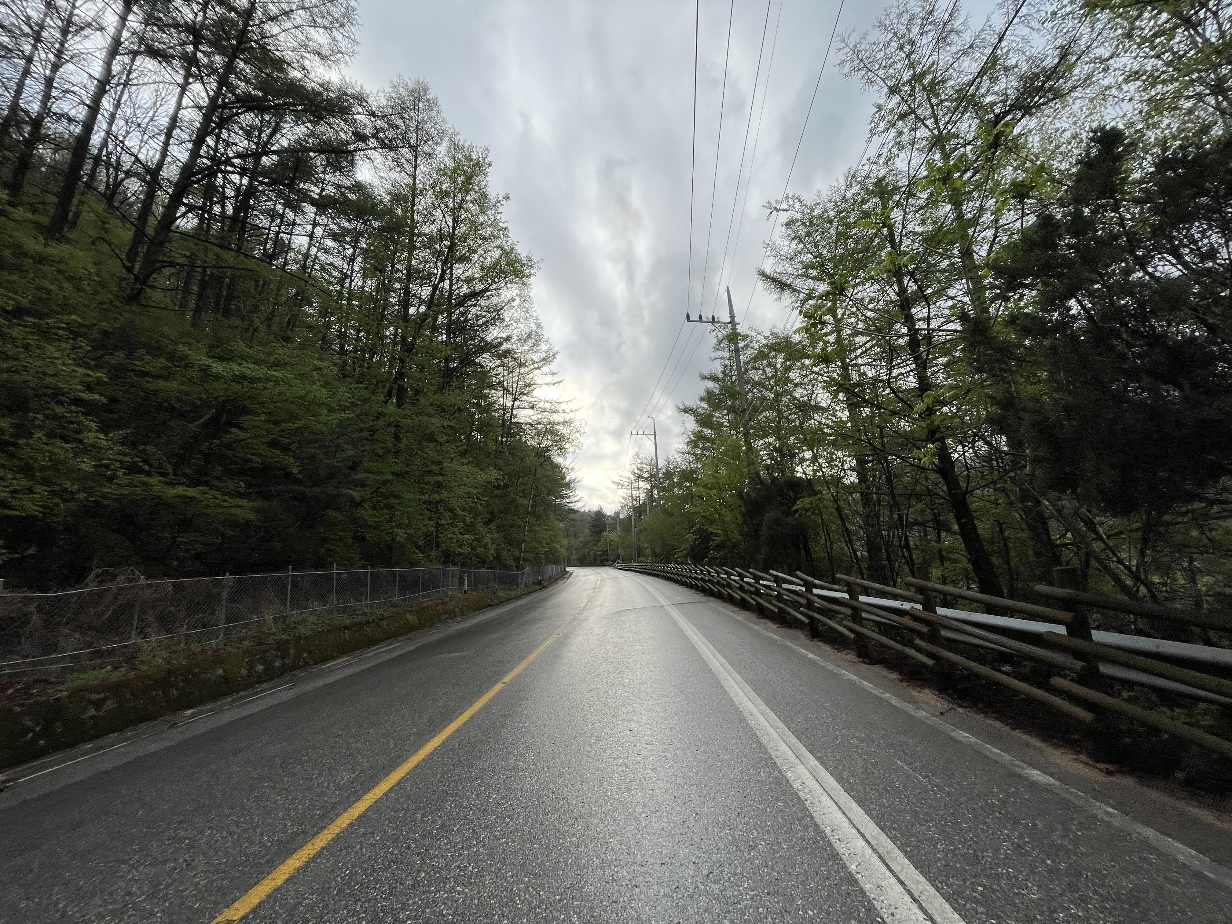 그리고 더 신기했던 건 이화령을 거의 다 내려왔을 때 쯤 되서는 갑자기 또 바닥이 전부 젖어있었다는 점이었다. 왜일까? 왜인지는 모르겠지만 비 온 날의 다운힐은 솔직히 걱정이 조금 됐었는데 덕분에 아주 편안하게 이화령을 내려올 수 있었다. 약간 뒷바퀴가 통통 튀는 게 펑크가 난 것 같은 느낌도 들었지만...?