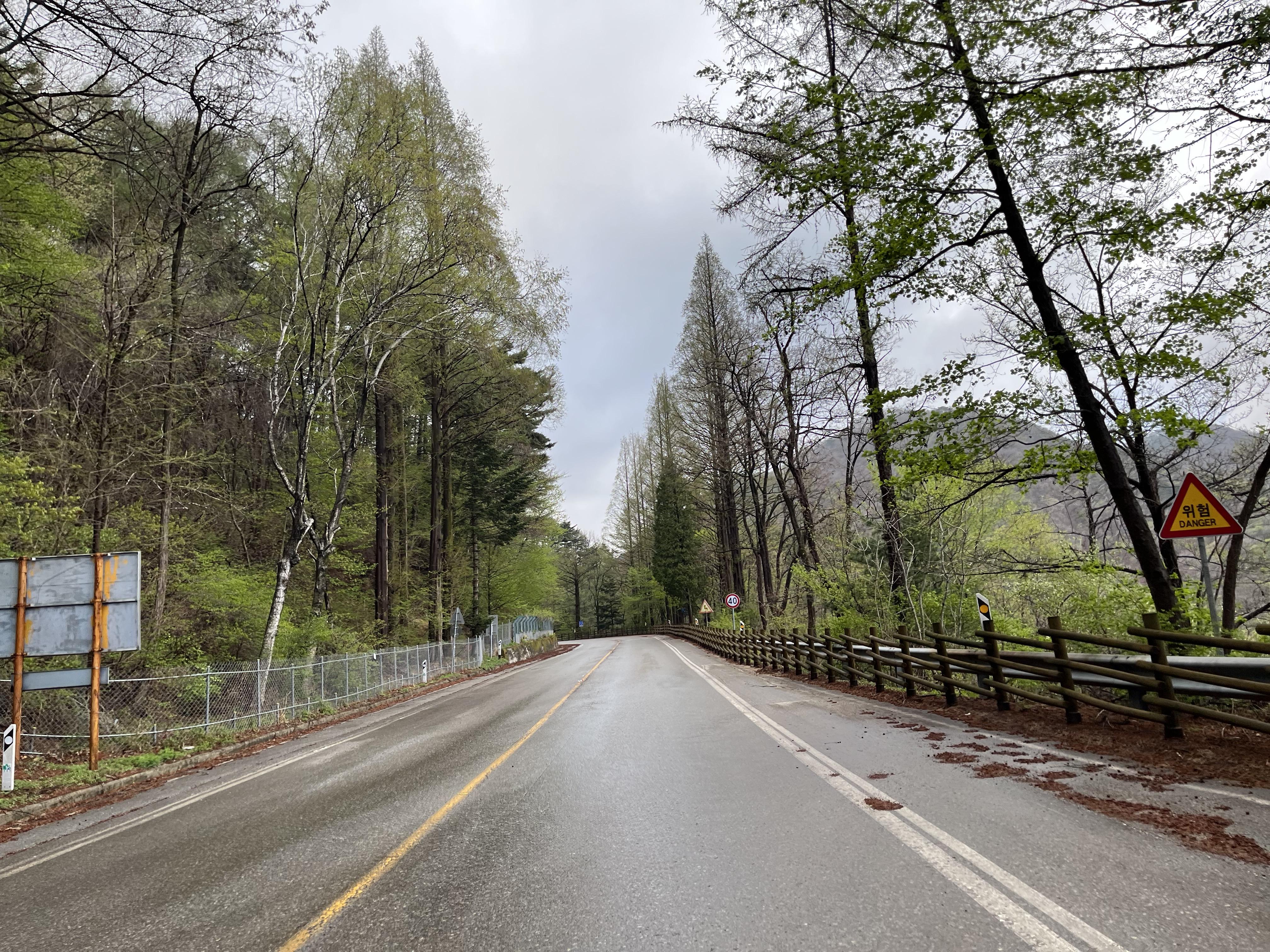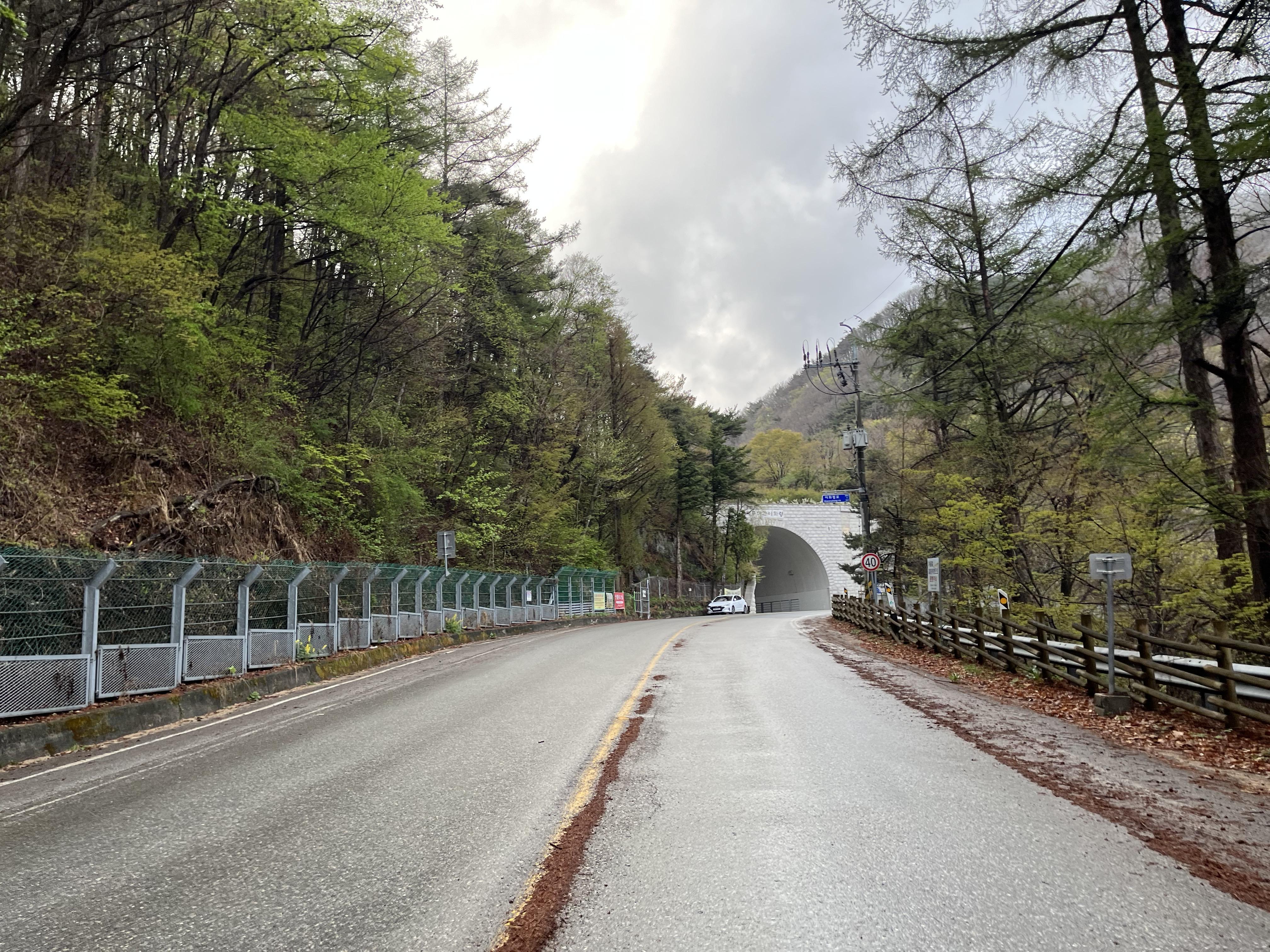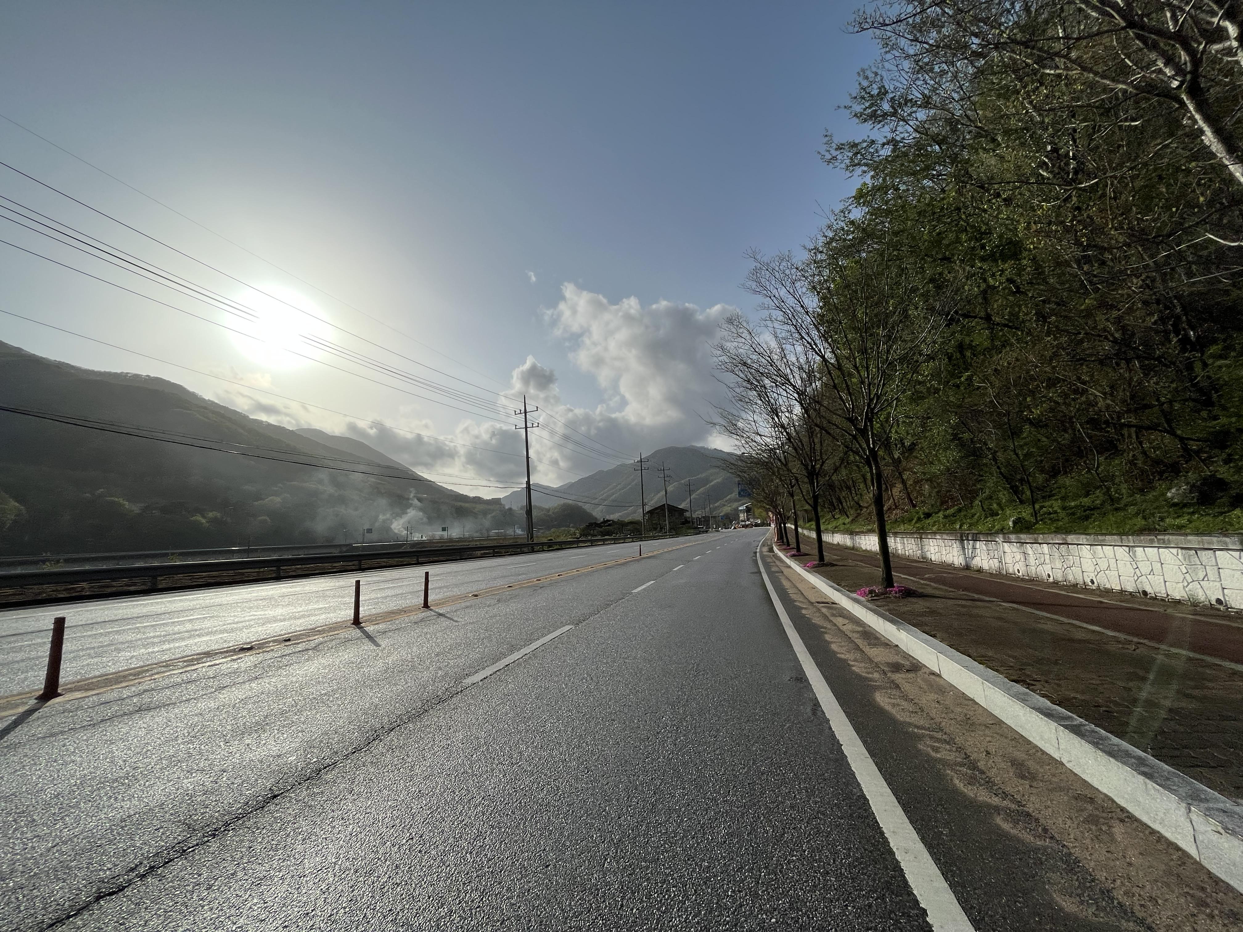 그리고 더 신기했던 건 이화령을 거의 다 내려왔을 때 쯤 되서는 갑자기 또 바닥이 전부 젖어있었다는 점이었다. 왜일까? 왜인지는 모르겠지만 비 온 날의 다운힐은 솔직히 걱정이 조금 됐었는데 덕분에 아주 편안하게 이화령을 내려올 수 있었다. 약간 뒷바퀴가 통통 튀는 게 펑크가 난 것 같은 느낌도 들었지만...?