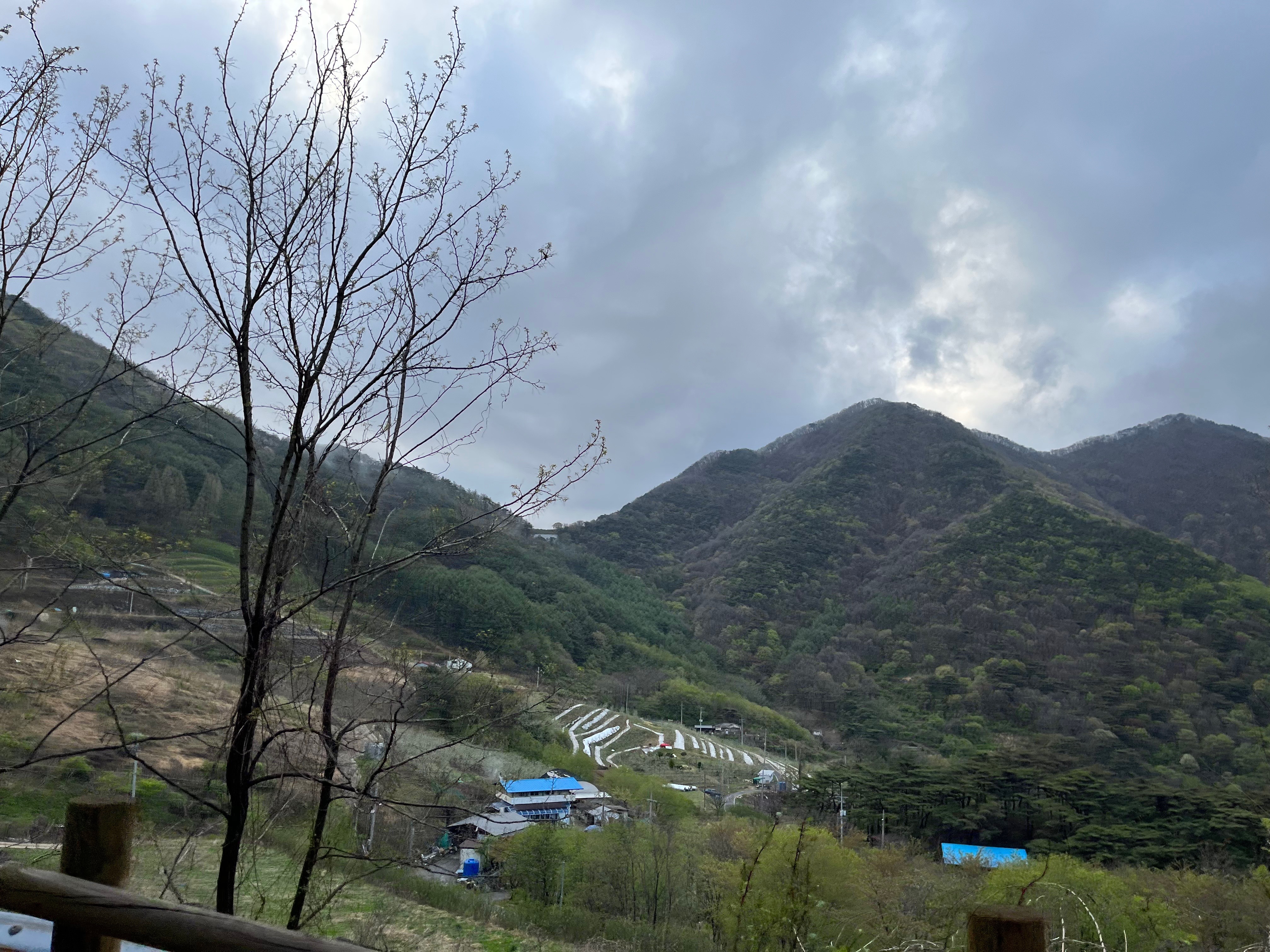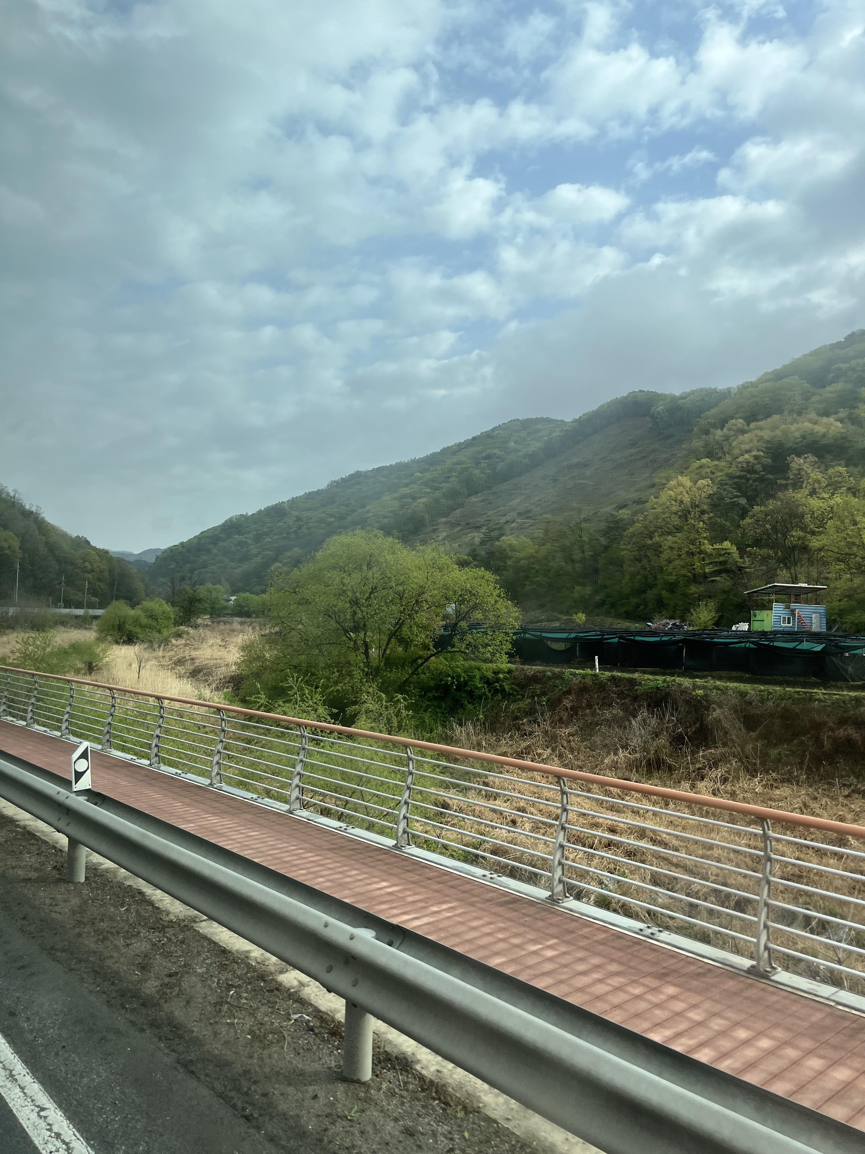 눈을 뜨고 얼마 지나지 않아서 버스는 국토종주 코스 중 하나인 새재자전거길의 옆을 달리기 시작했다. 빨리 국토종주를 하는 날이 왔으면 좋겠다. 근데 새재자전거길 구간의 자전거 도로에 차량들이 불법 주차 되어있는 건 여전하구나.