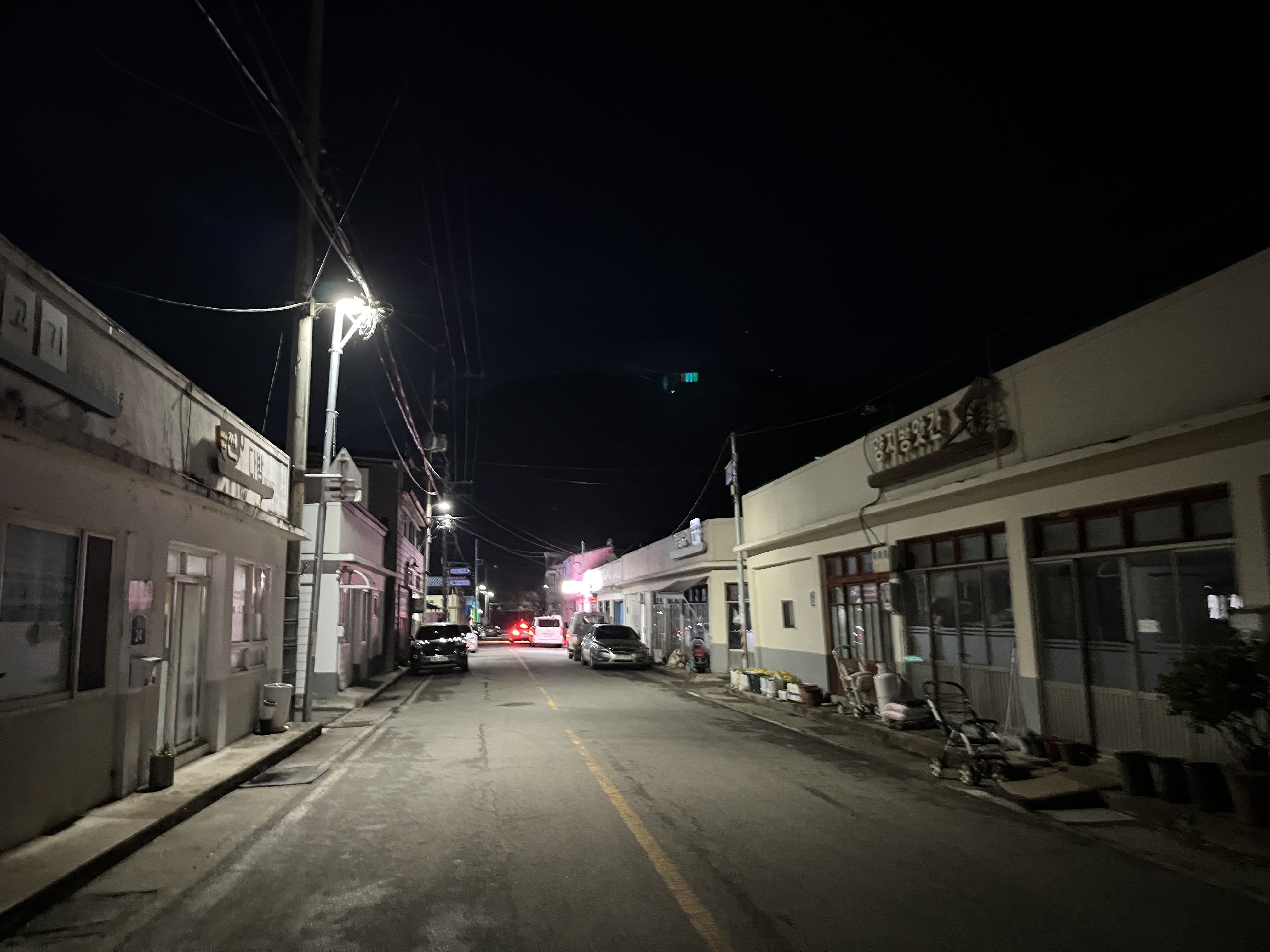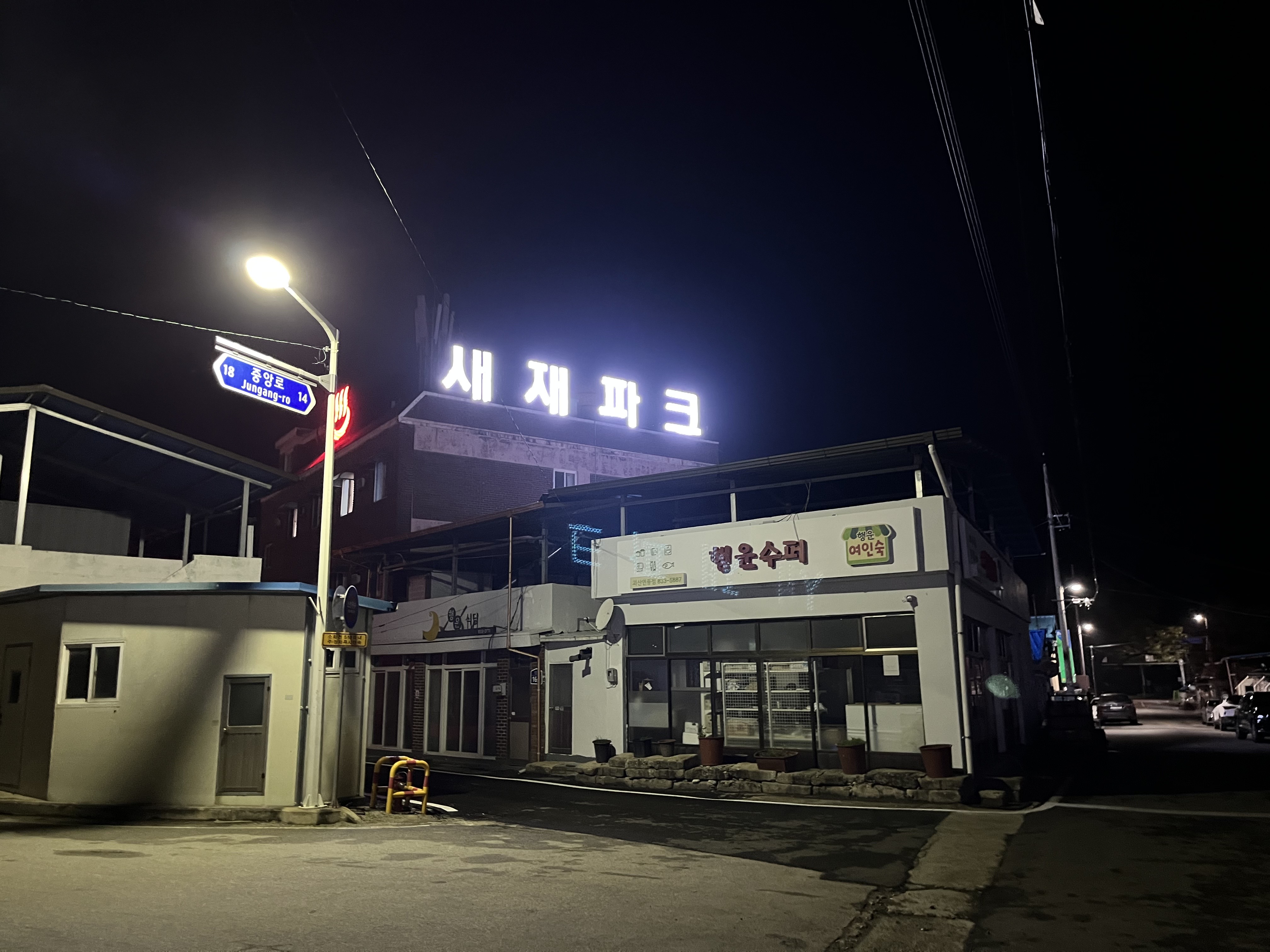 방으로 돌아와서 튜브 교체를 하고 방을 한번 싹 닦아주고 쉬고 있으니 갑자기 탄산음료가 너무 마시고 싶어져서 밖으로 나왔는데 밥을 먹고 새재파크로 돌아가던 때와는 비교도 안 될 정도로 동네가 조용해져있었다. 간간히 개가 짖는 소리만 들려왔는데 이게 얼마나 무서운지는 겪어본 사람만이 알거다.