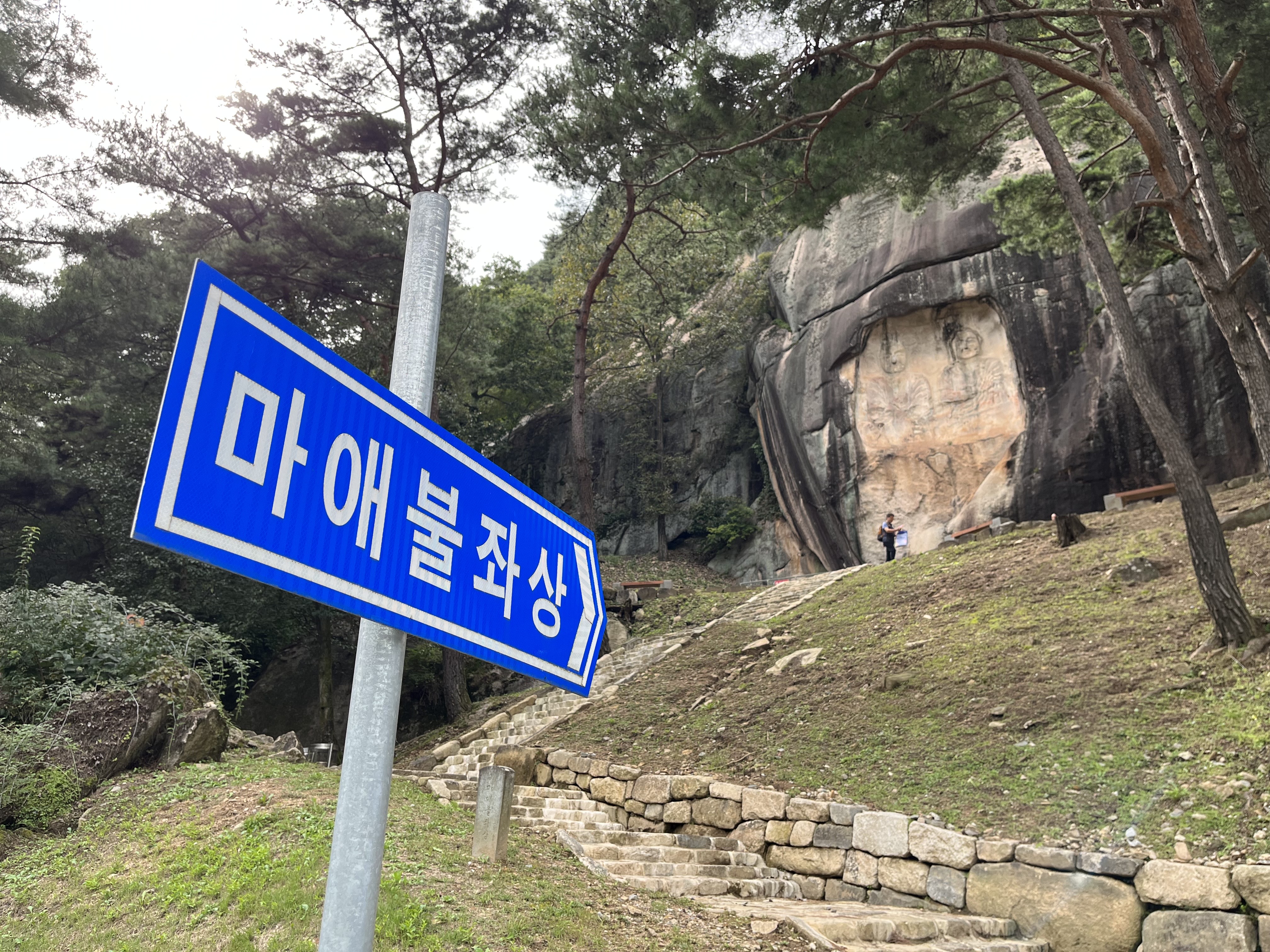 행촌교차로로 가는 다운힐 중에는 '보물 97호인 마애불좌상' 이 있는데 아무 생각 없이 신나게 다운힐을 하다보면 예전의 나처럼 놓칠 수도 있으니 마애불좌상을 보고 싶으신 분들은 정신 바짝 차리고 내려가도록 하자. 로드를 타고 여기를 지나갔을 때는 다운힐을 미친듯이 하다가 뒤늦게 어?! 하고 발견했지만 다시 올라가기 귀찮아서 그대로 내려간 기억이 난다.